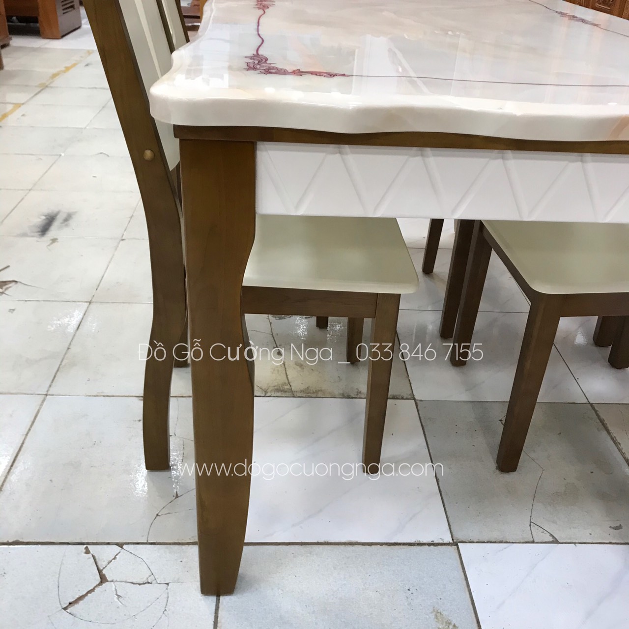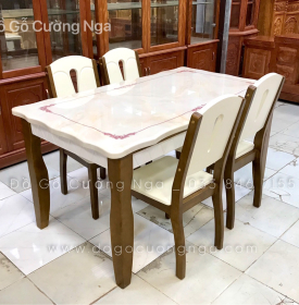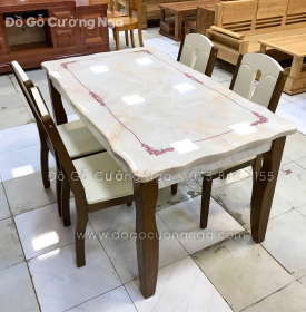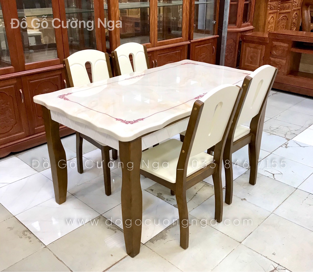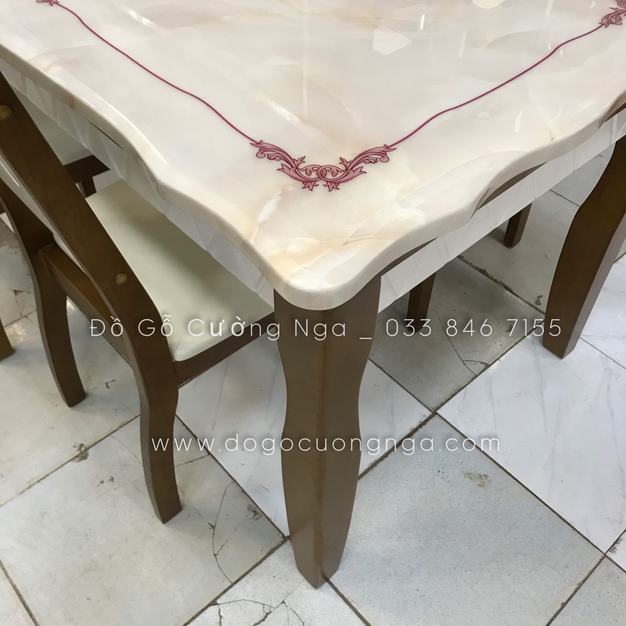 Bộ bàn ăn mặt đá chữ nhật 4 ghế với vân màu đá loang hài hòa tự nhiên, dòng đá mới nhất hiện nay, cùng kích thước đặc biệt, không có mặt rộng rãi trên thị trường tạo nên sức hút rất riêng, sản phẩm đã có mặt tại Đồ Gỗ Cường Nga