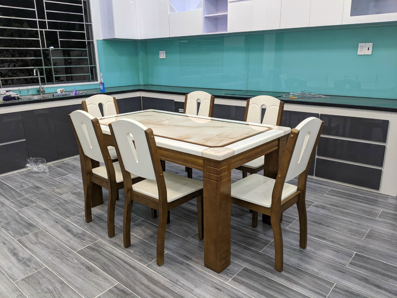 Bộ bàn ăn 6 ghế mặt đá hiện đại