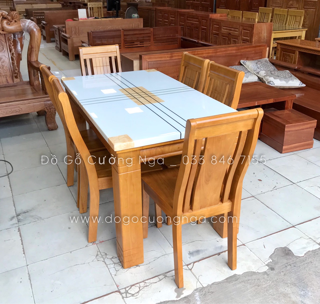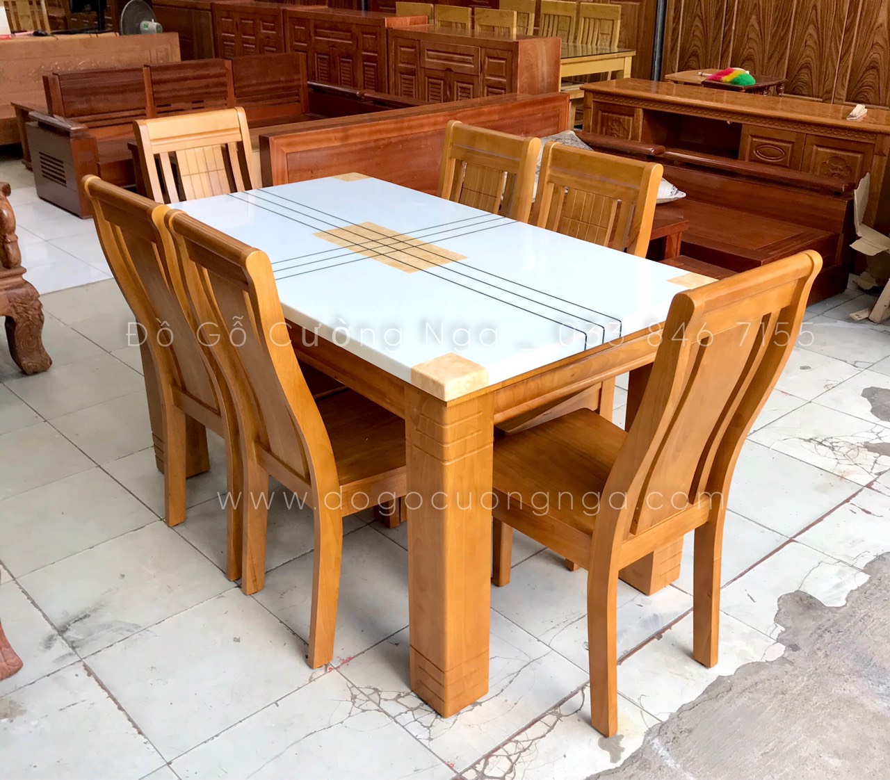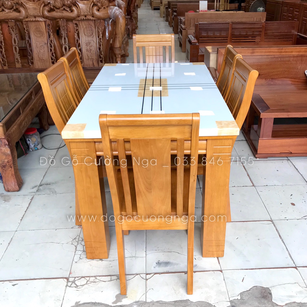 Bộ bàn ăn mặt đá 6 ghế 1m4 hiện đại