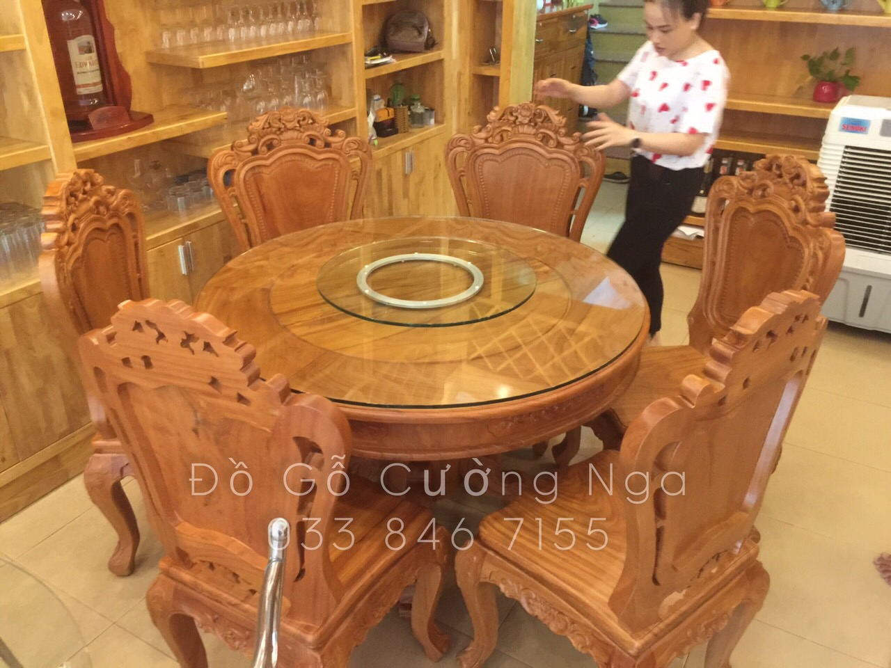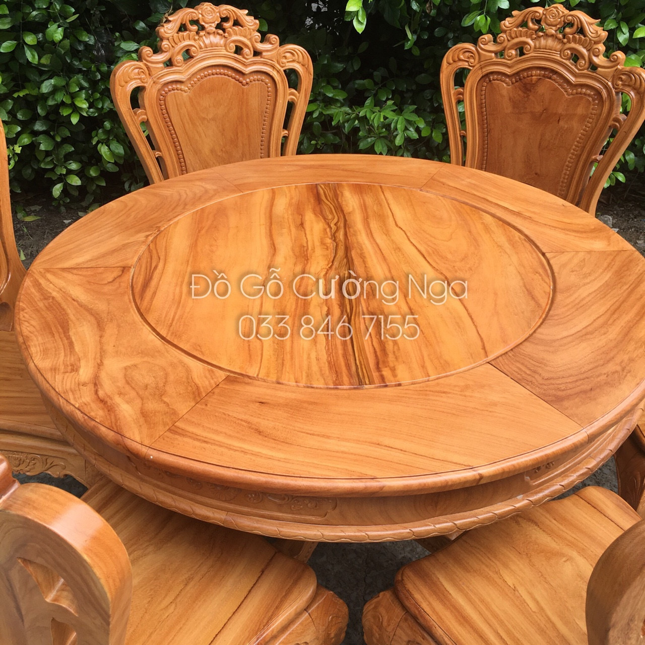 Bộ bàn ăn tròn gỗ gõ đỏ 6 ghế cao cấp - mẫu lu y