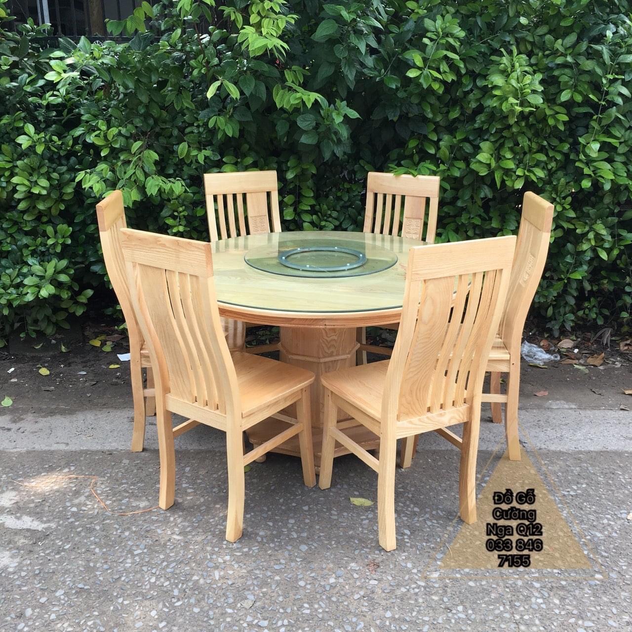 Bộ bàn ăn gỗ Sồi nga 6 ghế - bàn tròn mâm xoay