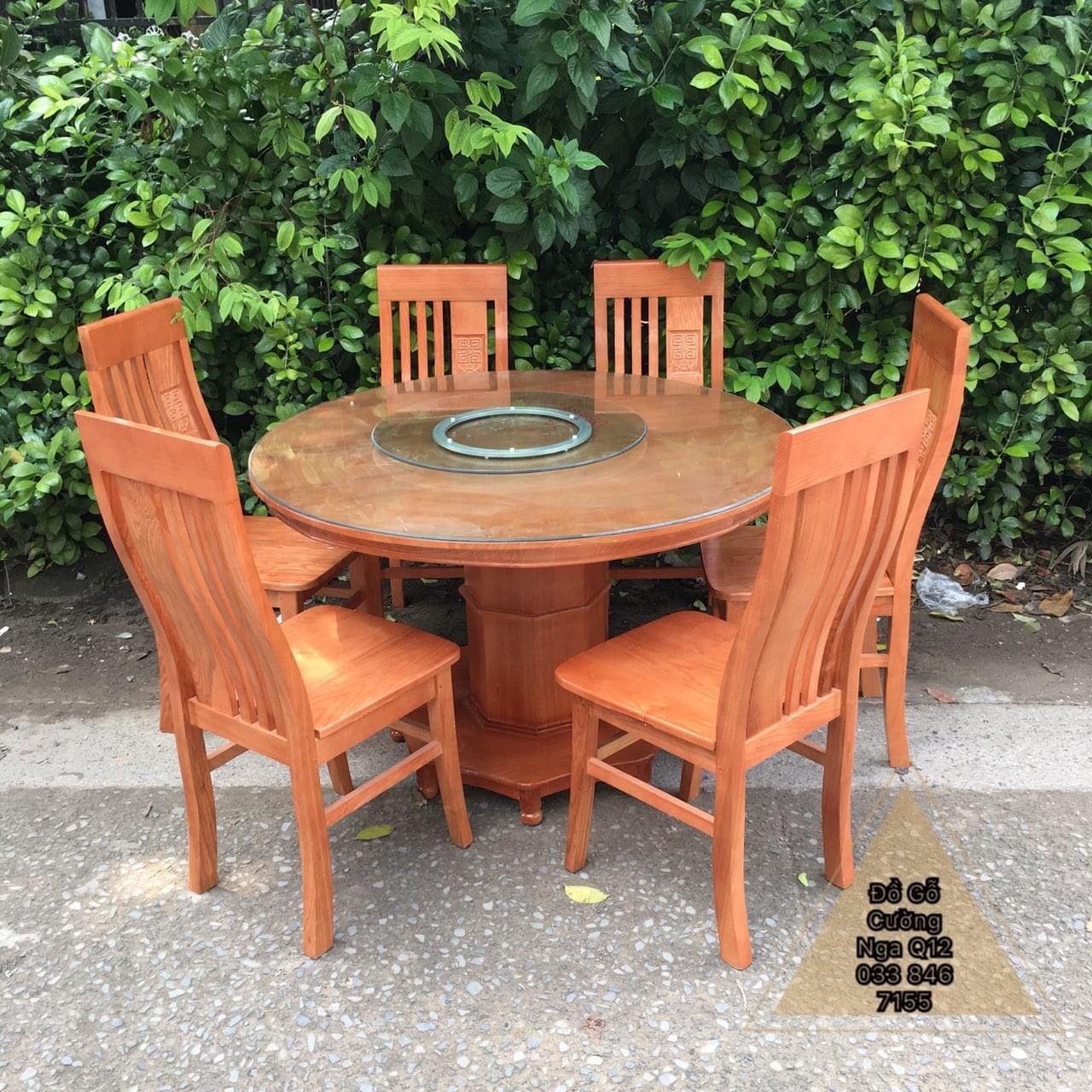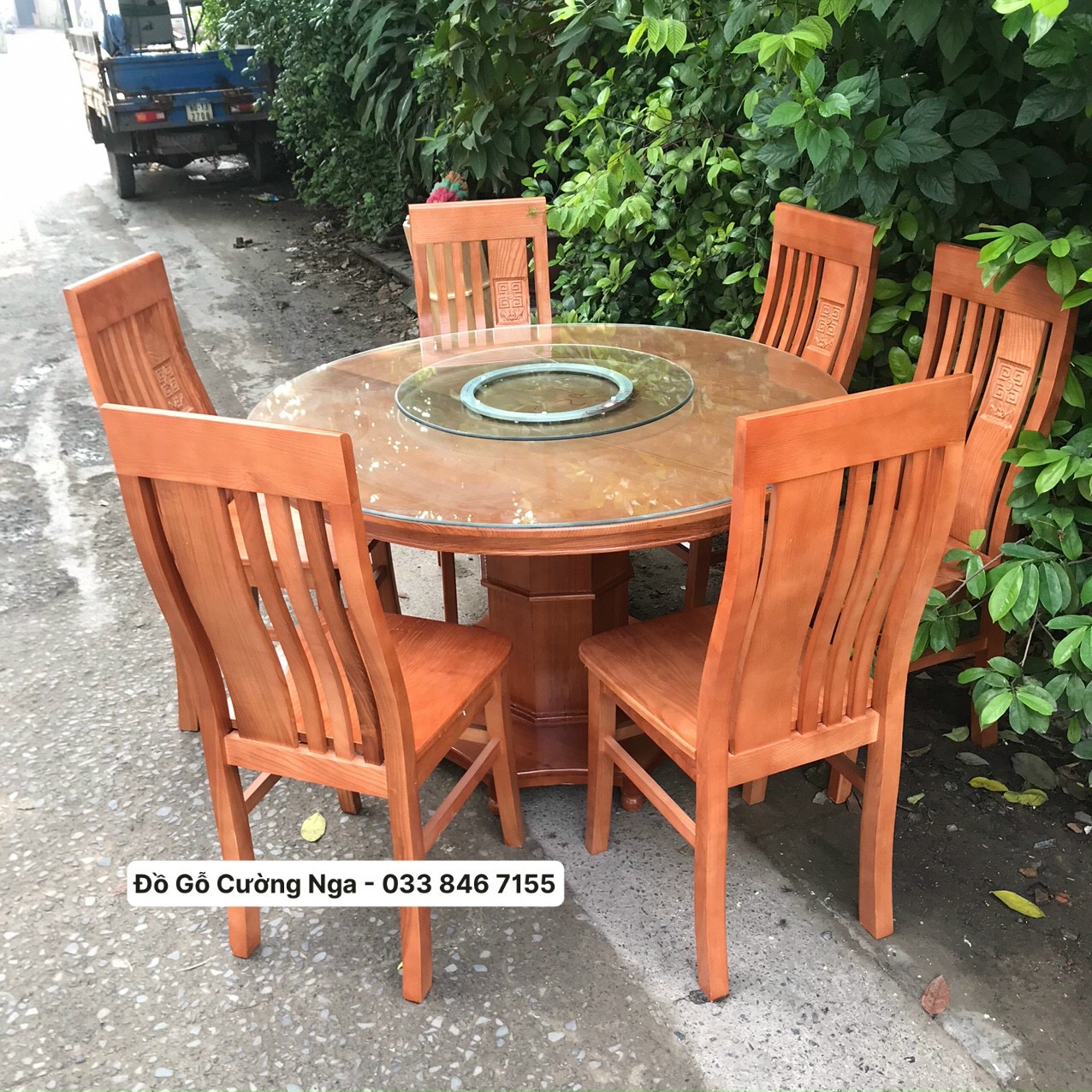 Bộ bàn ăn gỗ sồi nga 6 ghế - tròn mâm xoay hiện đại
