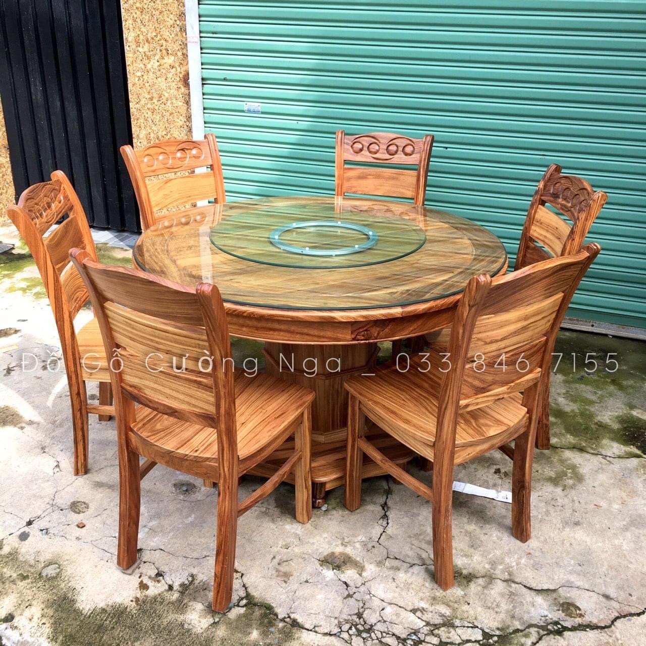 Bộ bàn ghế ăn gỗ hương xám tròn mâm xoay