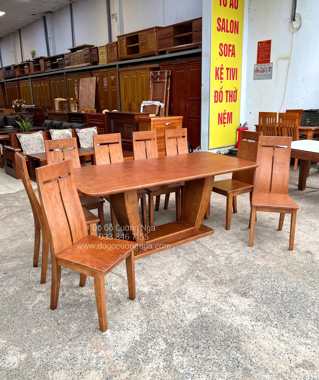 Dài 1m8 x Rộng 90cm x Cao 73 cm + 8 ghế