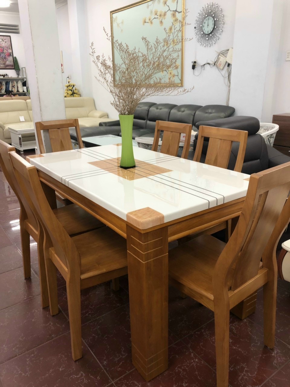 Bộ bàn ghế ăn mặt đá 6 ghế - màu phớt vàng