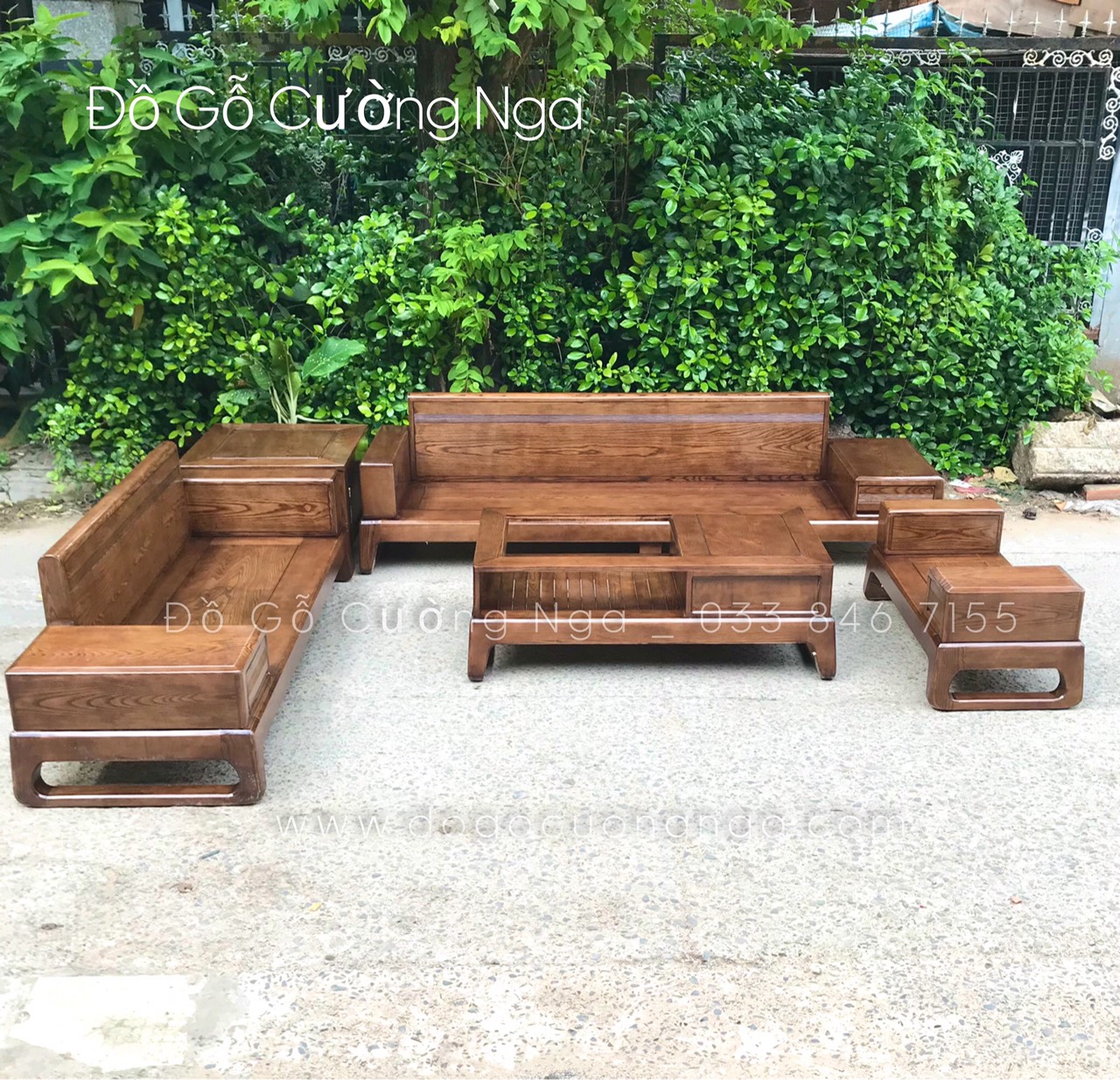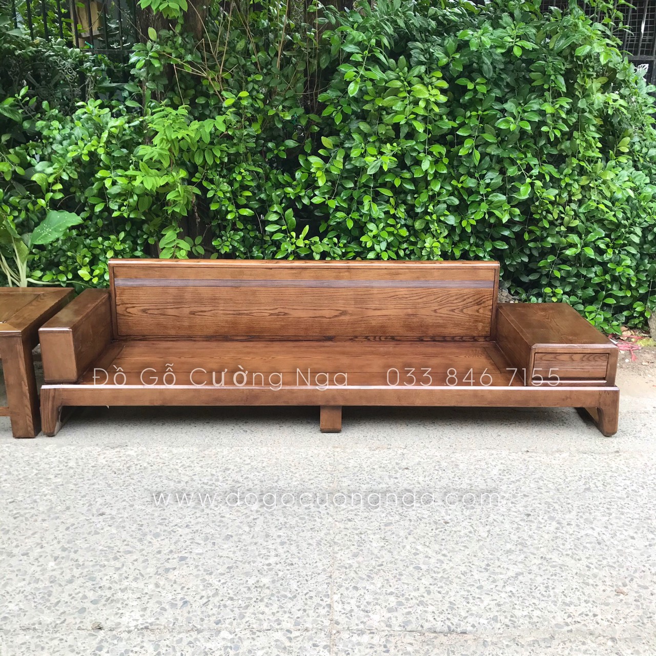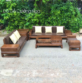 Bộ Sofa Gỗ Sồi Nga Góc L Chân Thuyền 2m8x1m9 Màu Óc Chó Sang Trọng