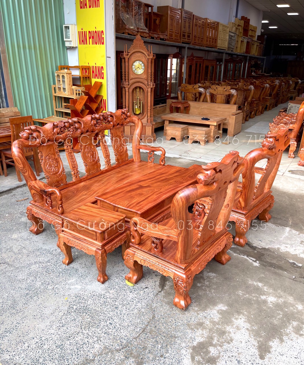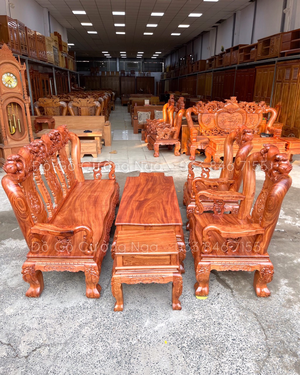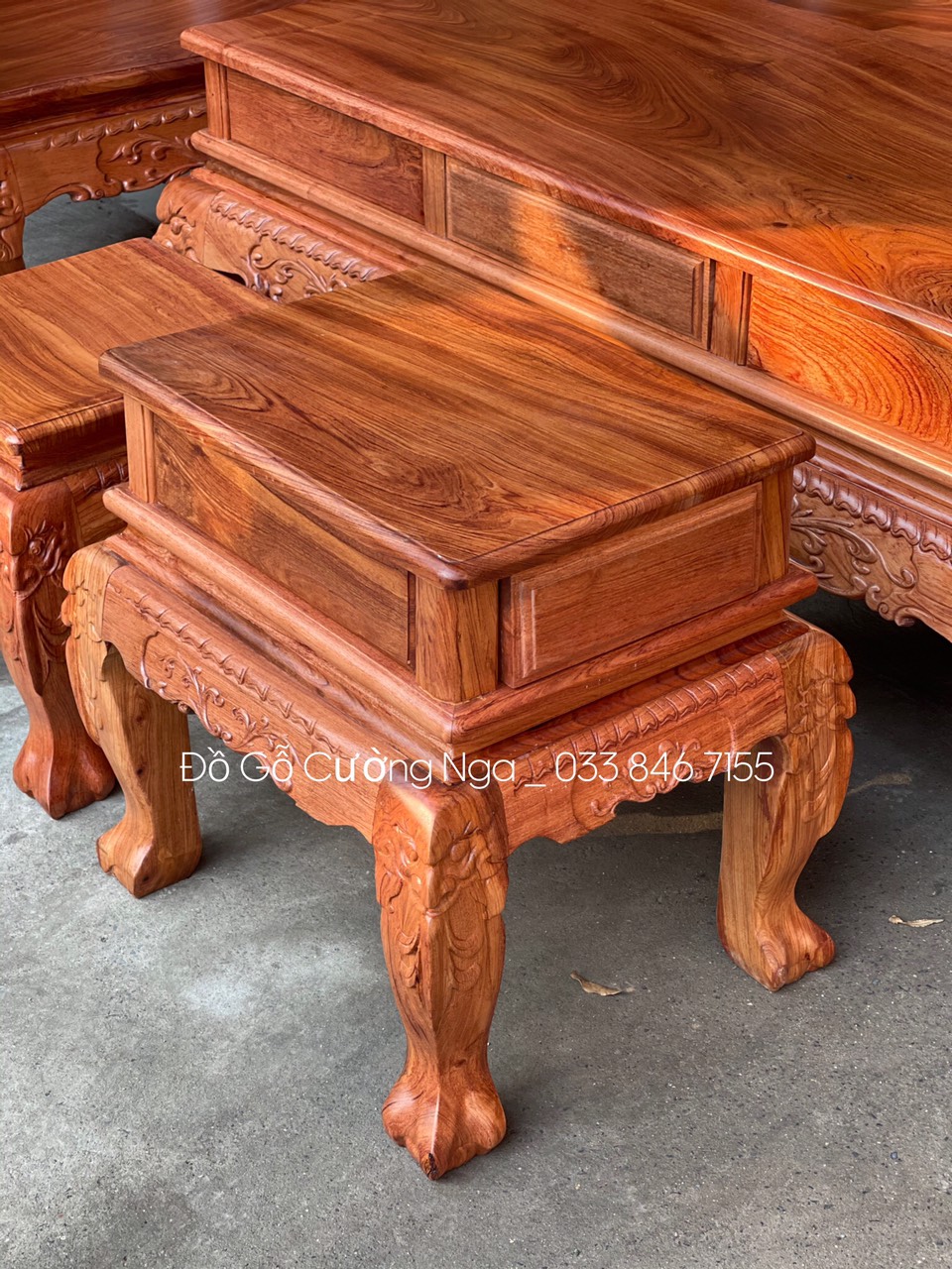 Bộ Salon được làm từ gỗ hương đá nên sẽ có độ bền cao, bên màu, tuổi thọ cao lên đến 50 năm. Bên cạnh đó vân gỗ mang nét đẹp vừa tinh tế lại sang trọng tạo nên vẻ đẹp cuốn hút, bắt mắt ngay từ cái nhìn đầu tiên.