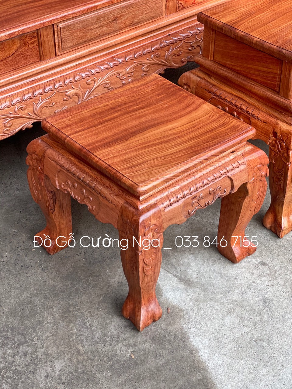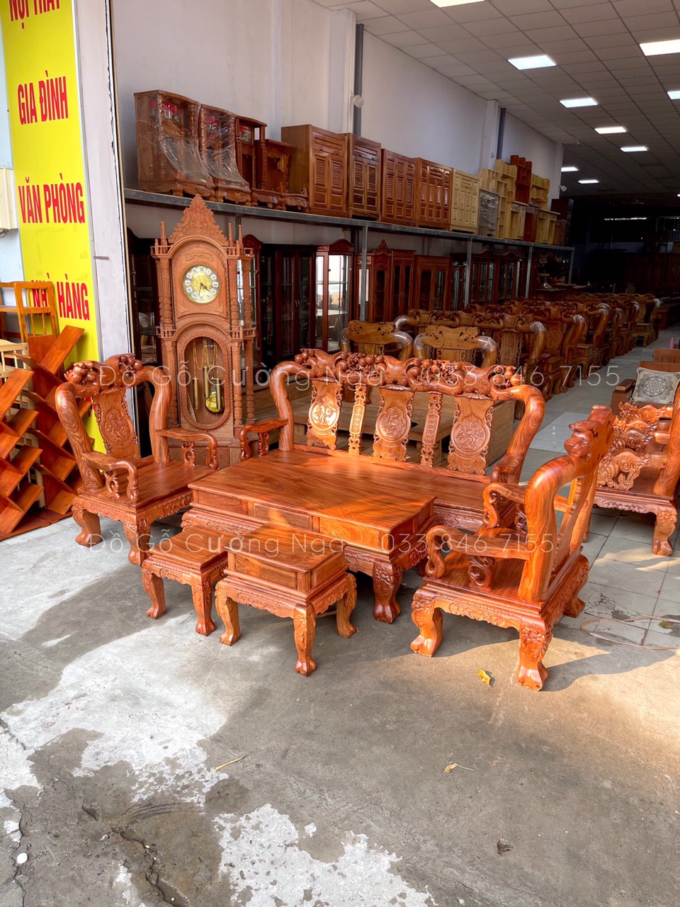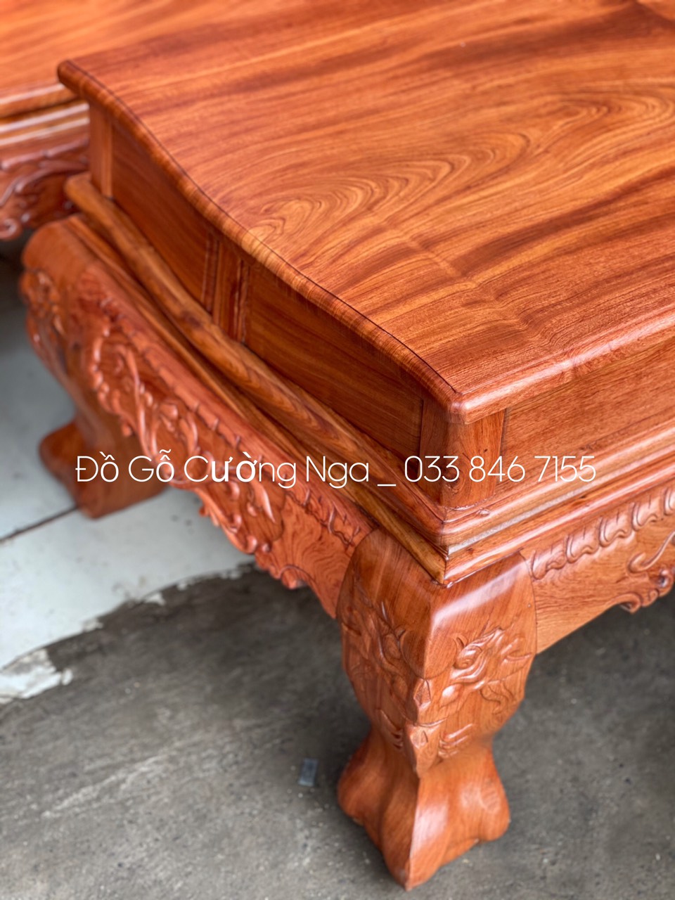 Bộ Salon được làm từ gỗ hương đá nên sẽ có độ bền cao, bên màu, tuổi thọ cao lên đến 50 năm. Bên cạnh đó vân gỗ mang nét đẹp vừa tinh tế lại sang trọng tạo nên vẻ đẹp cuốn hút, bắt mắt ngay từ cái nhìn đầu tiên.