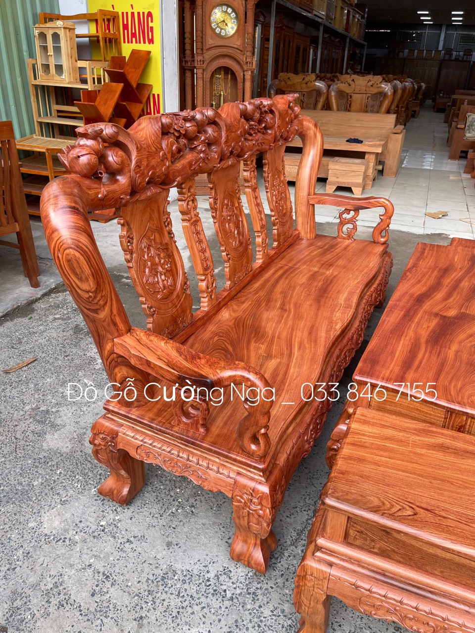 Bộ Bàn Ghế Salon Gỗ Hương Đá Chạm Đào Tay 12