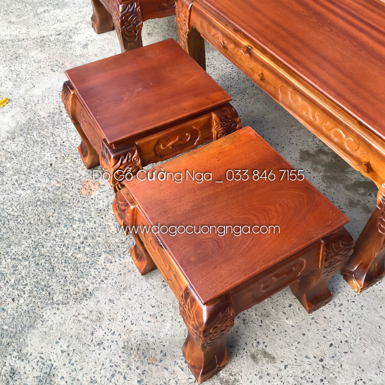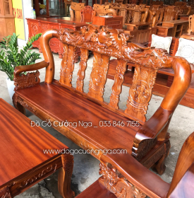 Bộ bàn ghế gỗ tràm tay 12 chạm rồng phượng