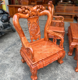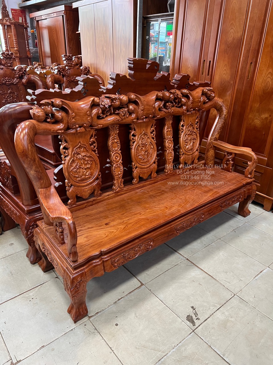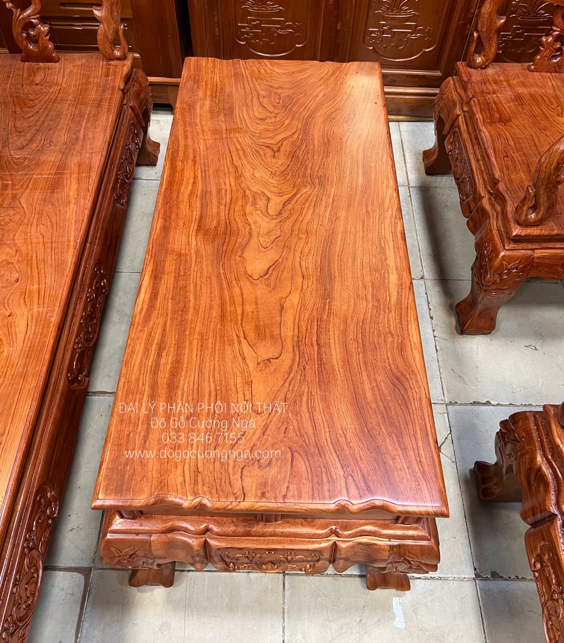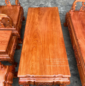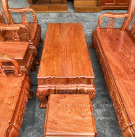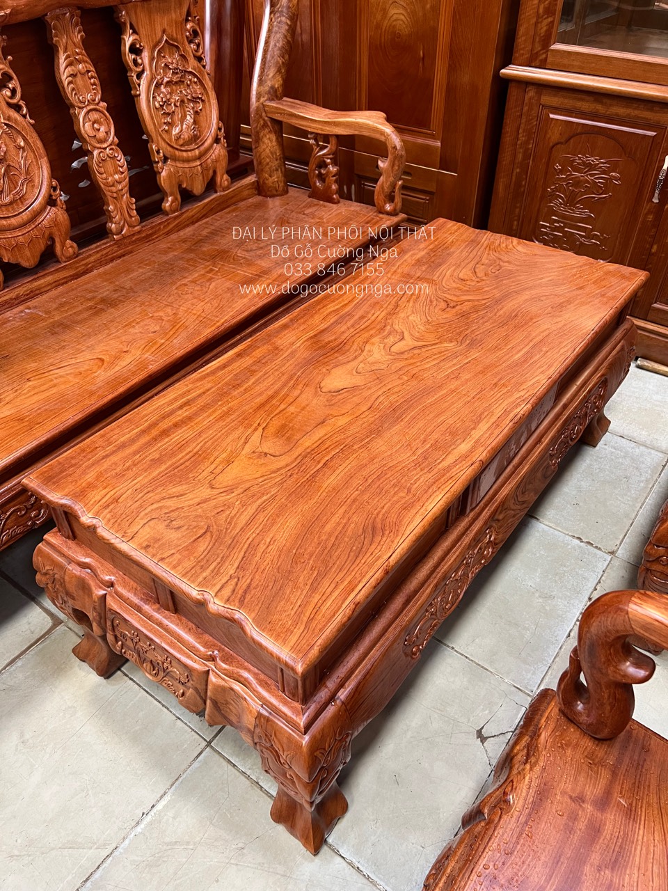 Bộ Bàn Ghế Salon Gỗ Hương Đá Mặt Liền Nguyên Tấm 10 Trạm Đào 6 Món