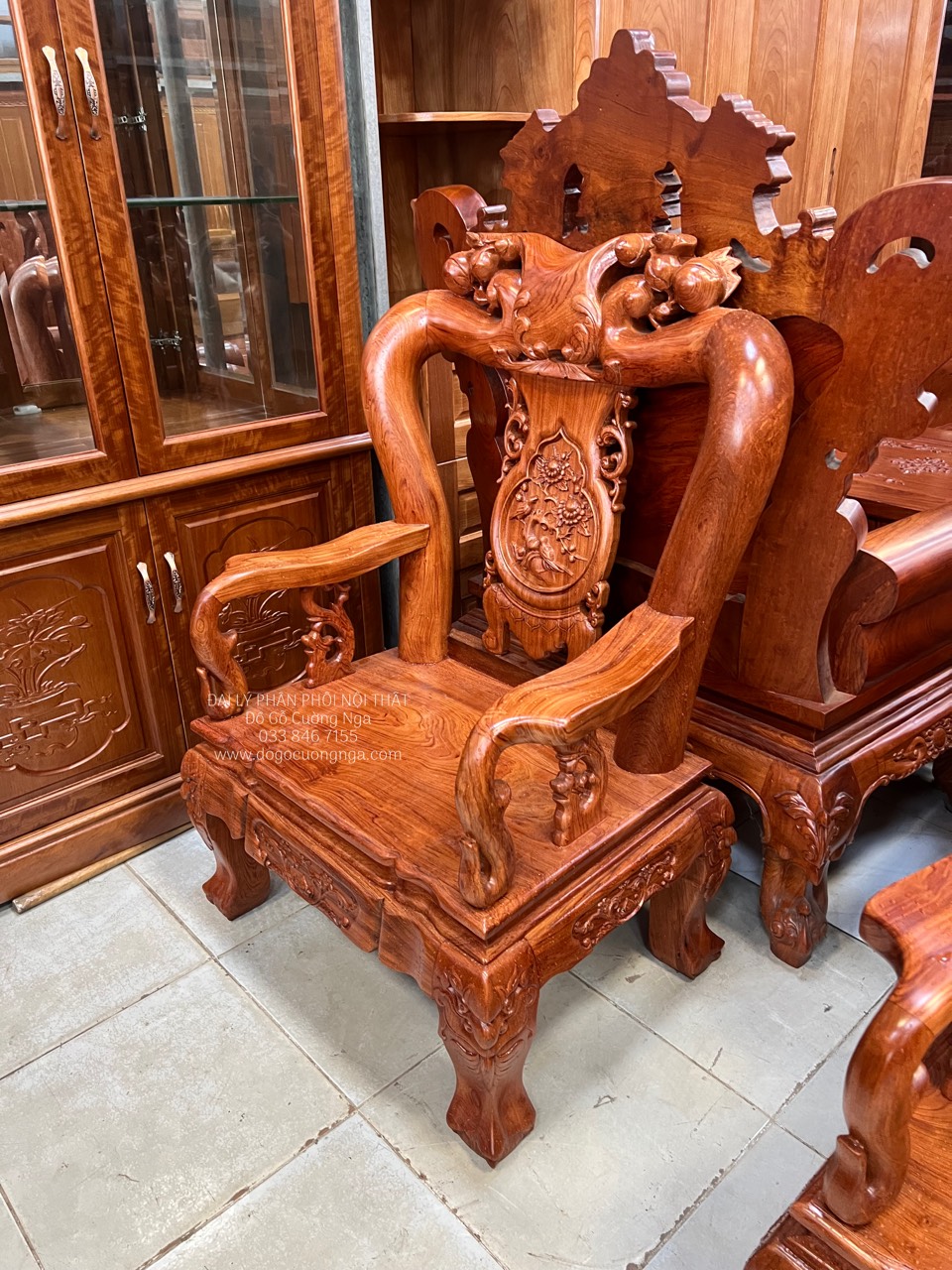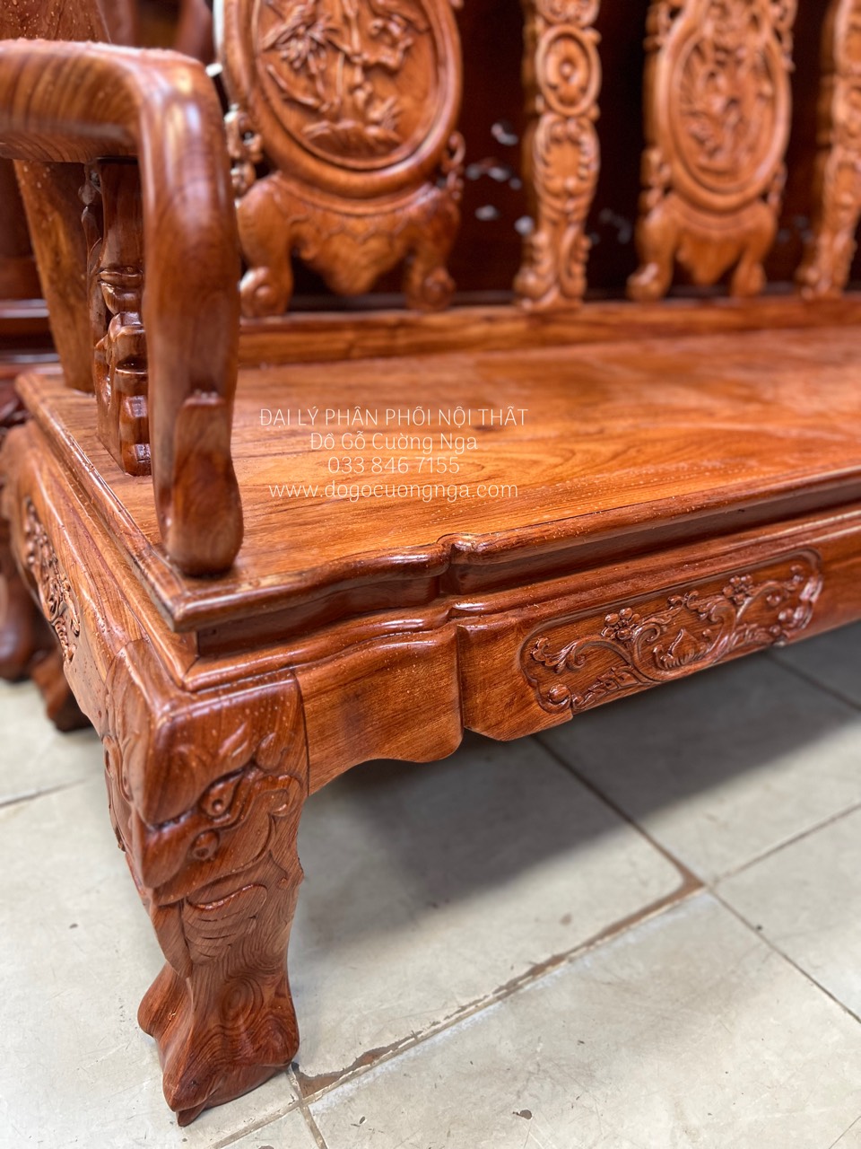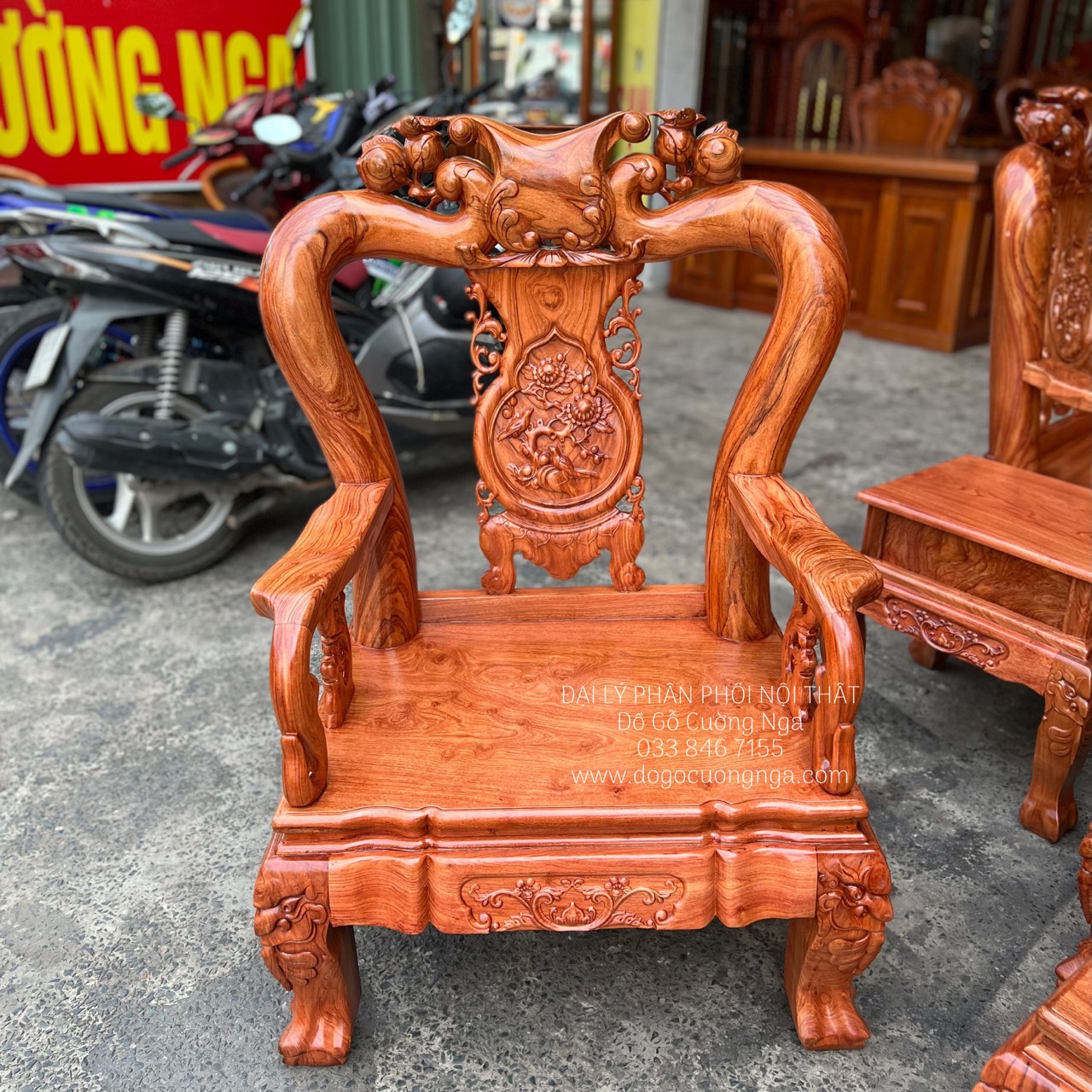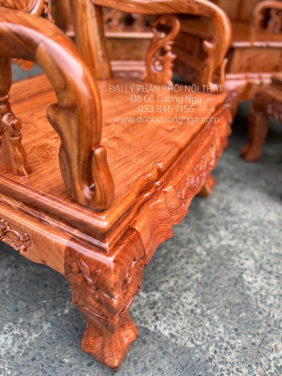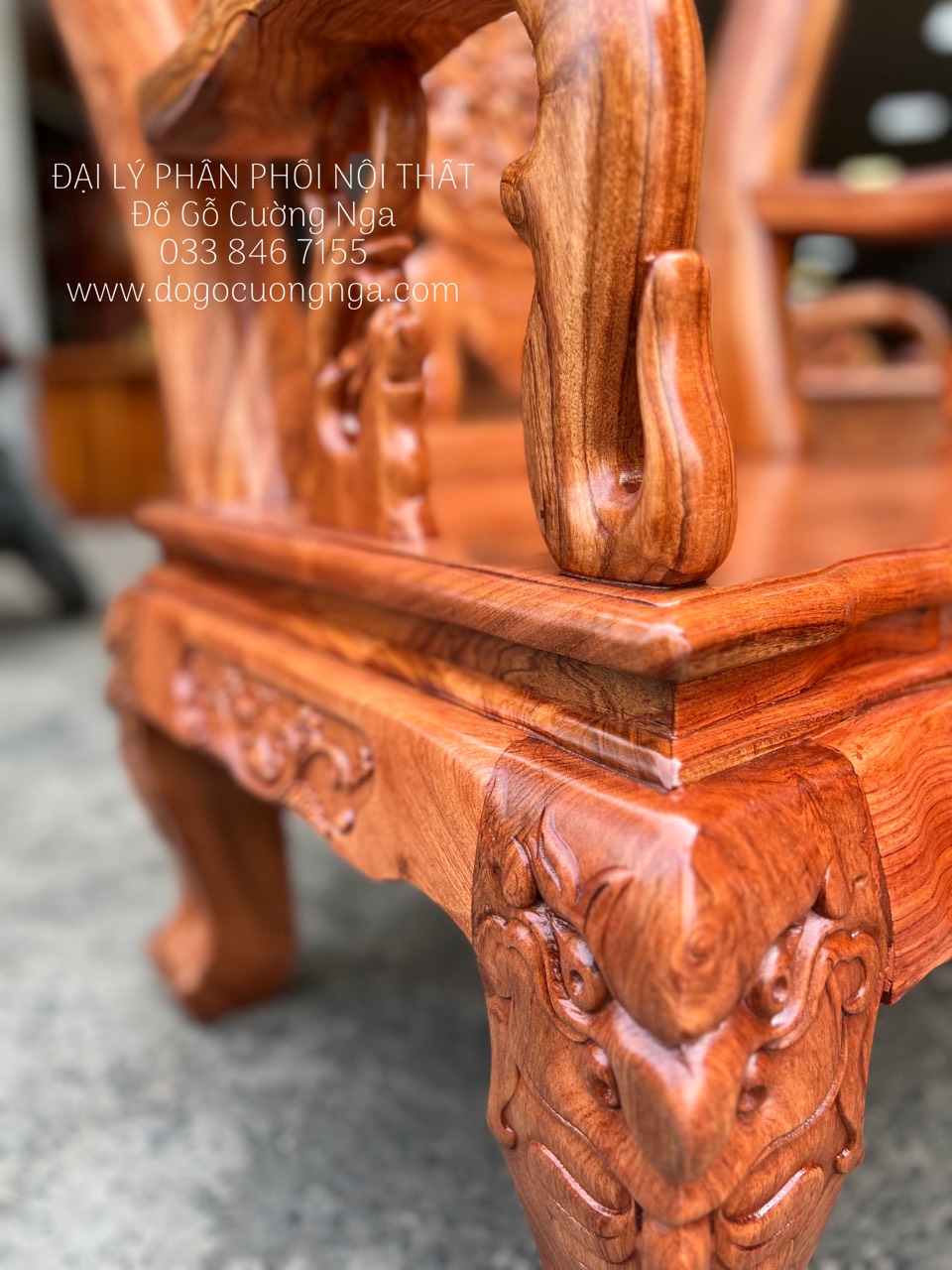Chi tiết bộ ghế salon gỗ hương đá tay 10