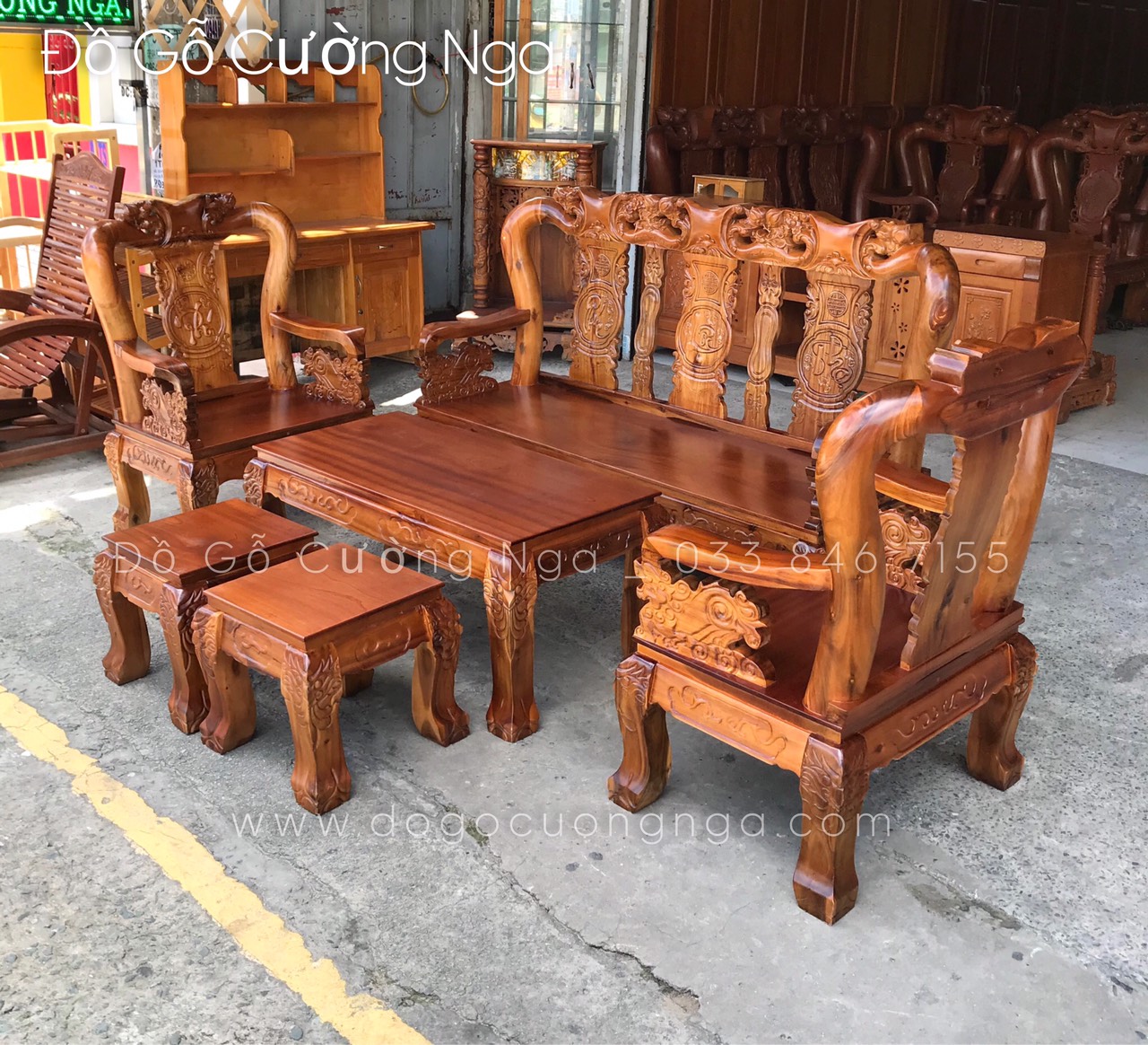 Mẫu salon gỗ cao cấp này hiện đang được trưng bày trên hệ thống cửa hàng Đồ Gỗ Cường Nga để giúp quý khách hàng thuận tiện hơn trong việc mua sắm nội thất cho ngôi nhà, cửa hàng của chúng tôi còn cung cấp nhiều sản phẩm nội thất gỗ tự nhiên khác như kệ tivi, bàn ăn, giường ngủ gỗ, v…v… Quý khách có thể truy cấp vào website giuongtugo.com để tham khảo thêm thông tin các sản phẩm hoặc gọi đến Hotline 033 846 7155 để được chuyên viên tư vấn cụ thể hơn.