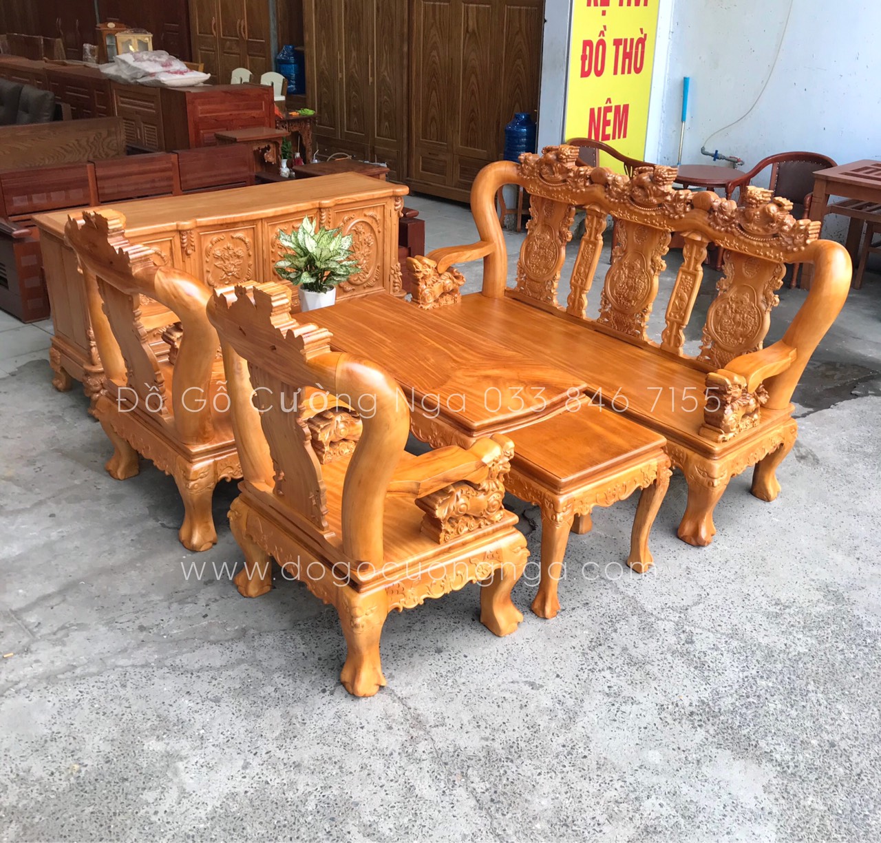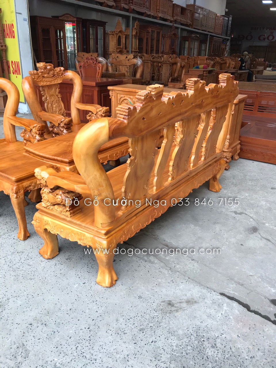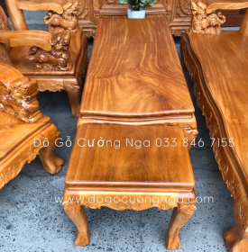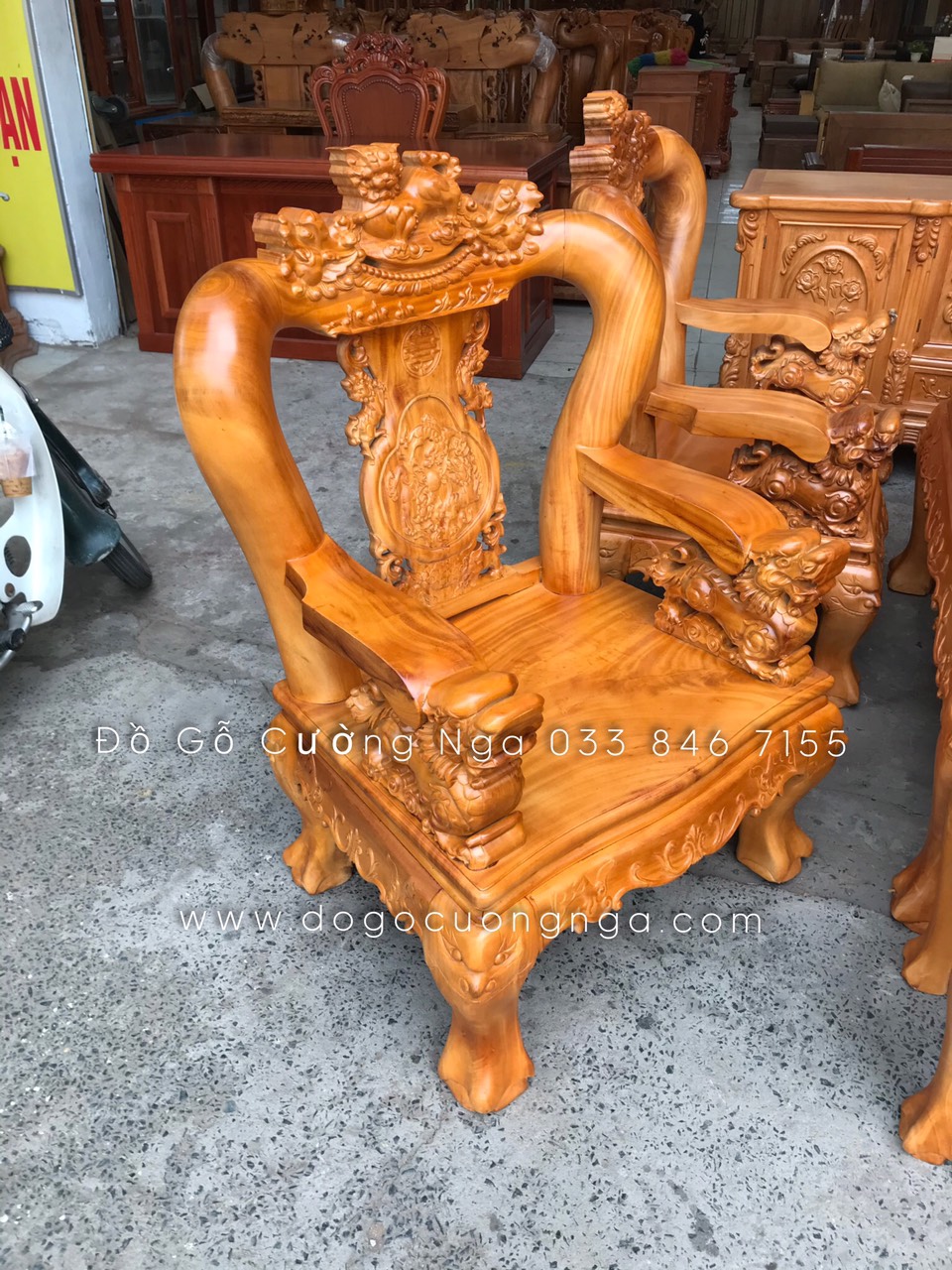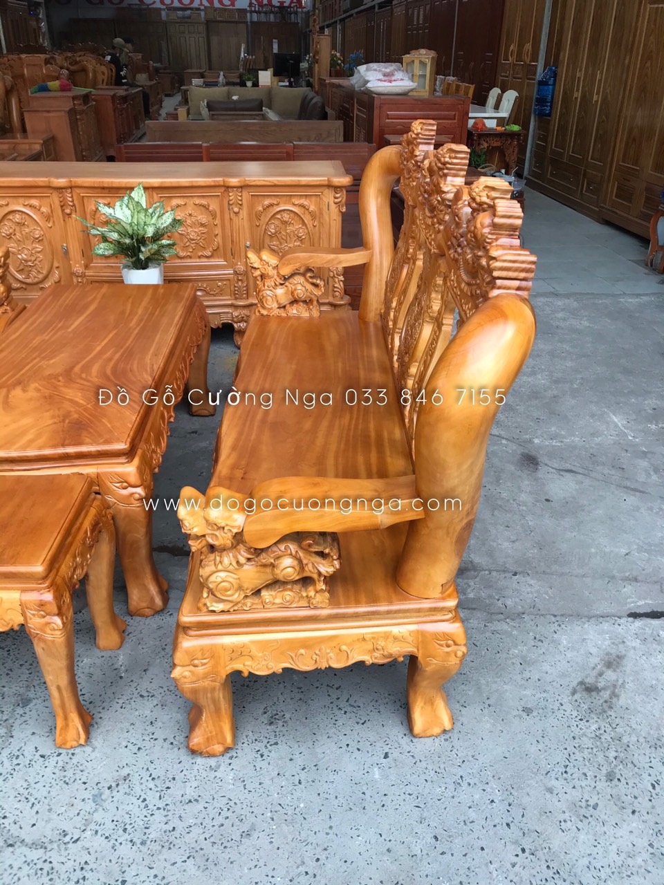 Bộ bàn ghế salon gỗ xà cừ tay 12 chạm nghê hạt