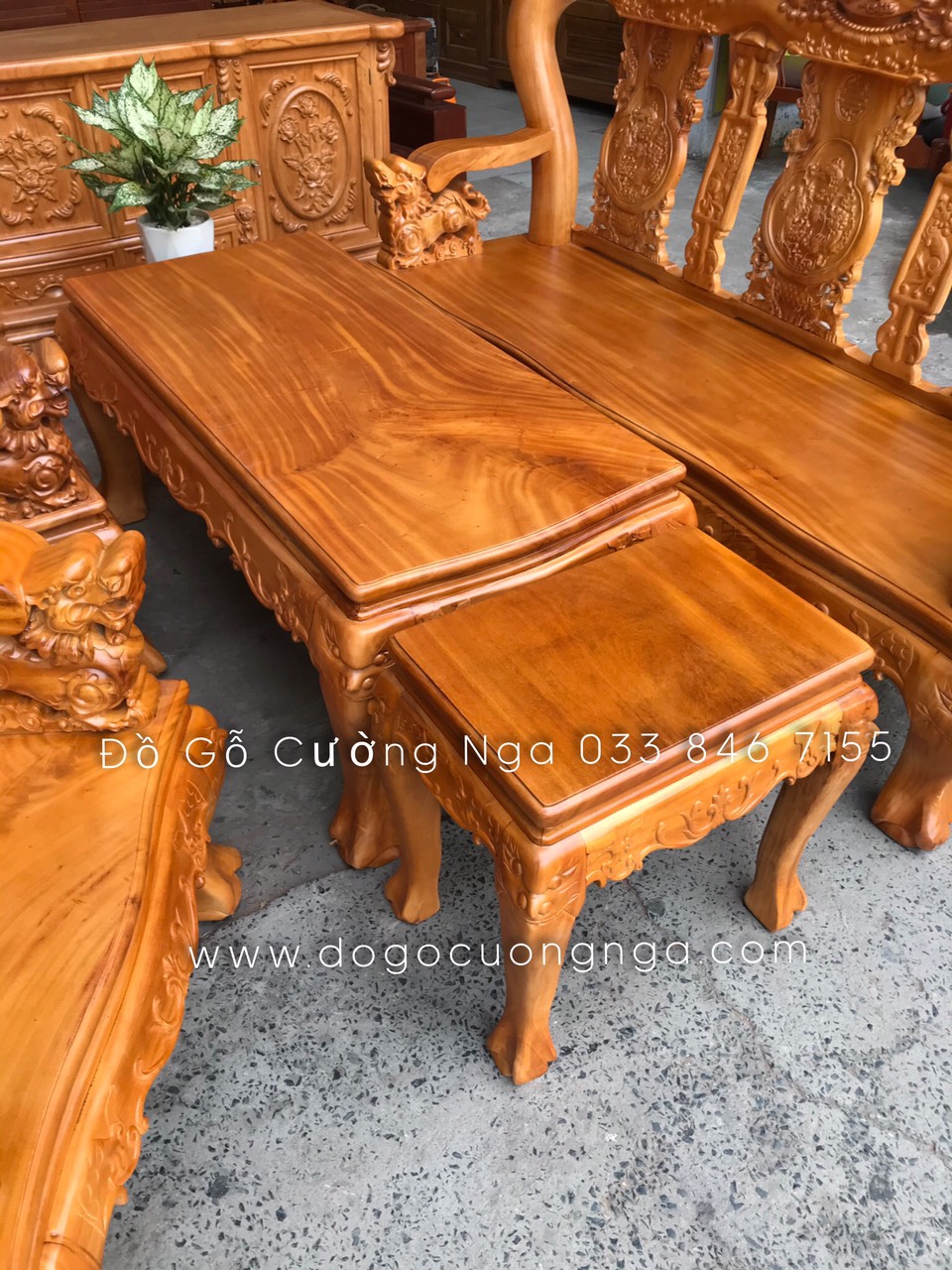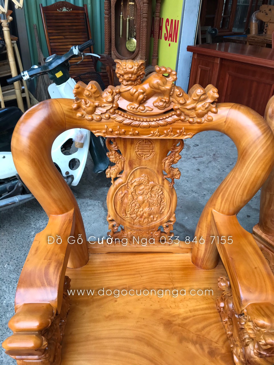 Chi tiết bộ slaon gỗ xà cừ tay 12 chạm nghê đẹp