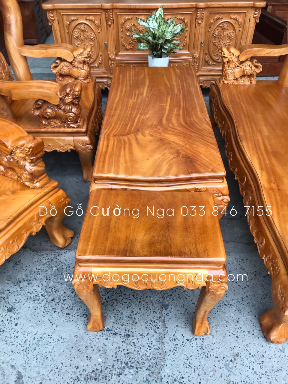 Bàn ghế salon gỗ xà cừ tay 12 chạm nghê