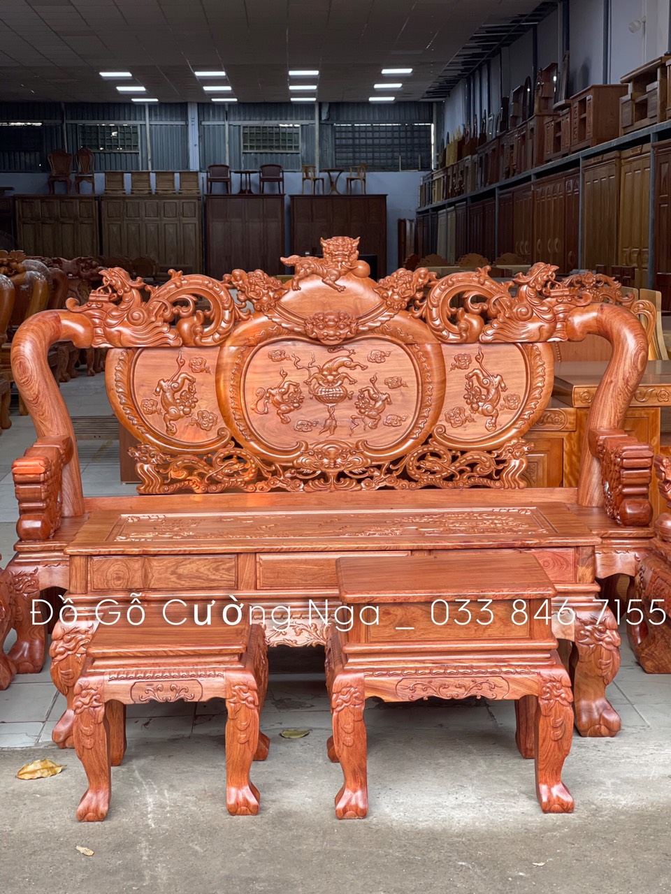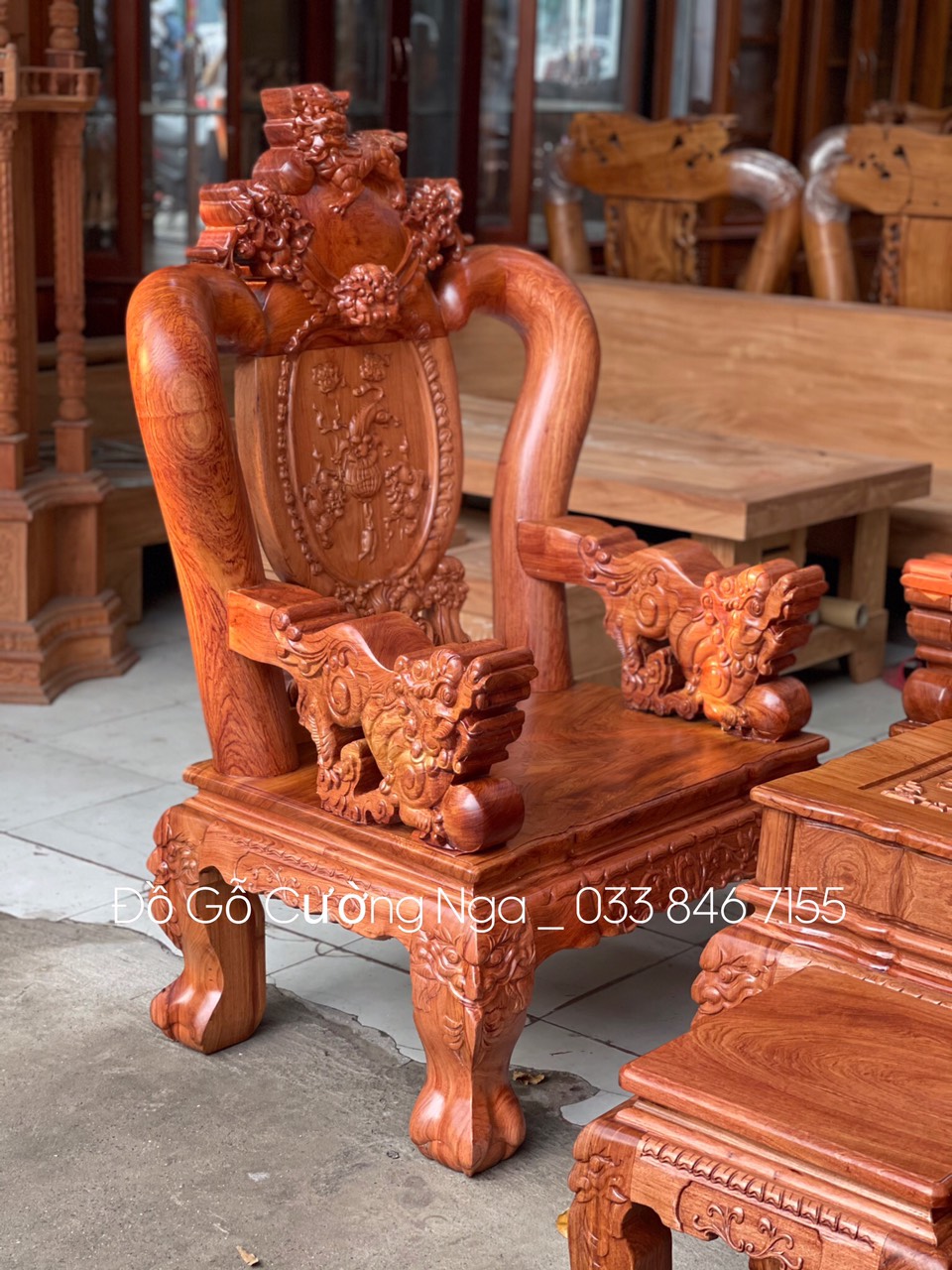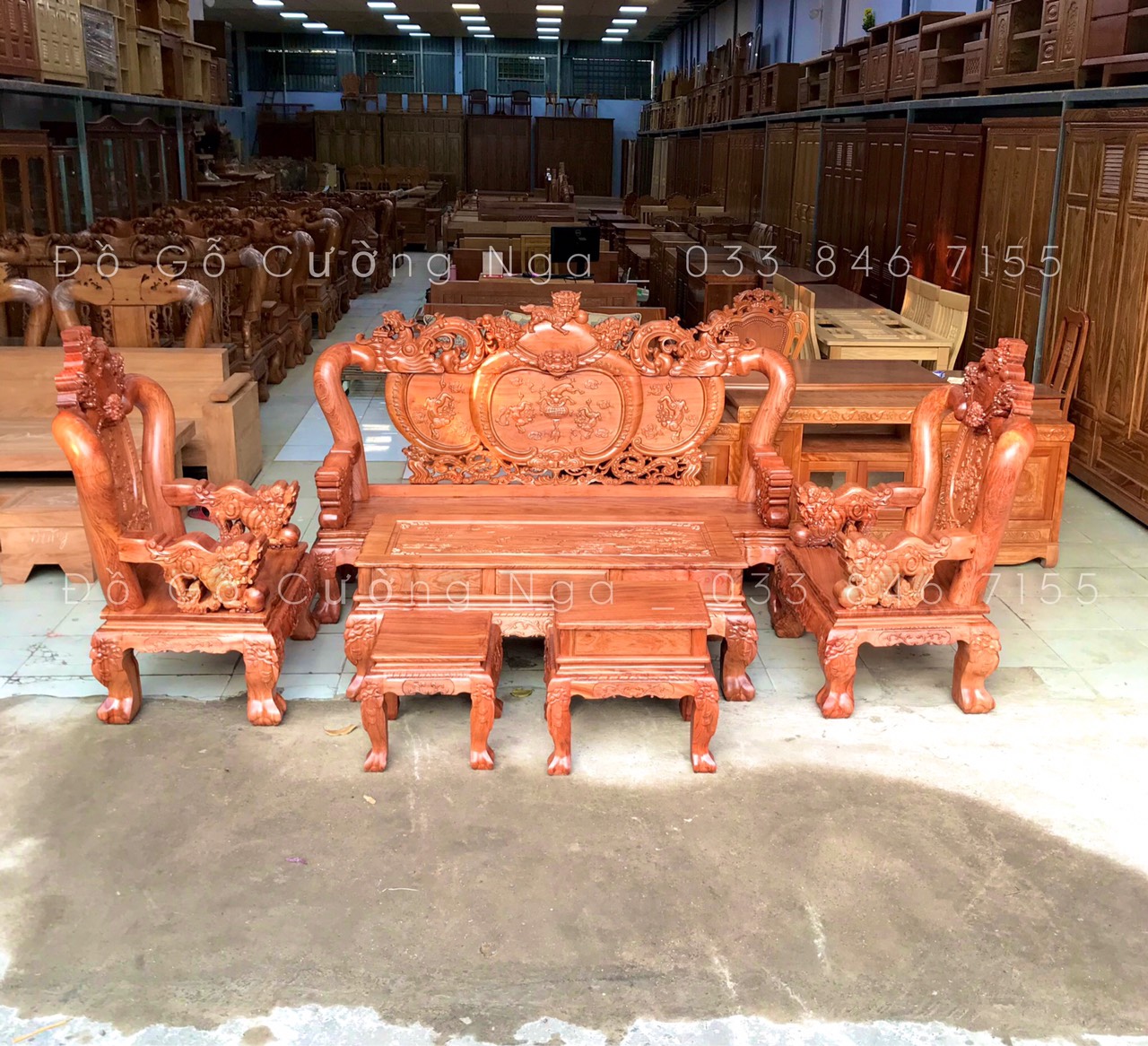 Cơ sở Đồ Gỗ Cường Nga giới thiệu cho quý khách hàng “Bộ Salon hương đá tay 12 6 món chạm Nghê Phượng chất liệu gỗ hương đá “đốn tim” các tín đồ nội thất