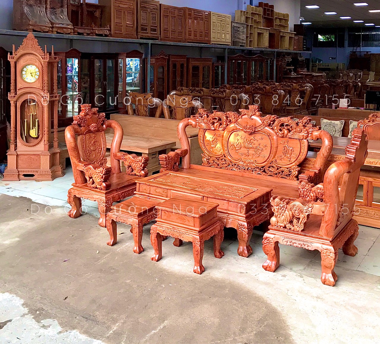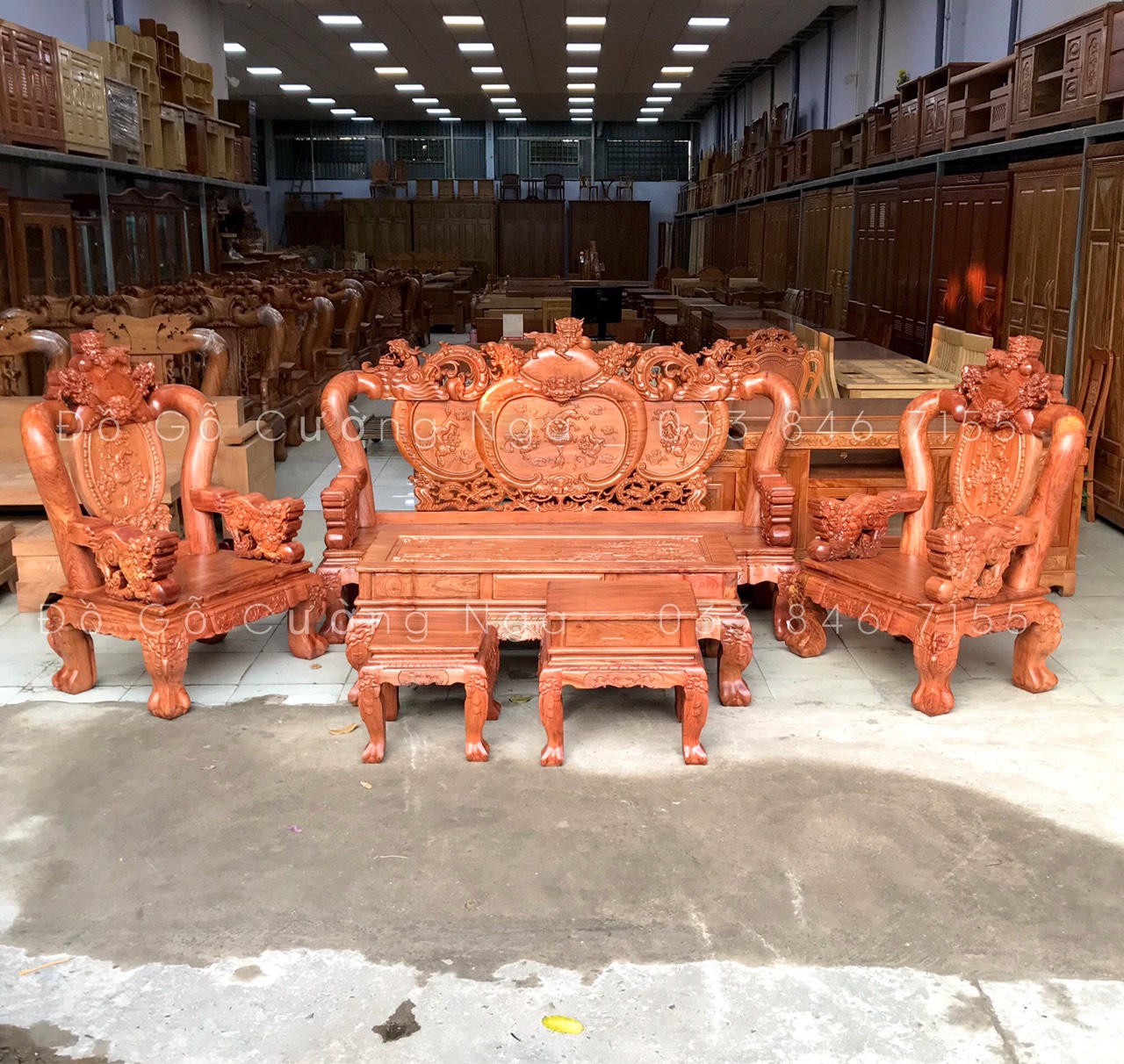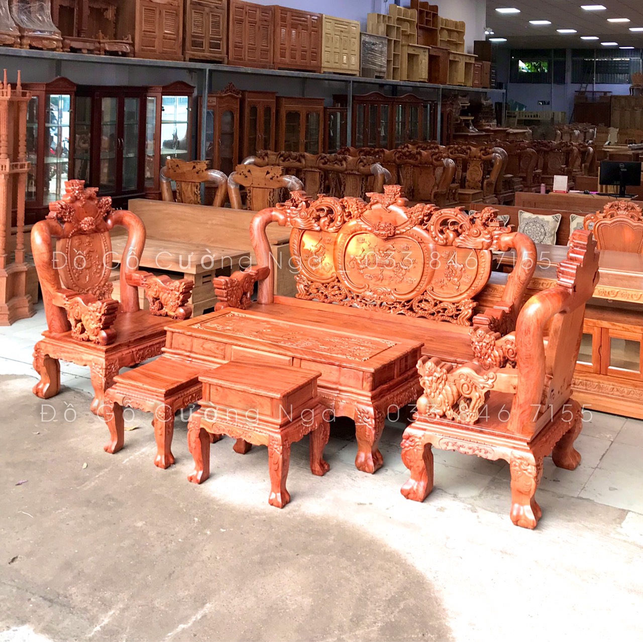 Cơ sở Đồ Gỗ Cường Nga giới thiệu cho quý khách hàng “Bộ Salon hương đá tay 12 6 món chạm Nghê Phượng chất liệu gỗ hương đá “đốn tim” các tín đồ nội thất