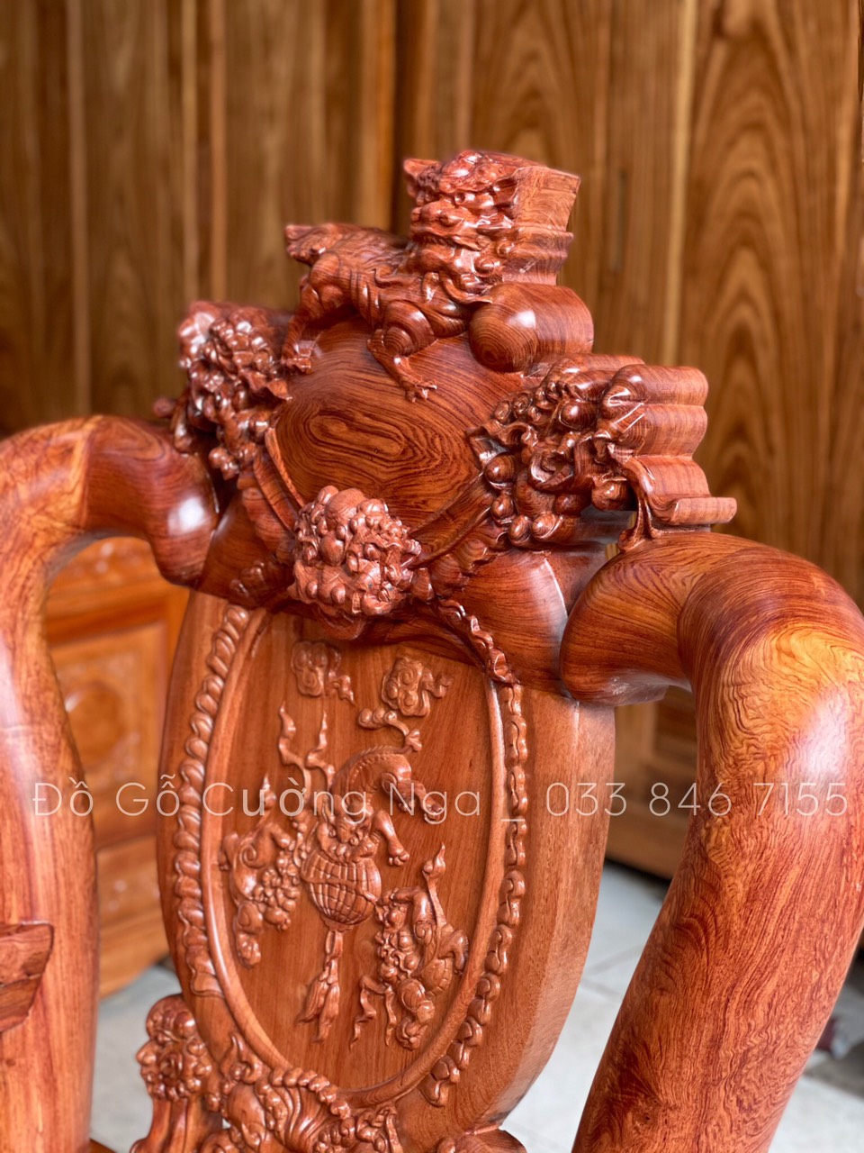 Bộ bàn ghế slaon gỗ hương đá cột 12 - nghê phượng