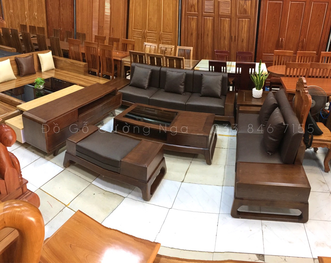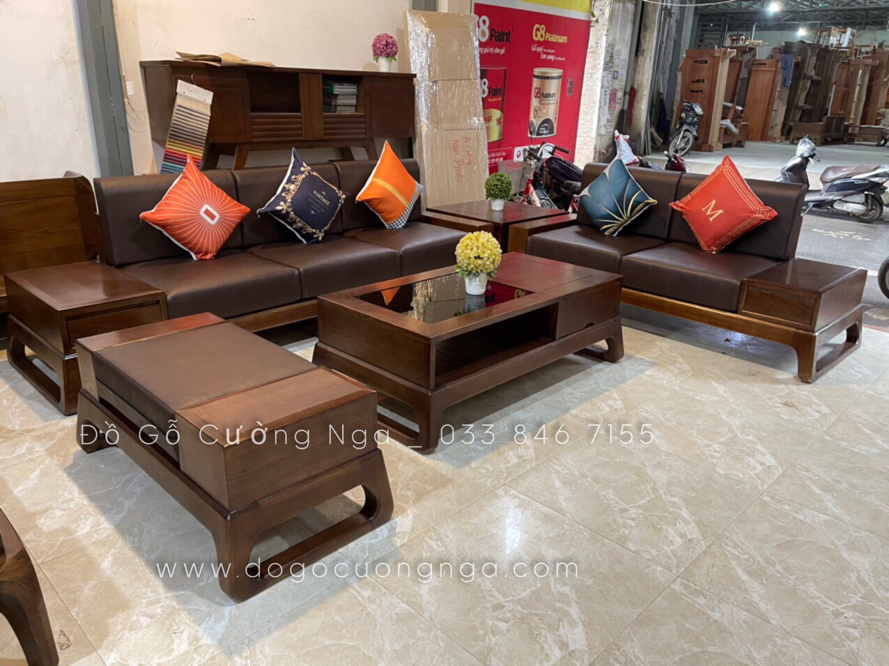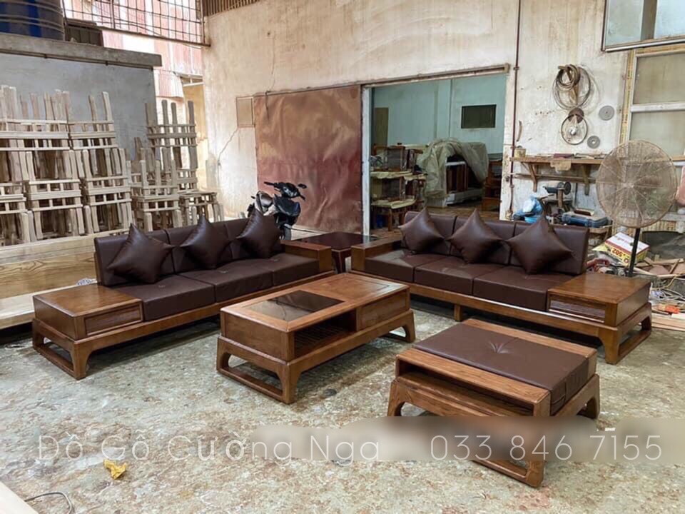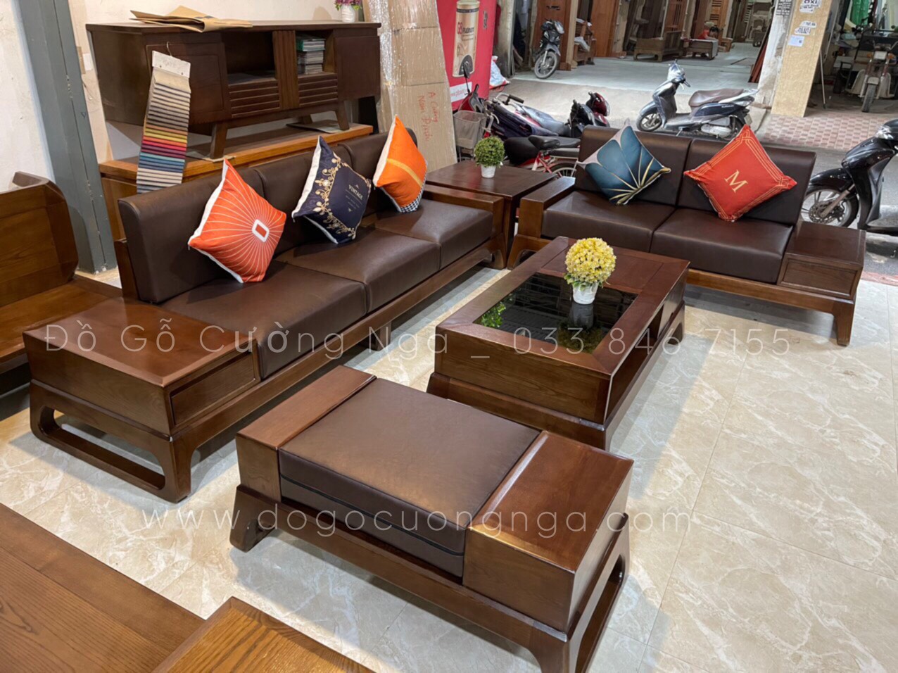 Bộ bàn ghế sofa 2 văng chân hươu gỗ sồi nga - màu óc chó