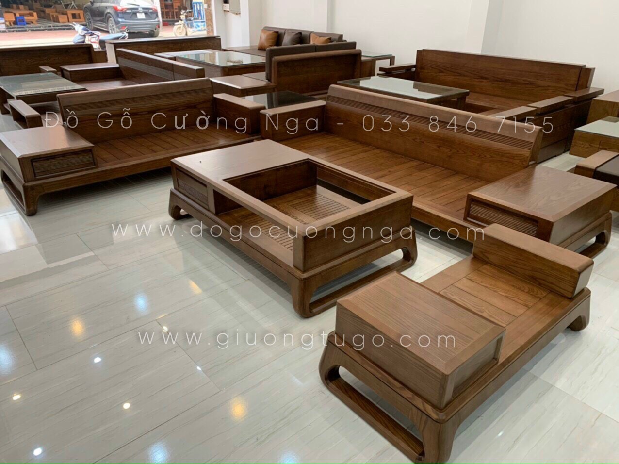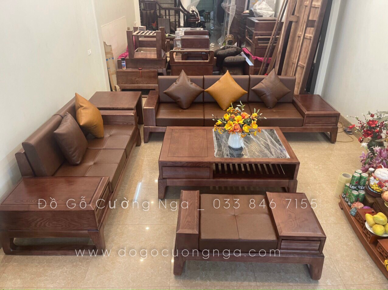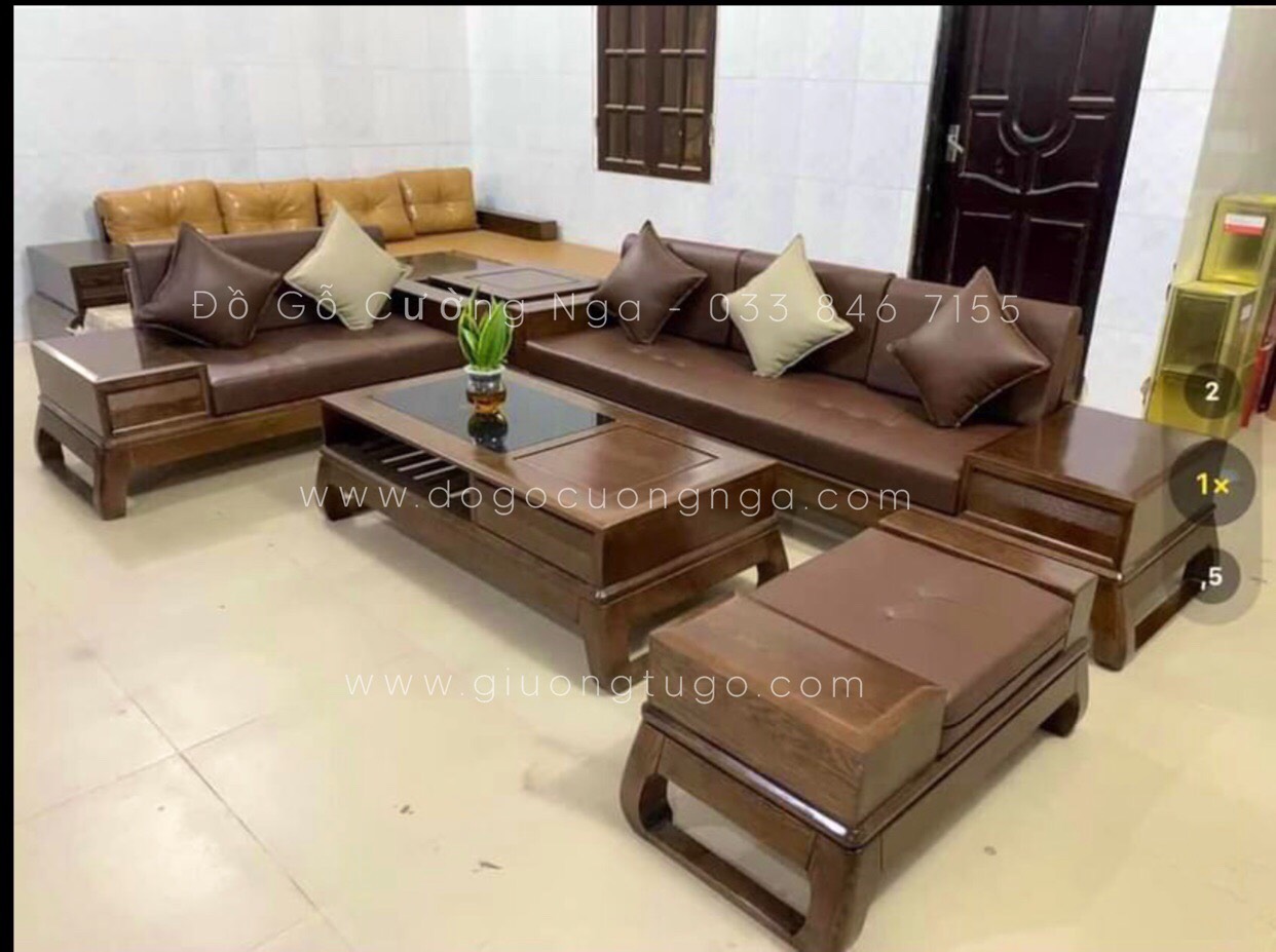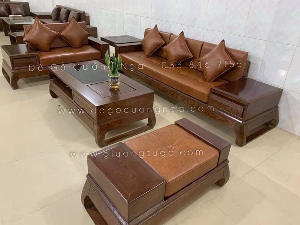Bộ bàn ghế sofa 2 văng chân hươu gỗ sồi nga - màu óc chó