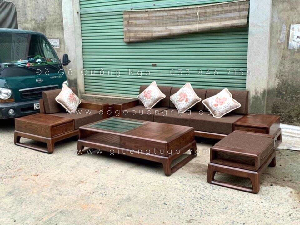 Bộ Sofa Gỗ Sồi Nga Góc L Chân Thuyền 2m8x1m9 Màu Óc Chó Sang Trọng