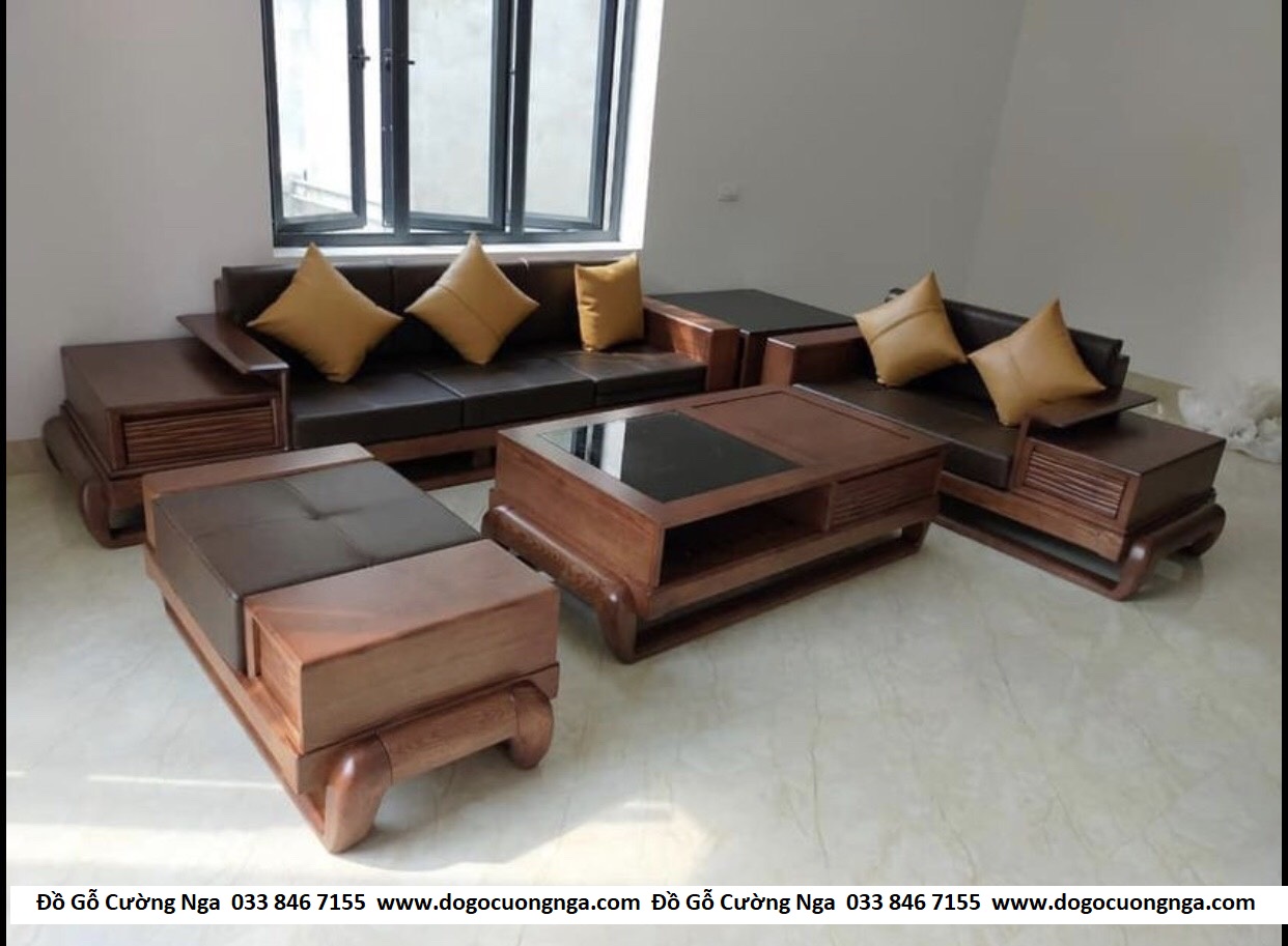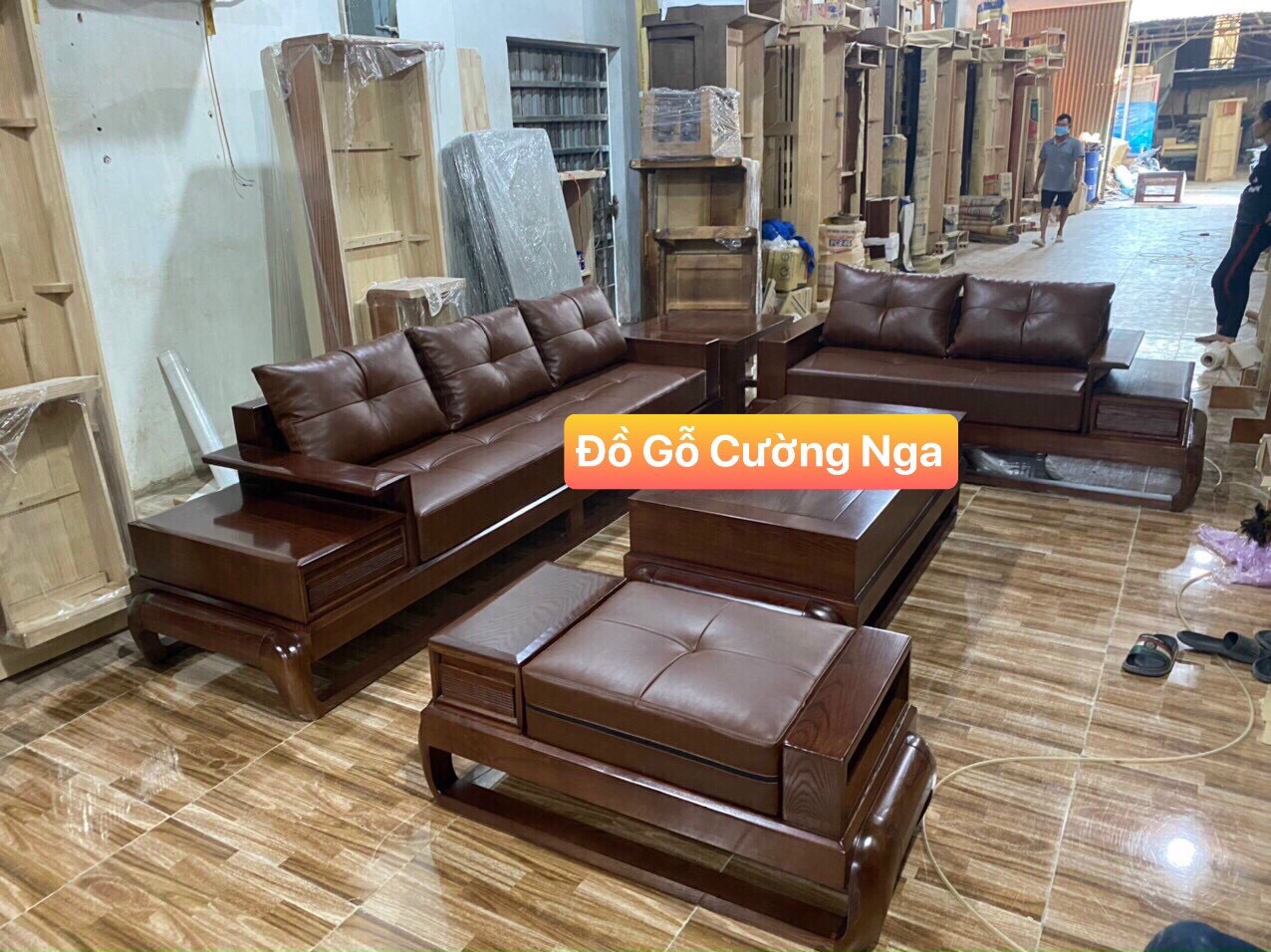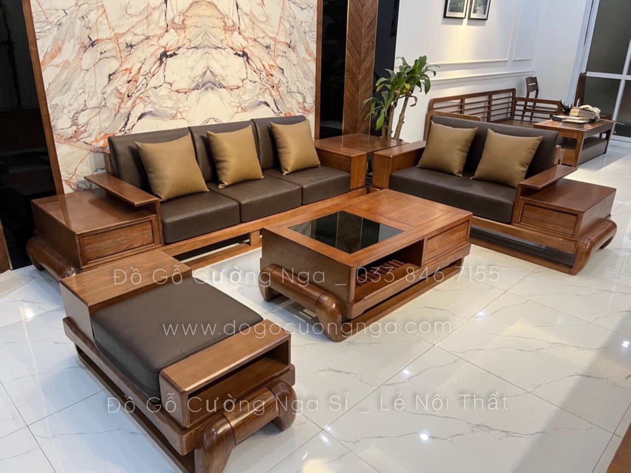 Bộ Bàn Ghế Sofa 2 Văng Gỗ Sồi Nga Kèm Nệm - Mẫu Đùi Gà