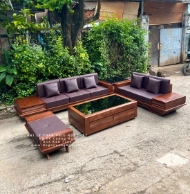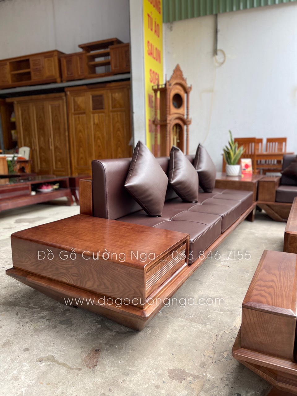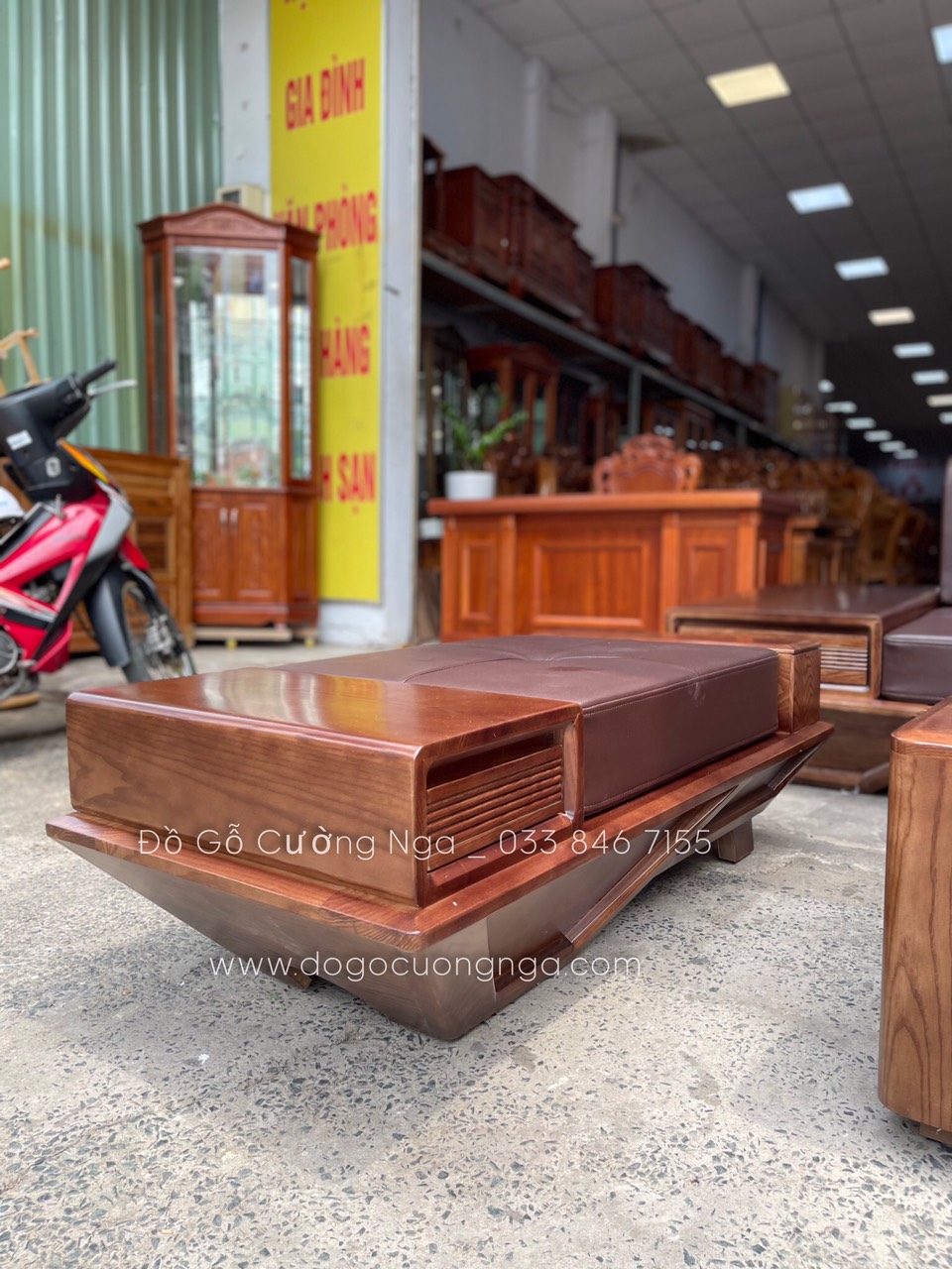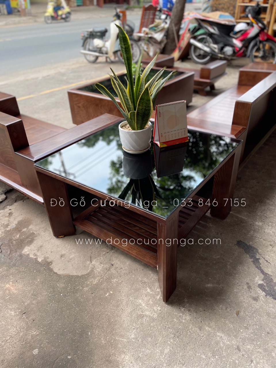Bộ Bàn Ghế Sofa 2 Văng Thuyền Gỗ Sồi Nga Lau Màu Óc Chó Kèm Nệm