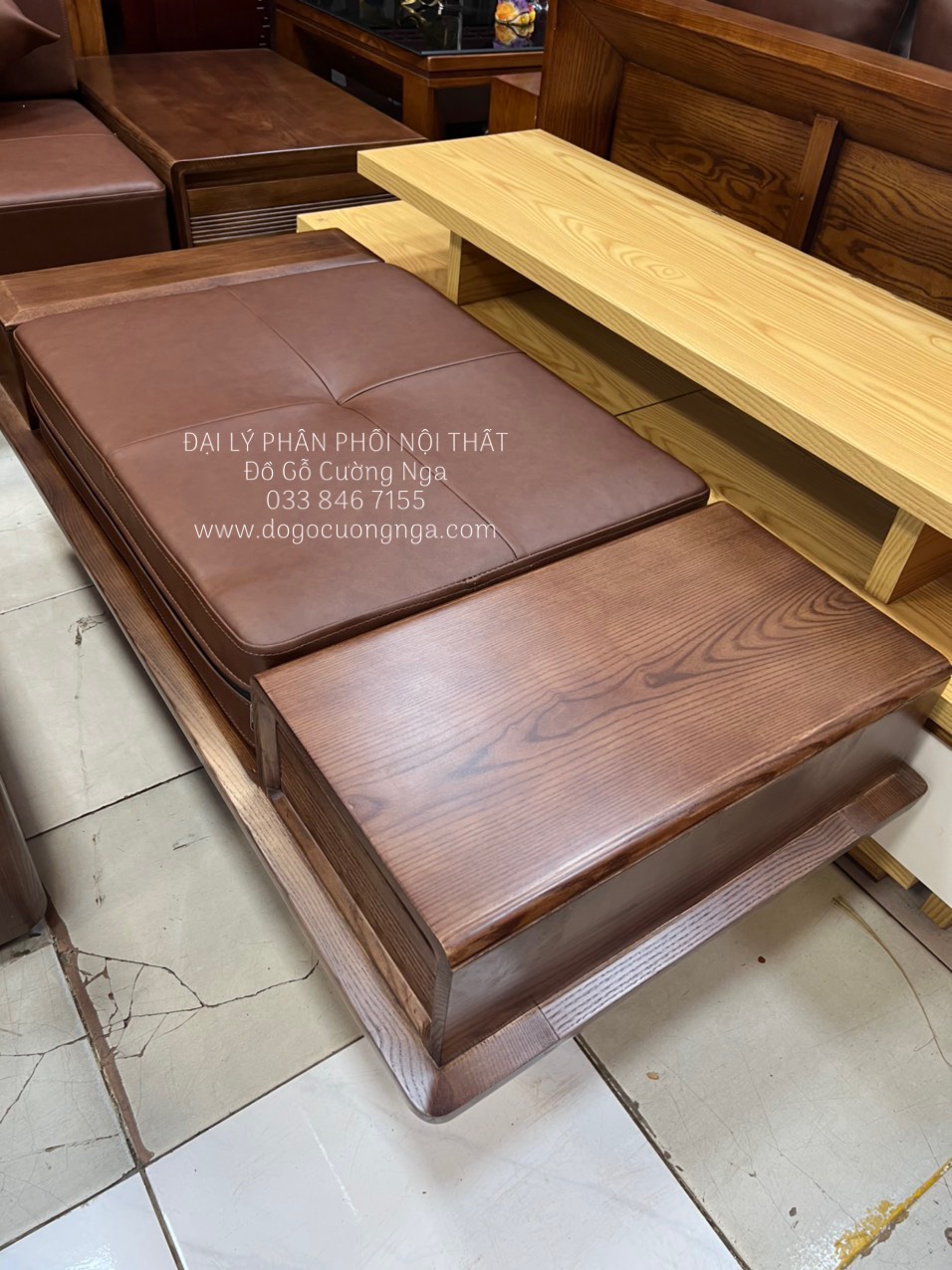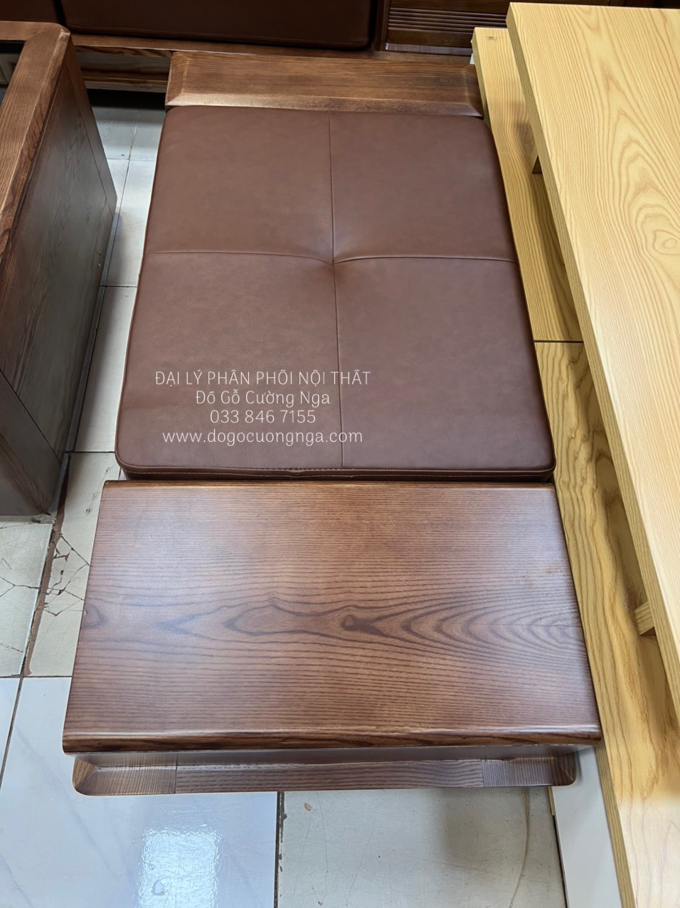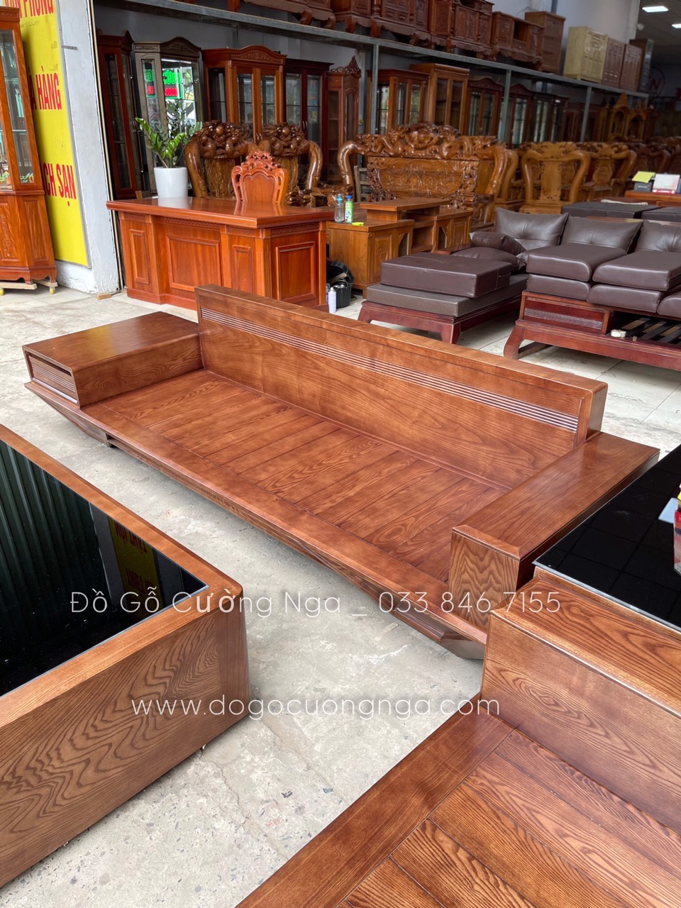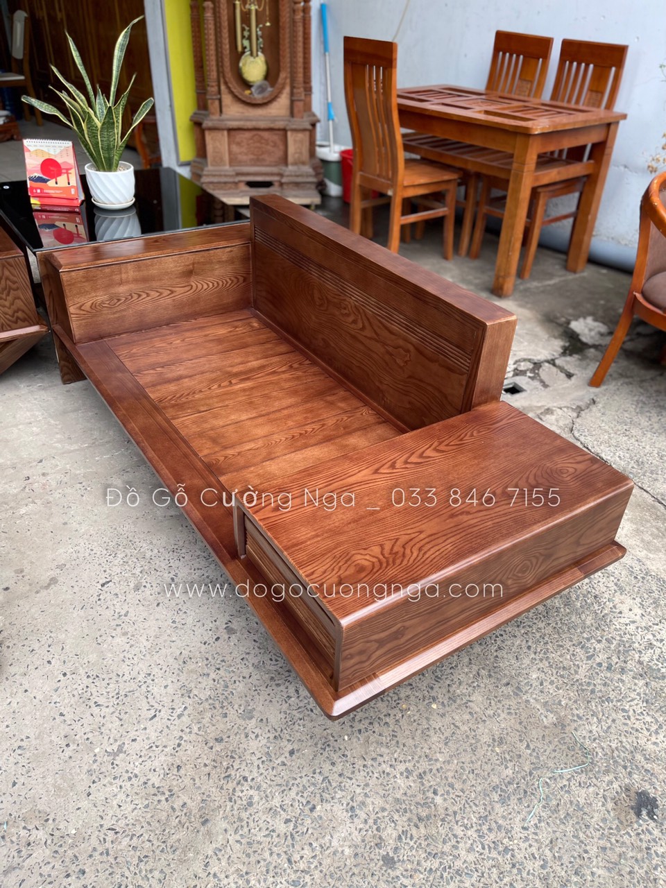 Chi Tiết Bộ Sofa 2 Văng Gỗ Sồi Lau Màu Óc Chó