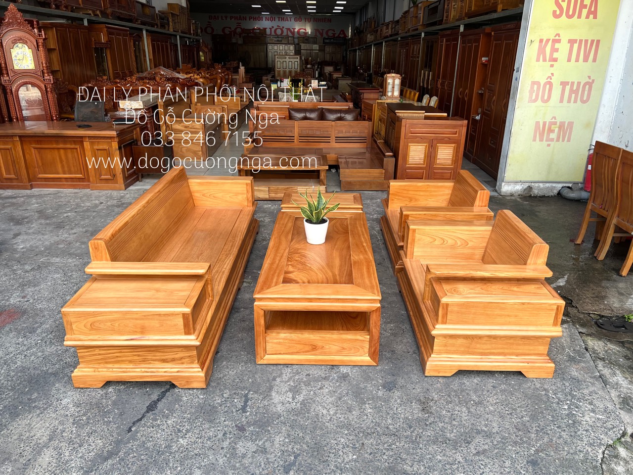Bộ ghế sofa gỗ gõ đỏ đối xứng cao cấp