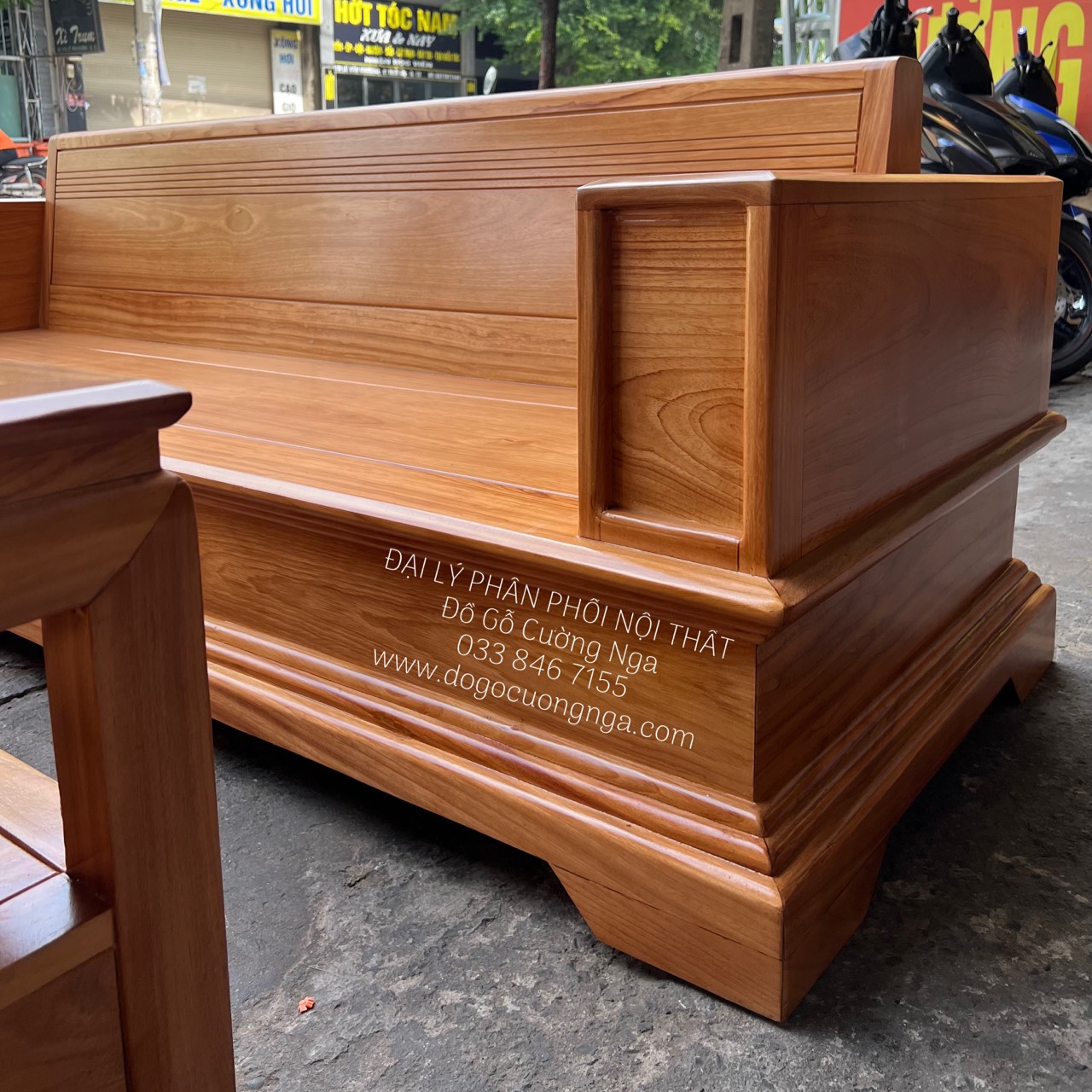 Thiết kế sofa gỗ đối xứng với chân pháo là điểm nhấn đặc biệt của bộ bàn ghế sofa này. Sự cân đối trong từng chi tiết không chỉ tạo nên vẻ đẹp tinh tế mà còn mang lại cảm giác vững chắc, mạnh mẽ.