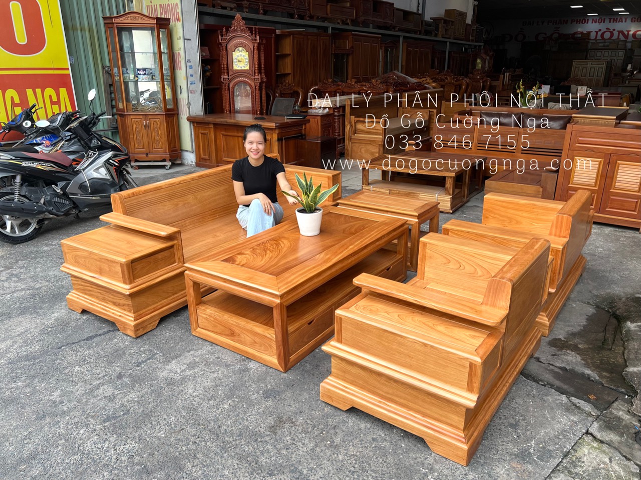 Video thực tế chi tiết bộ sofa đối gỗ gõ đỏ chân pháo