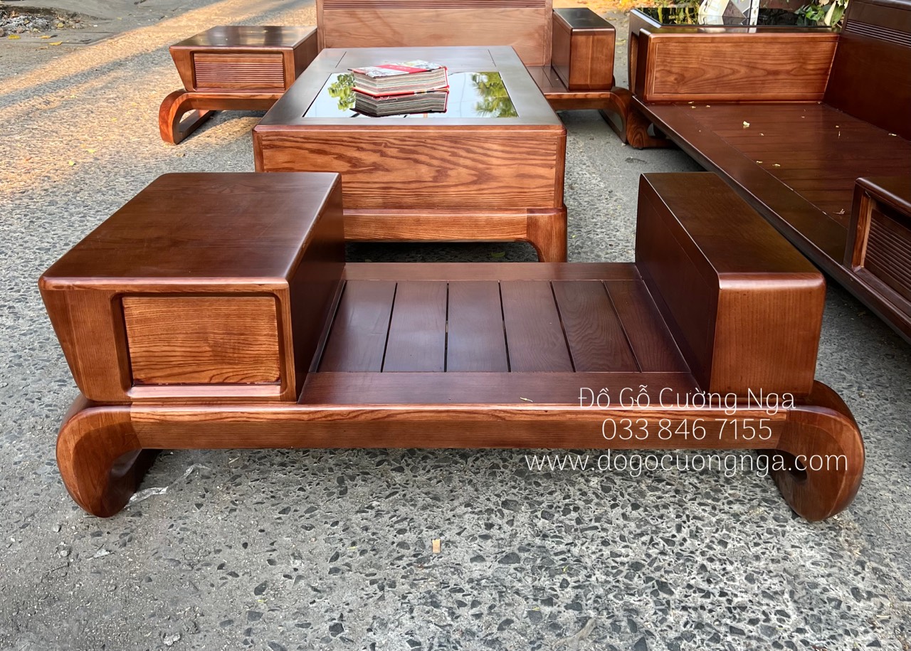 Chi tiết bộ ghế sofa gỗ sồi nga màu óc chó