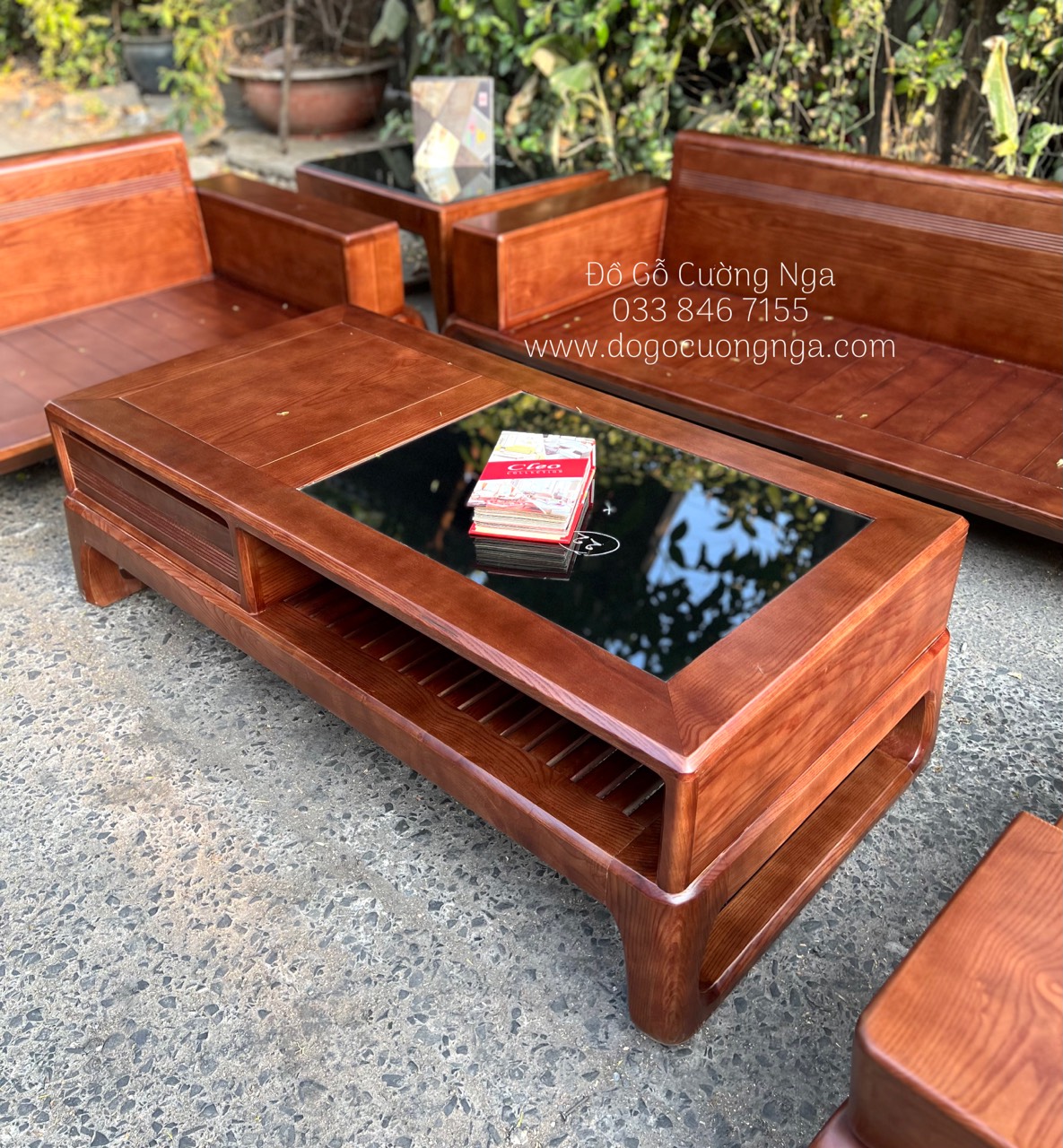 Bộ Bàn Ghế Sofa Gỗ Sồi Nga 2 Văng Chân Xoắn Cao Cấp