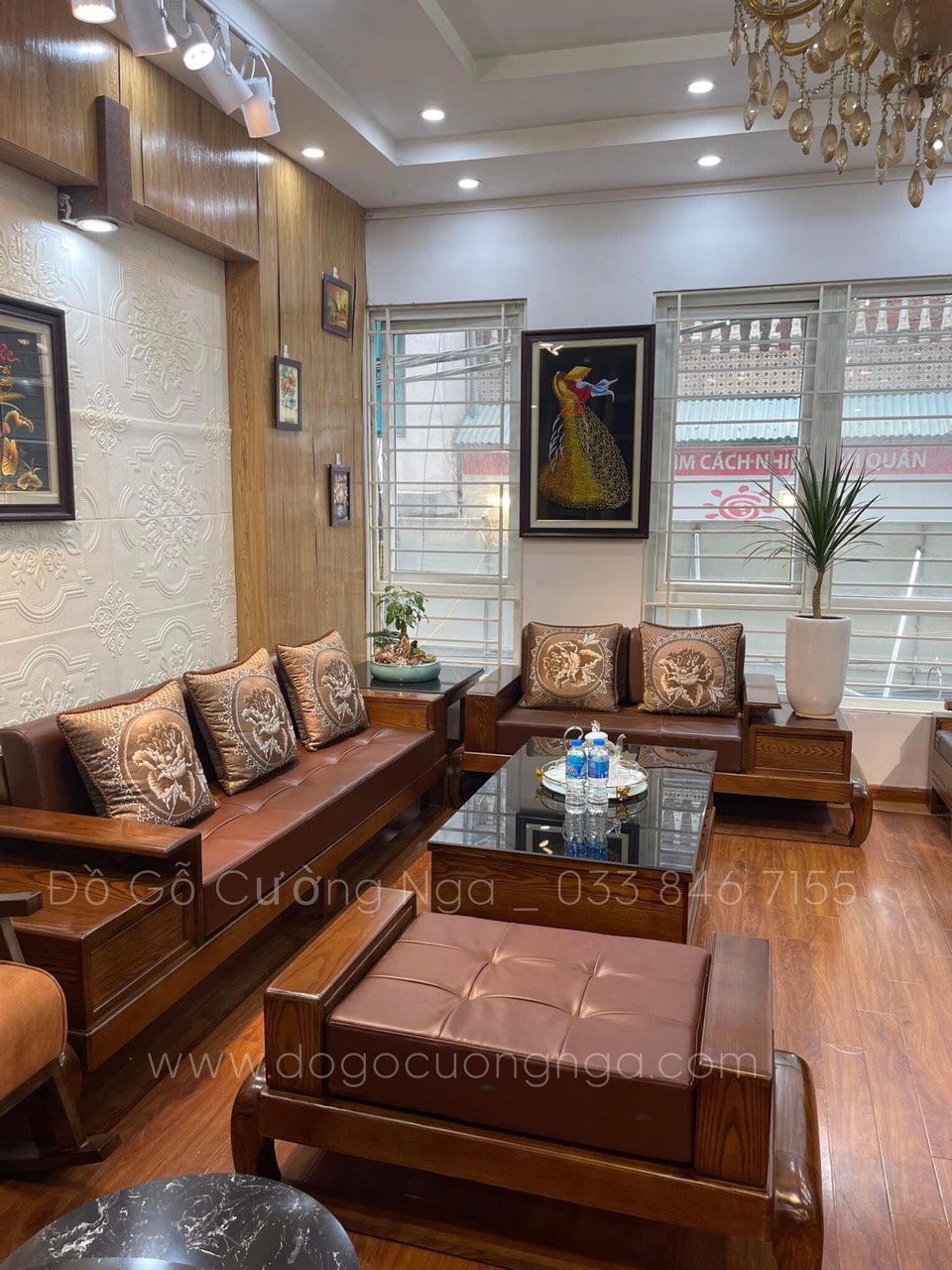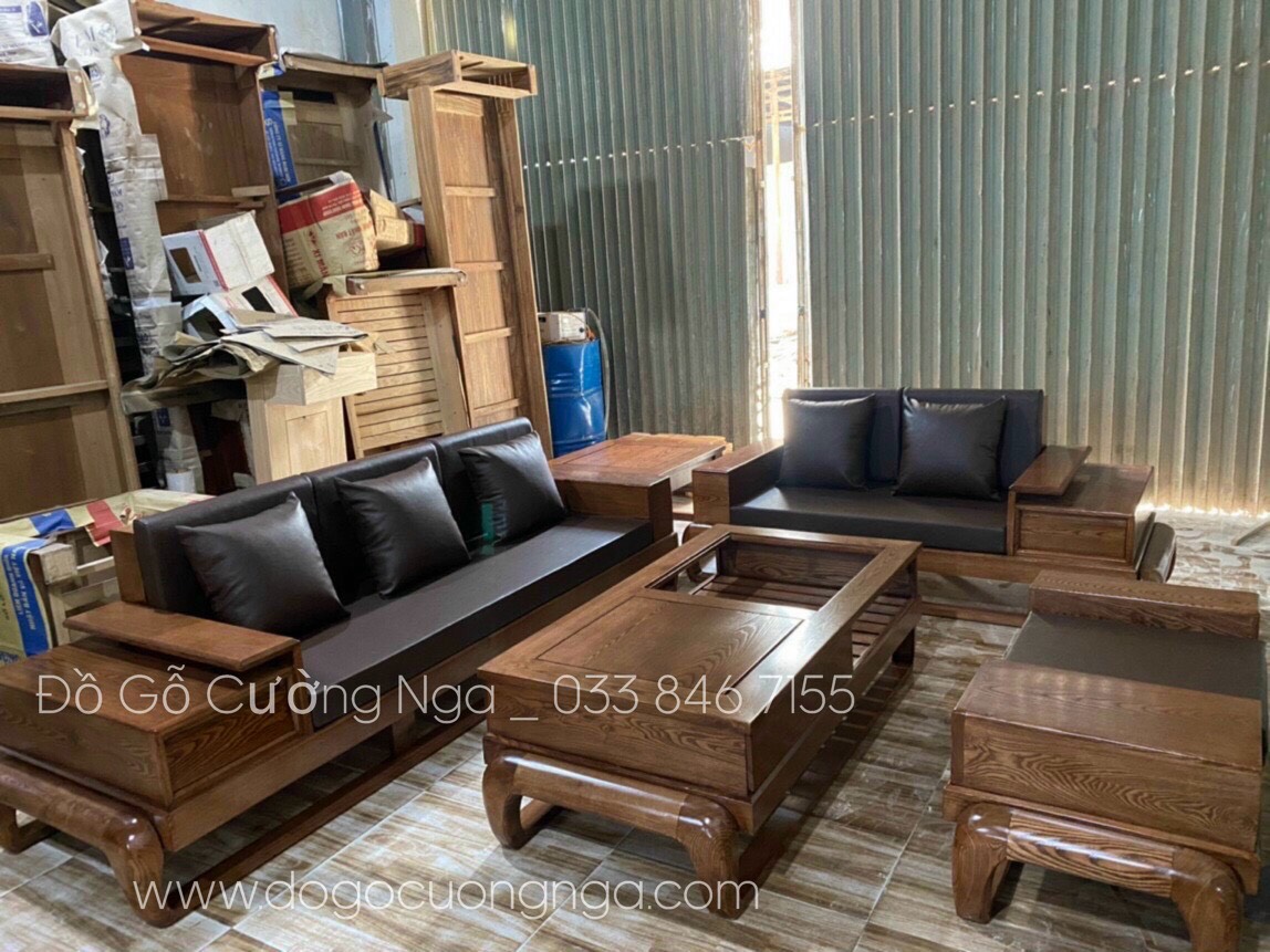 Bộ Bàn Ghế Sofa Gỗ Sồi Nga 2 Văng Hiện Đại