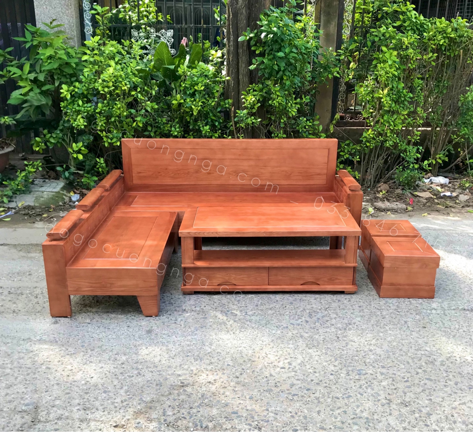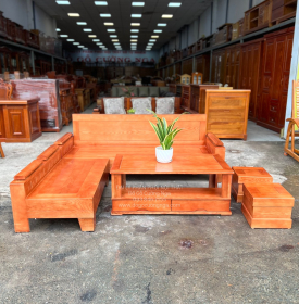 Bộ Bàn Ghế Sofa Gỗ Sồi Nga 2mx1m8 - Tựa Liền Màu Xoan