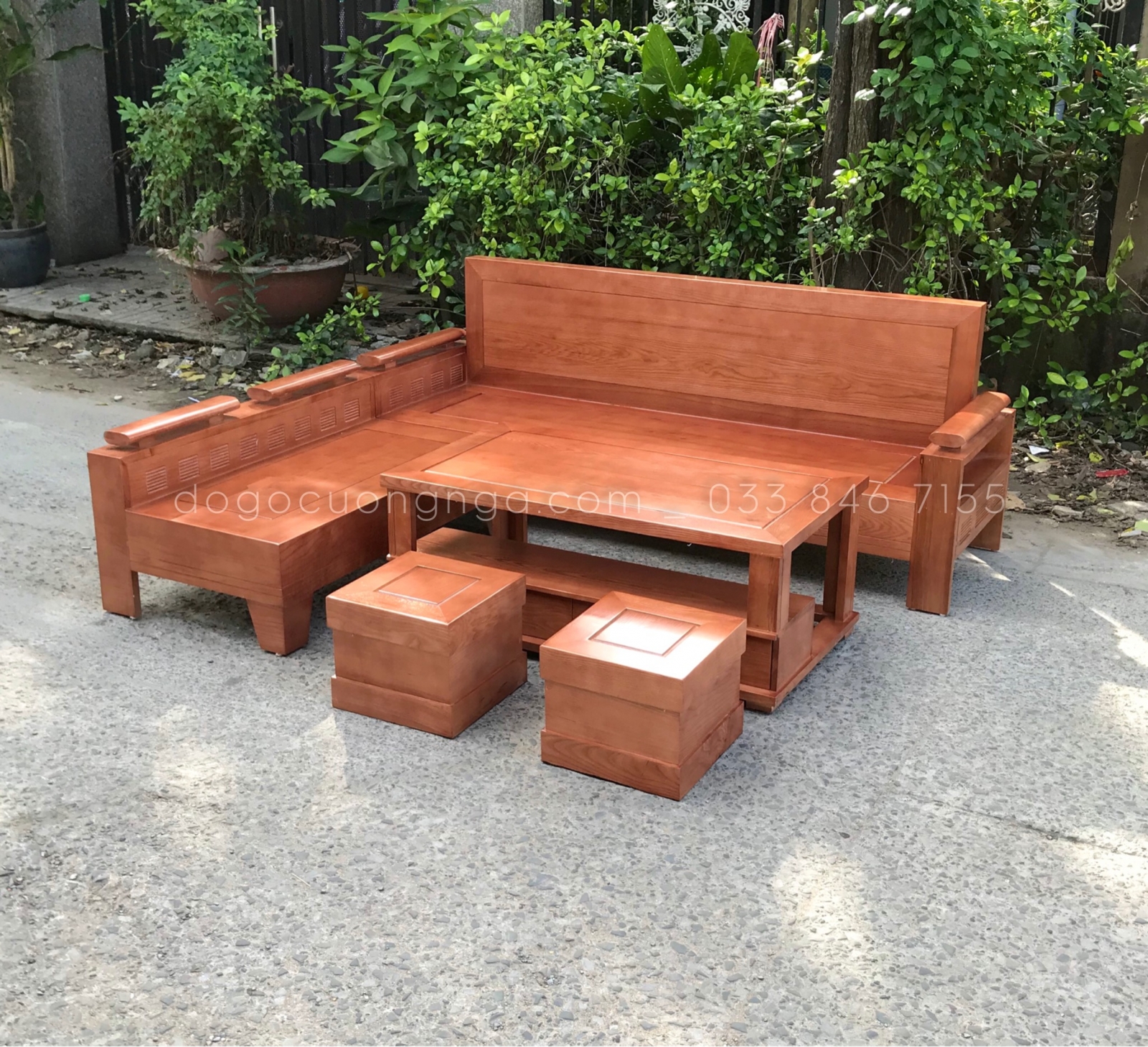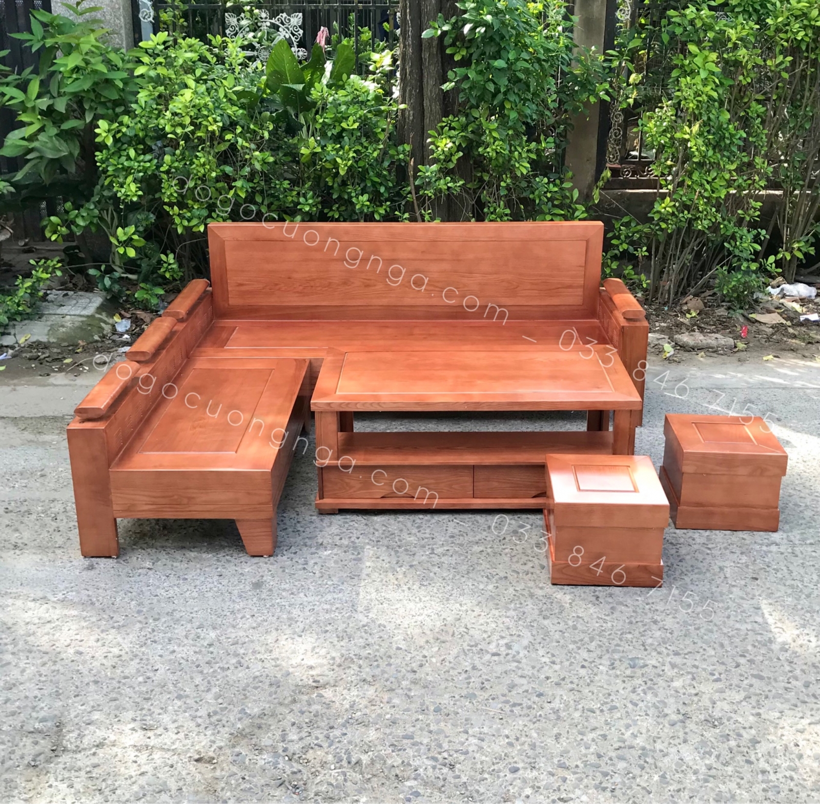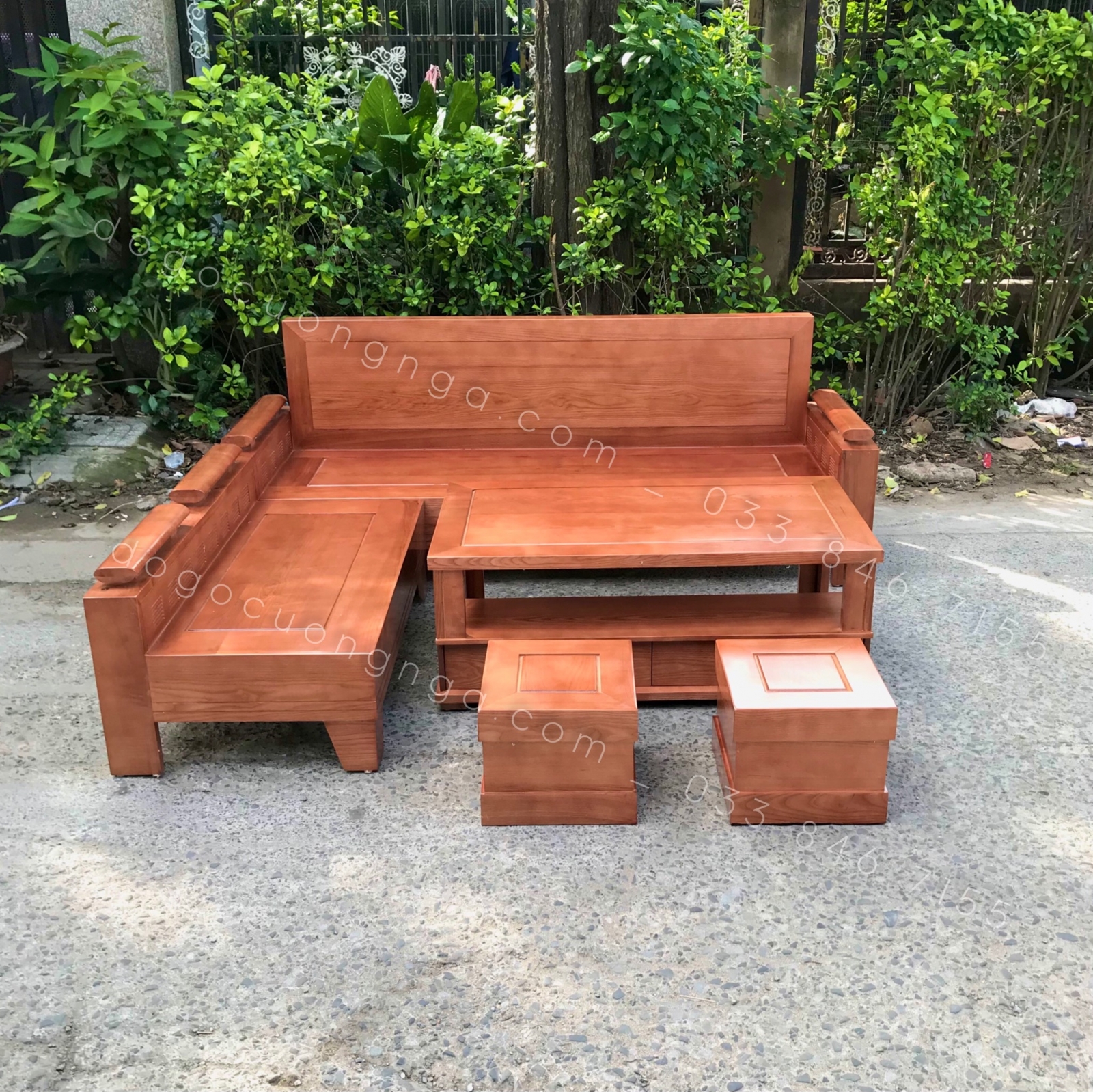 Sofa Góc L Gỗ Sồi Nga Màu Xoan