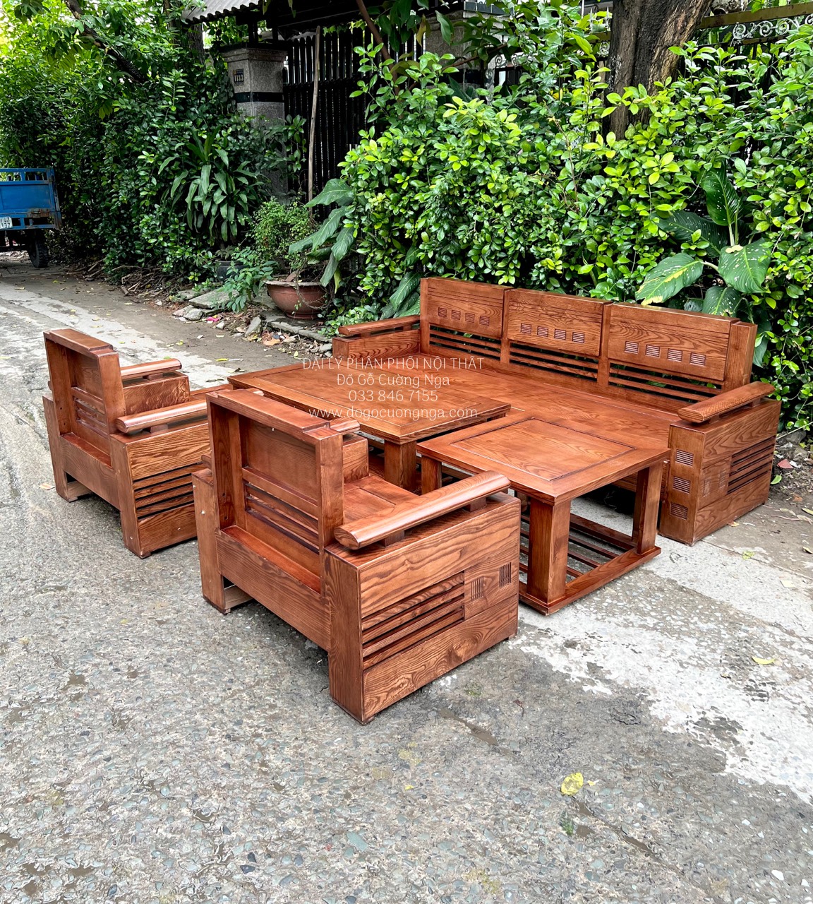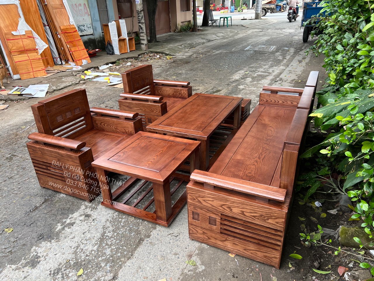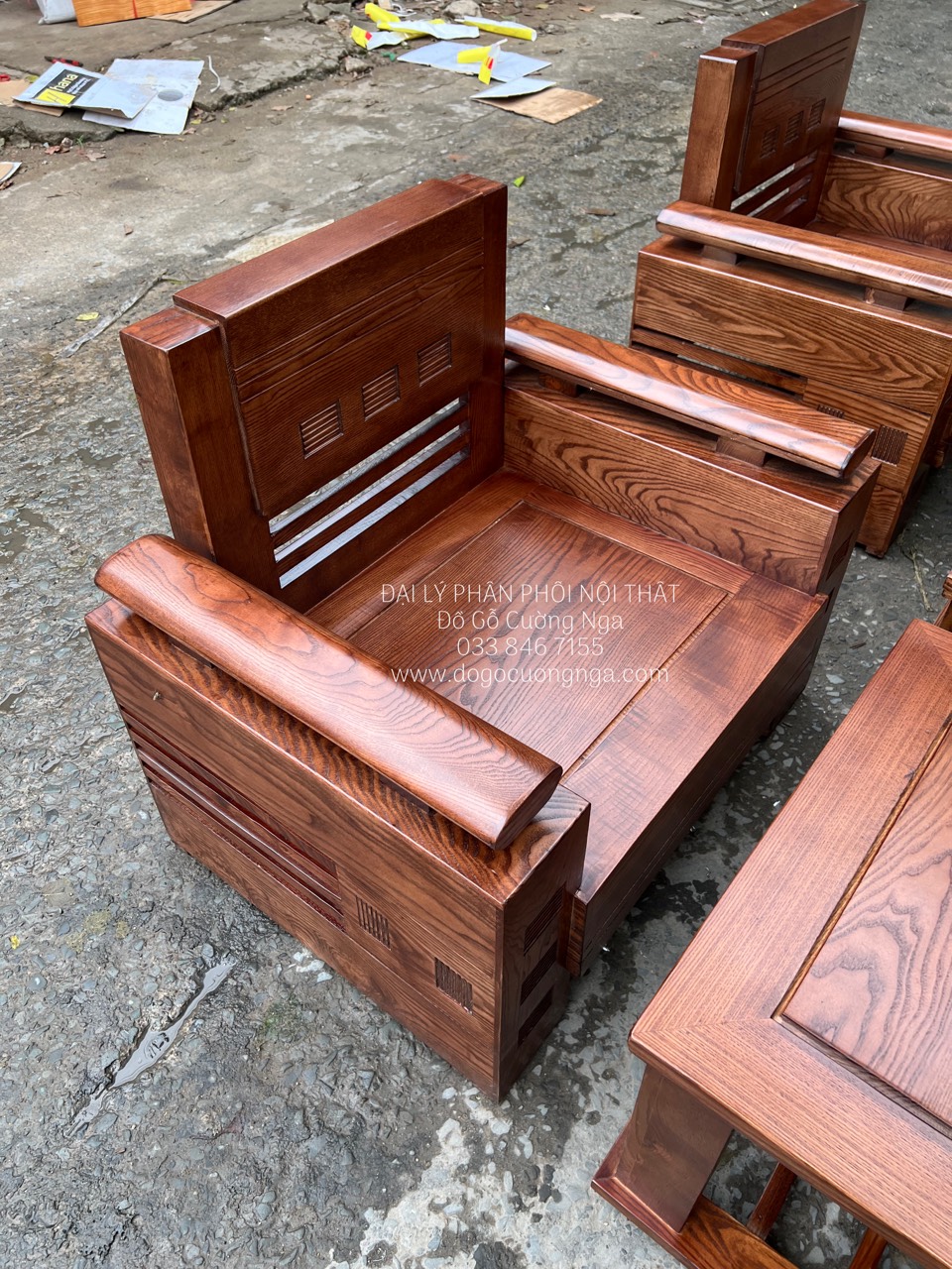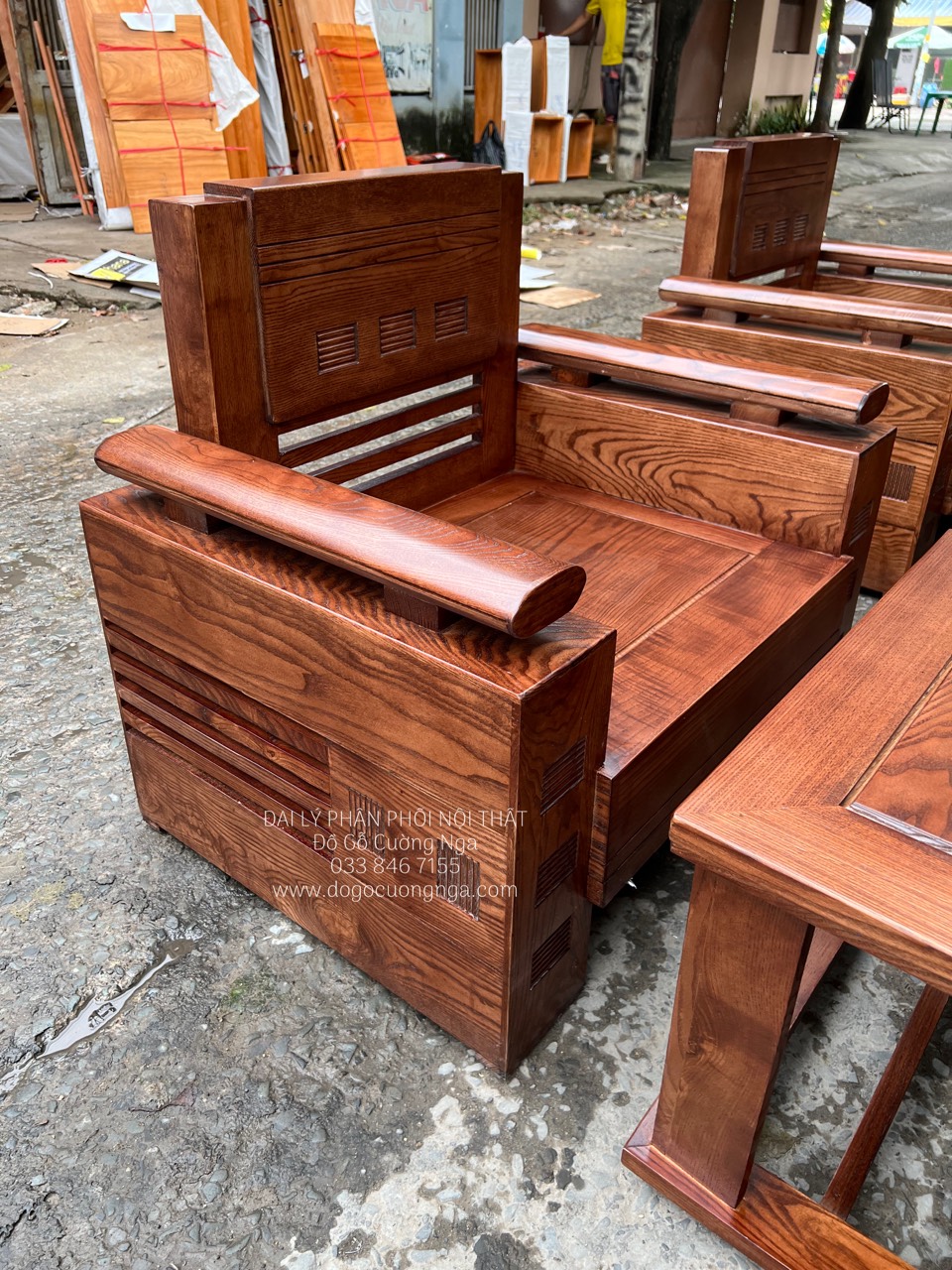 Bộ Bàn Ghế Sofa Gỗ Sồi Nga Đối Tay Trứng - Lau Màu Óc Chó