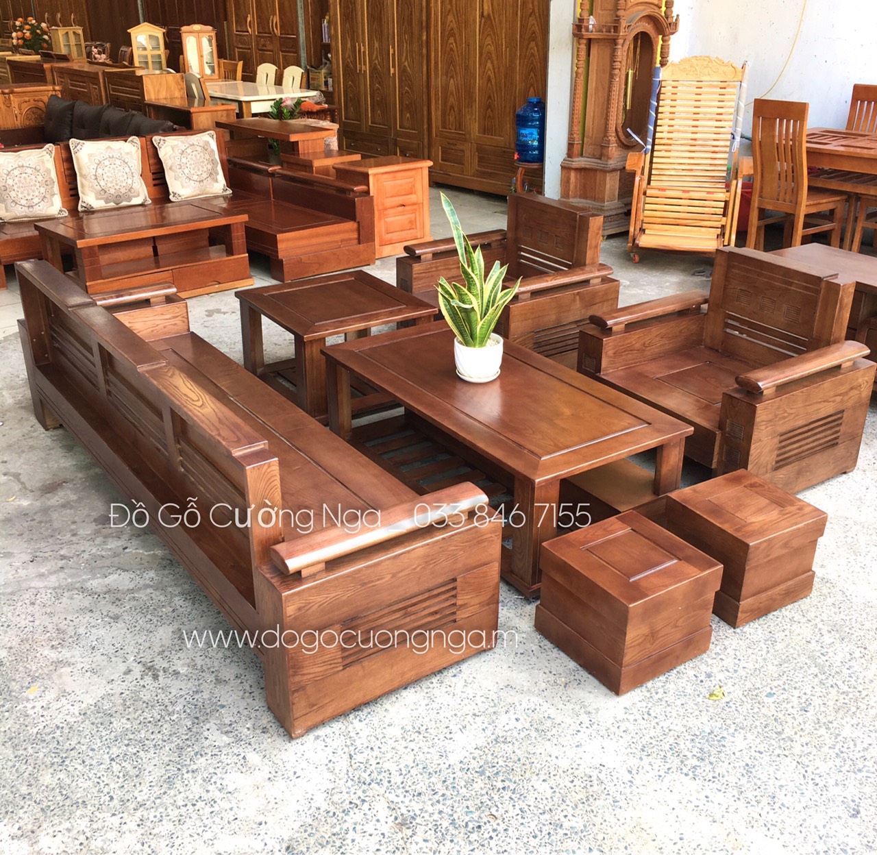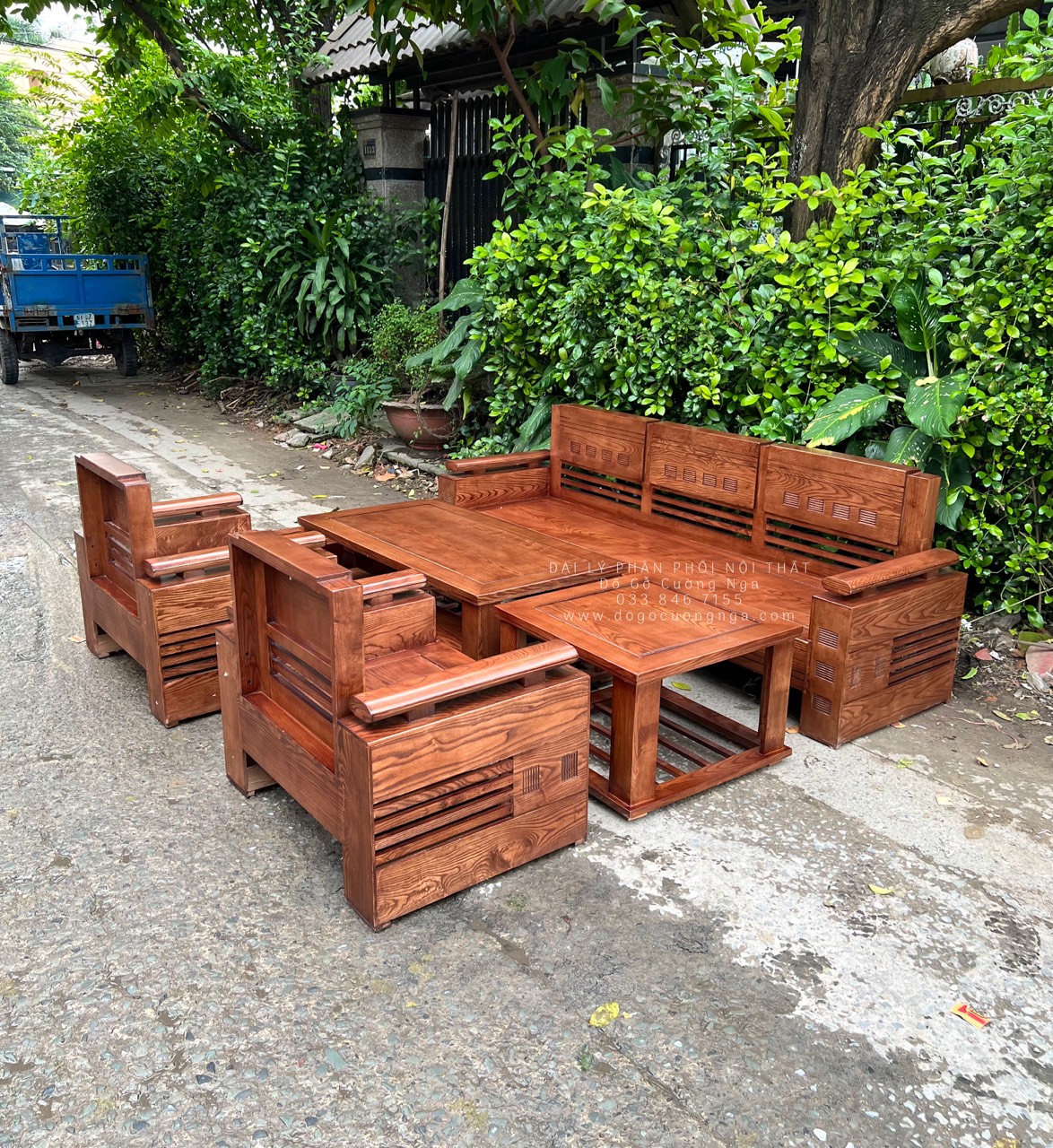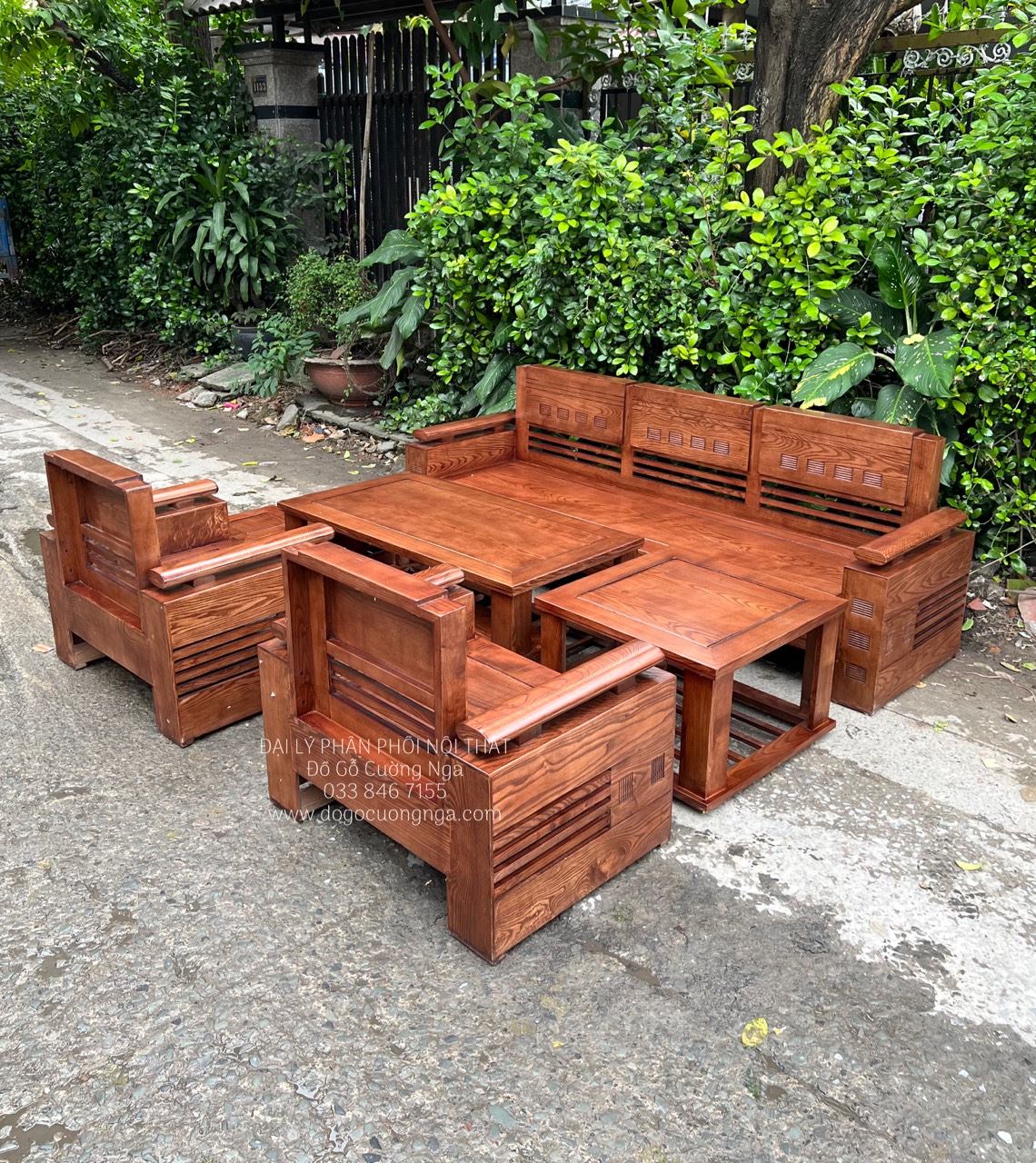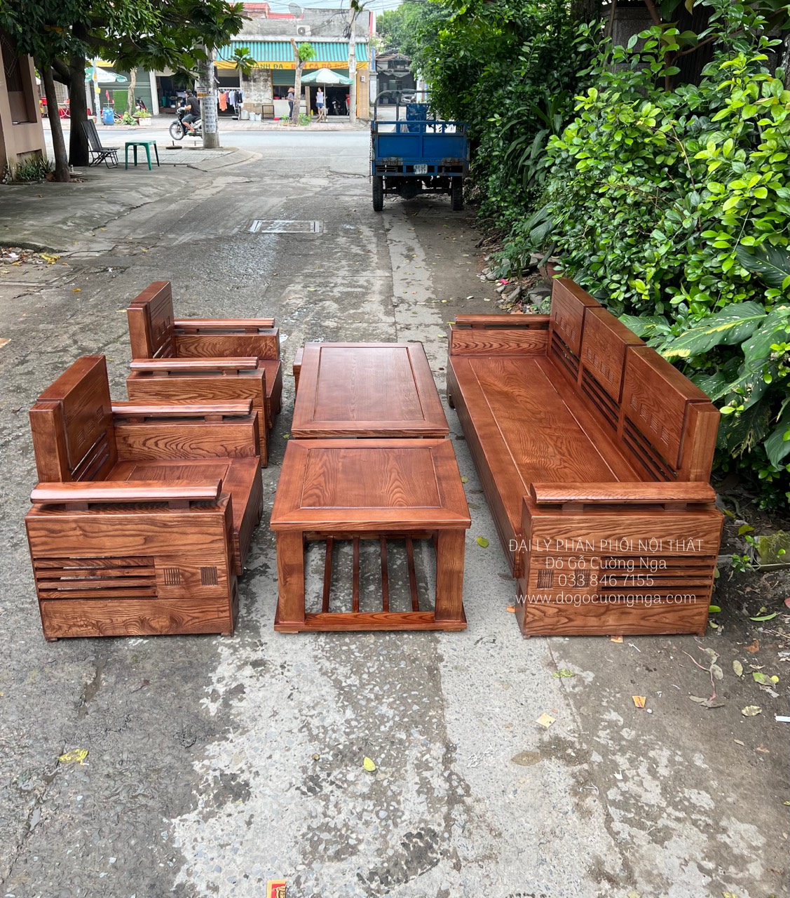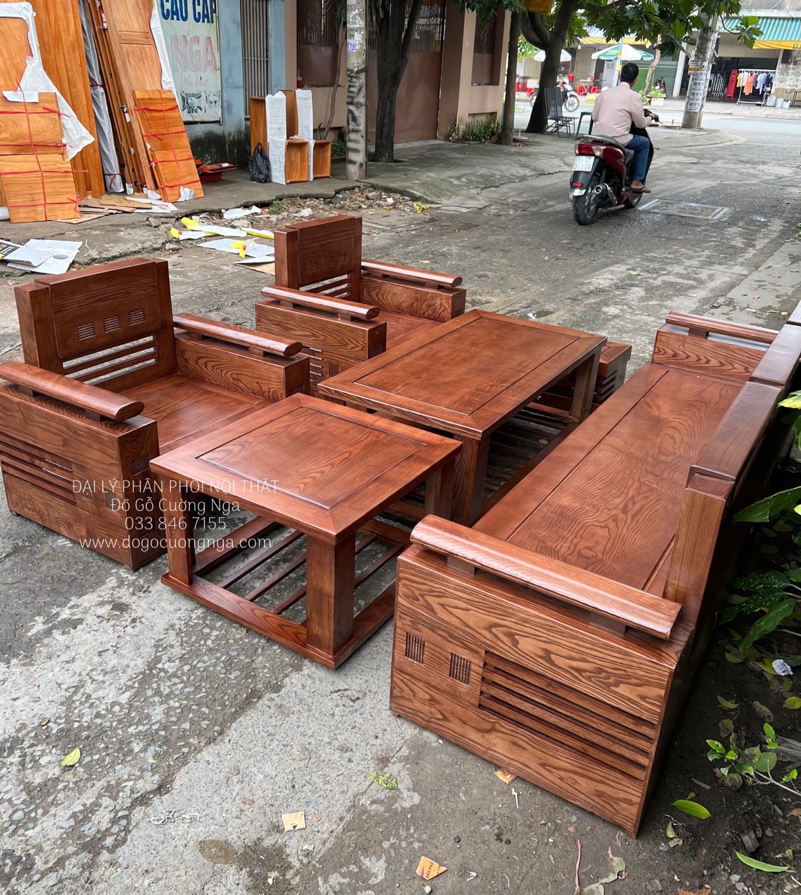 Bộ Bàn Ghế Sofa Gỗ Sồi Nga Đối Tay Trứng - Lau Màu Óc Chó