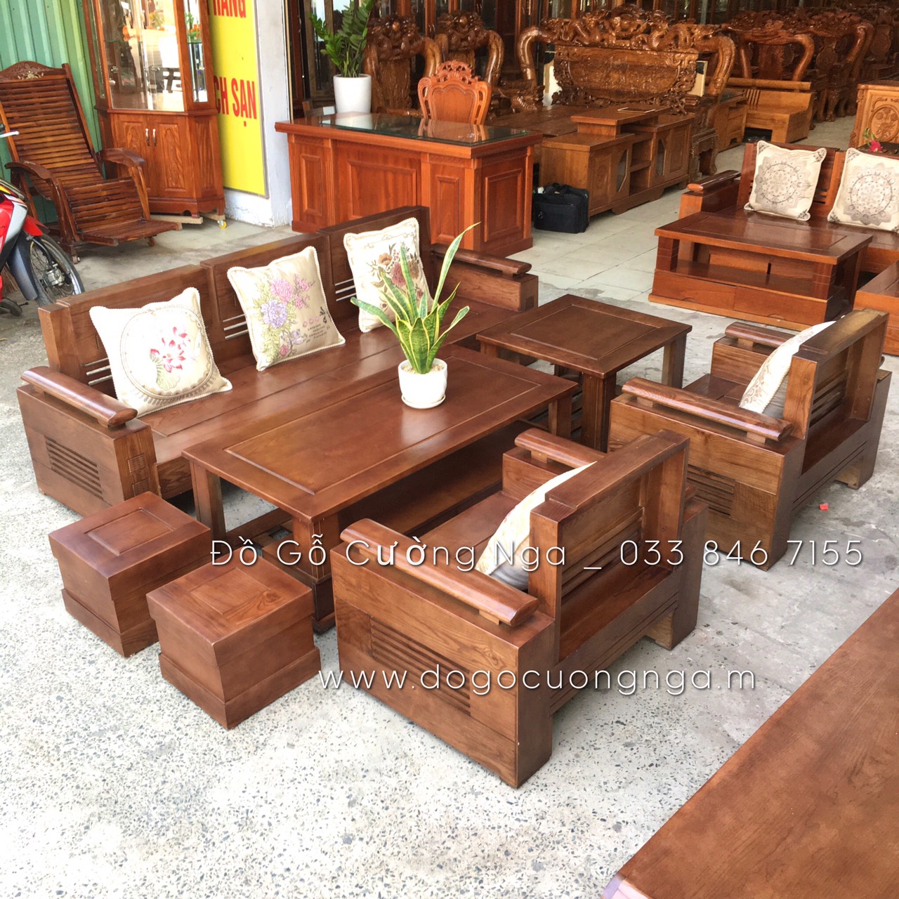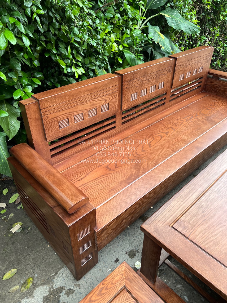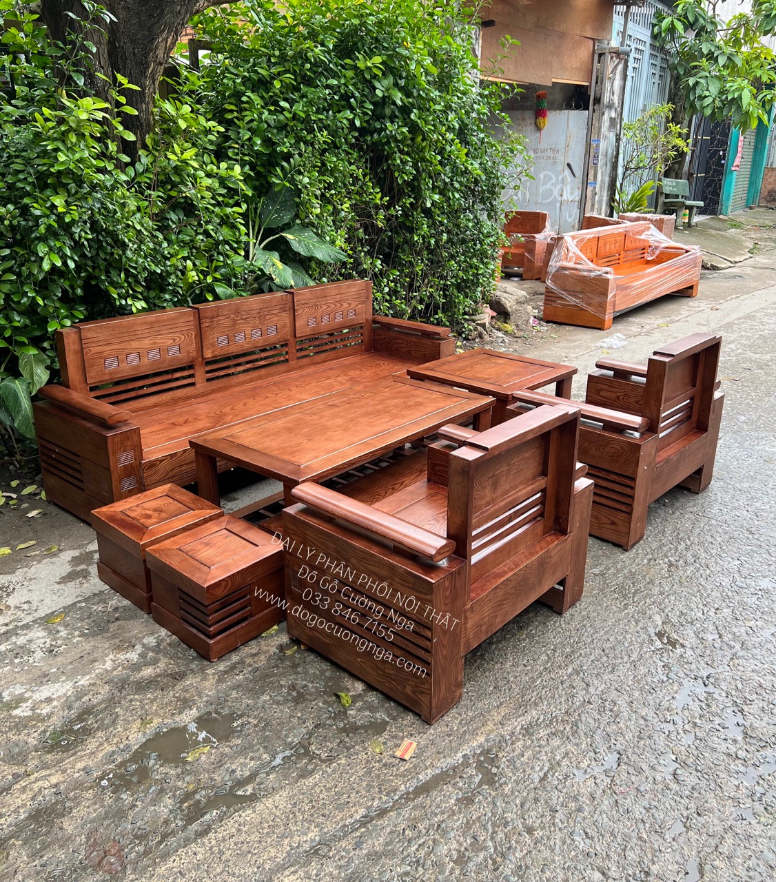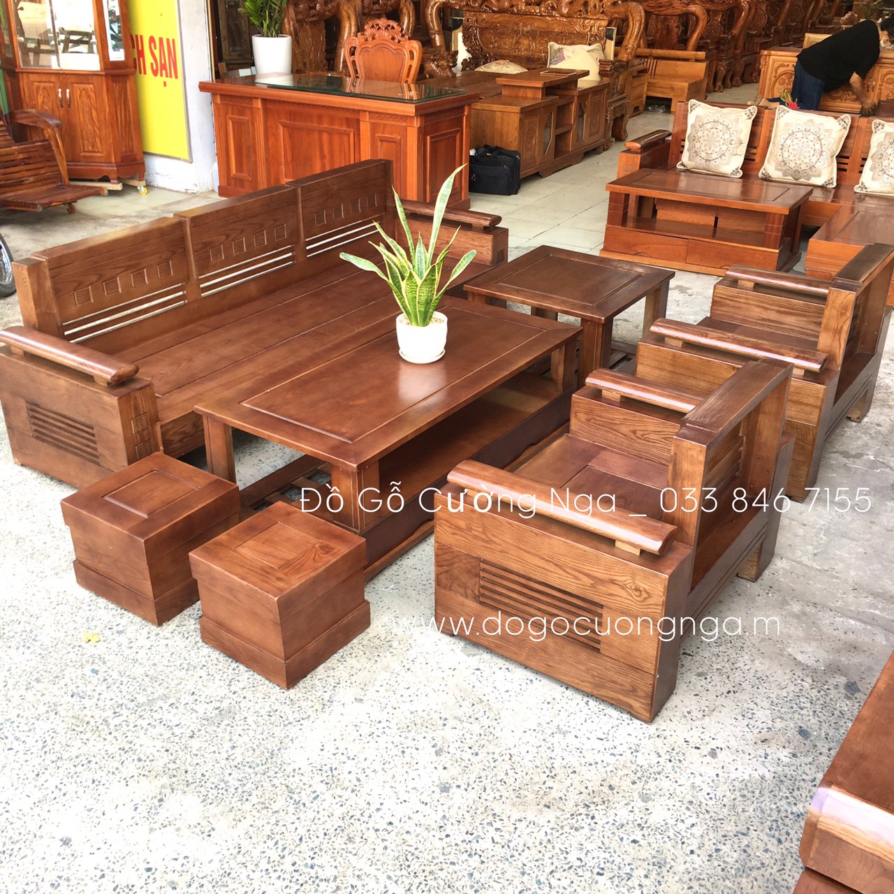 Bộ Bàn Ghế Sofa Gỗ Sồi Nga Đối Tay Trứng - Lau Màu Óc Chó