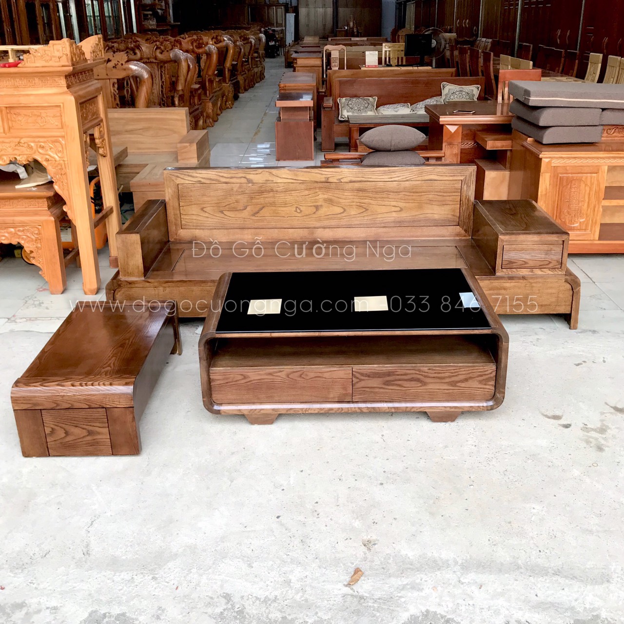 Bộ Bàn Ghế Sofa Gỗ Sồi Nga Lau Màu Óc Chó - 2m3 Chân Cuốn