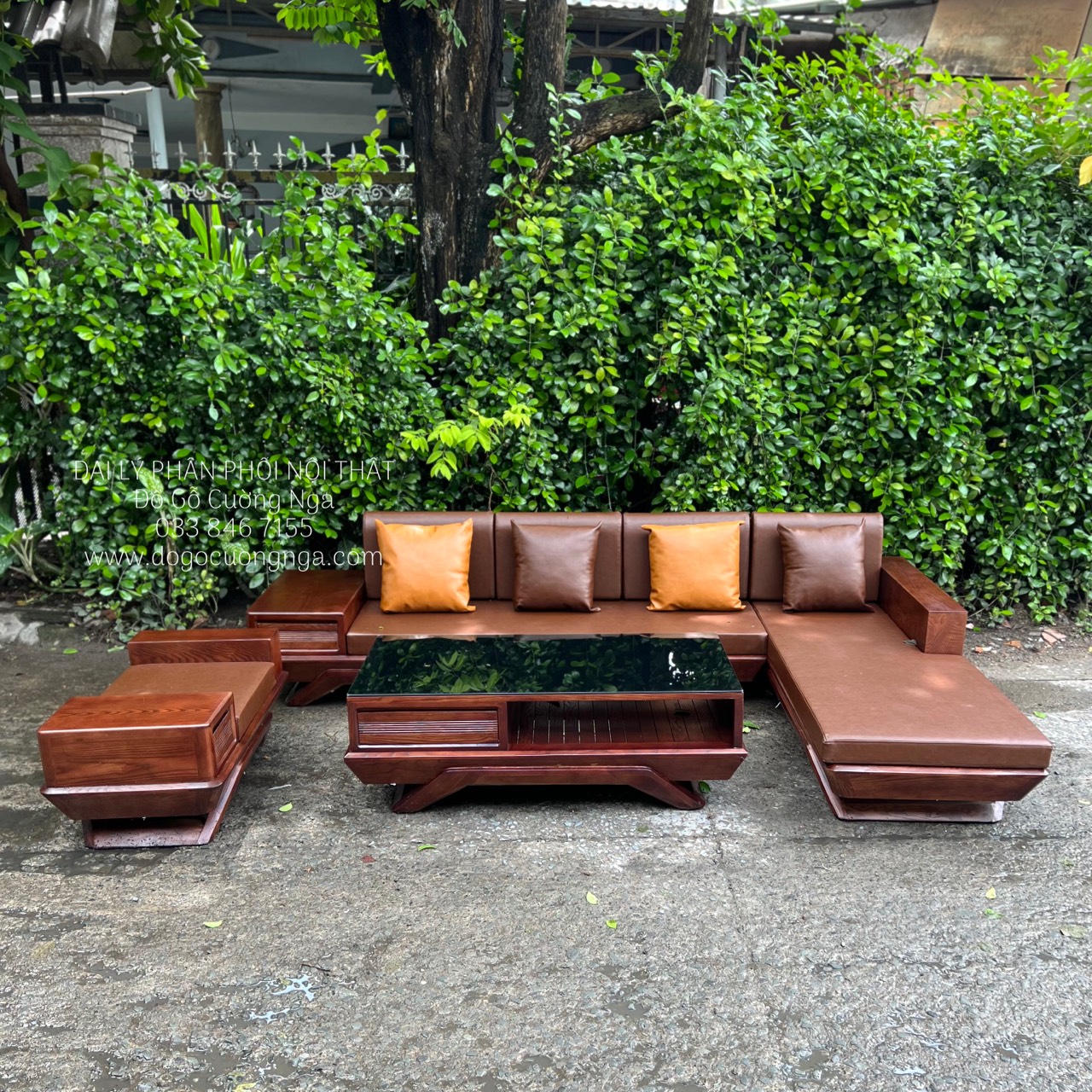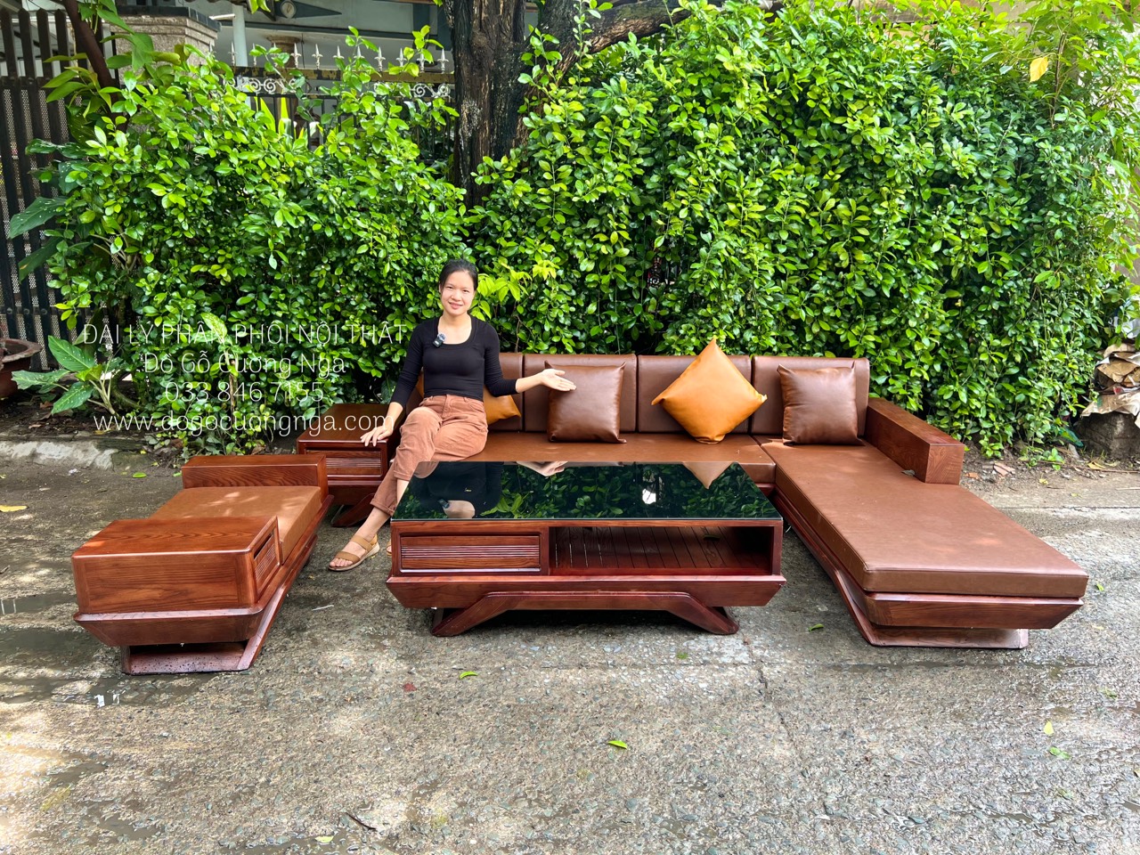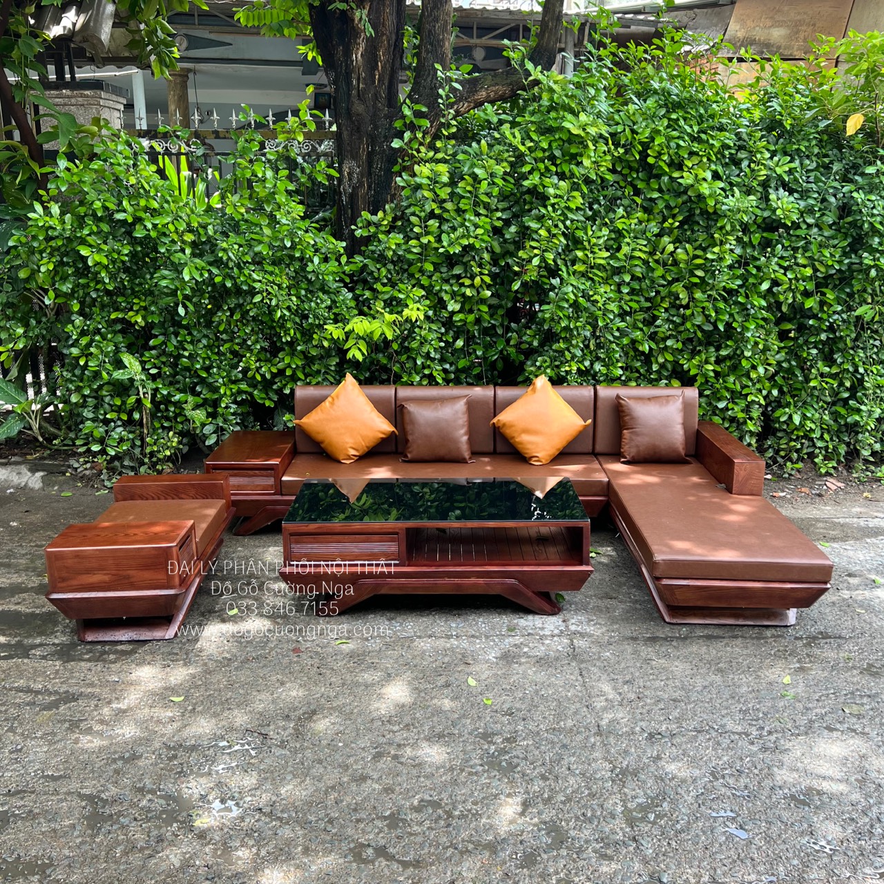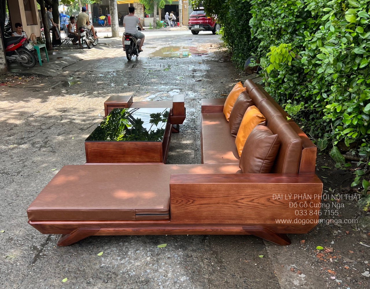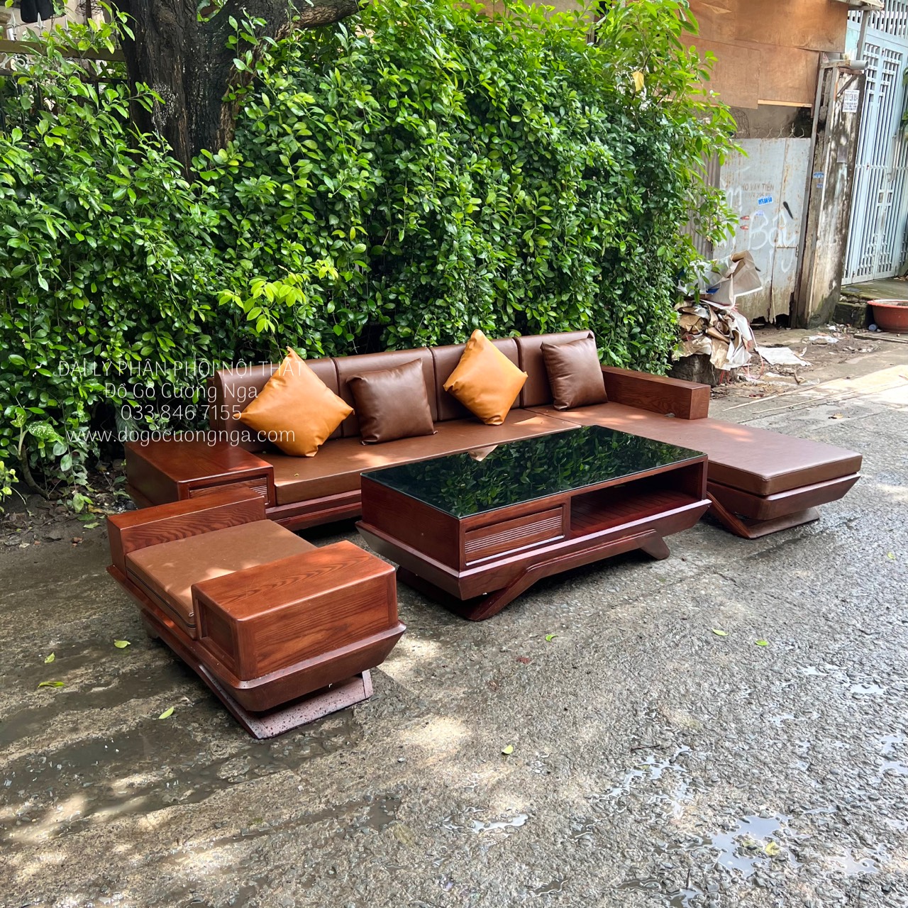 Bộ Bàn Ghế Sofa Gỗ Sồi Nga Màu Óc Chó Góc L 2m8x1m8 Hiện Đại