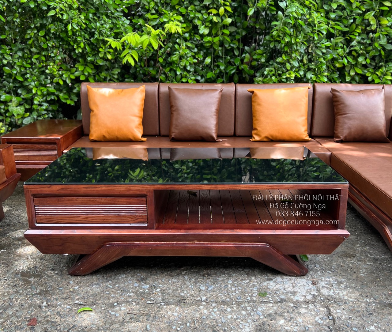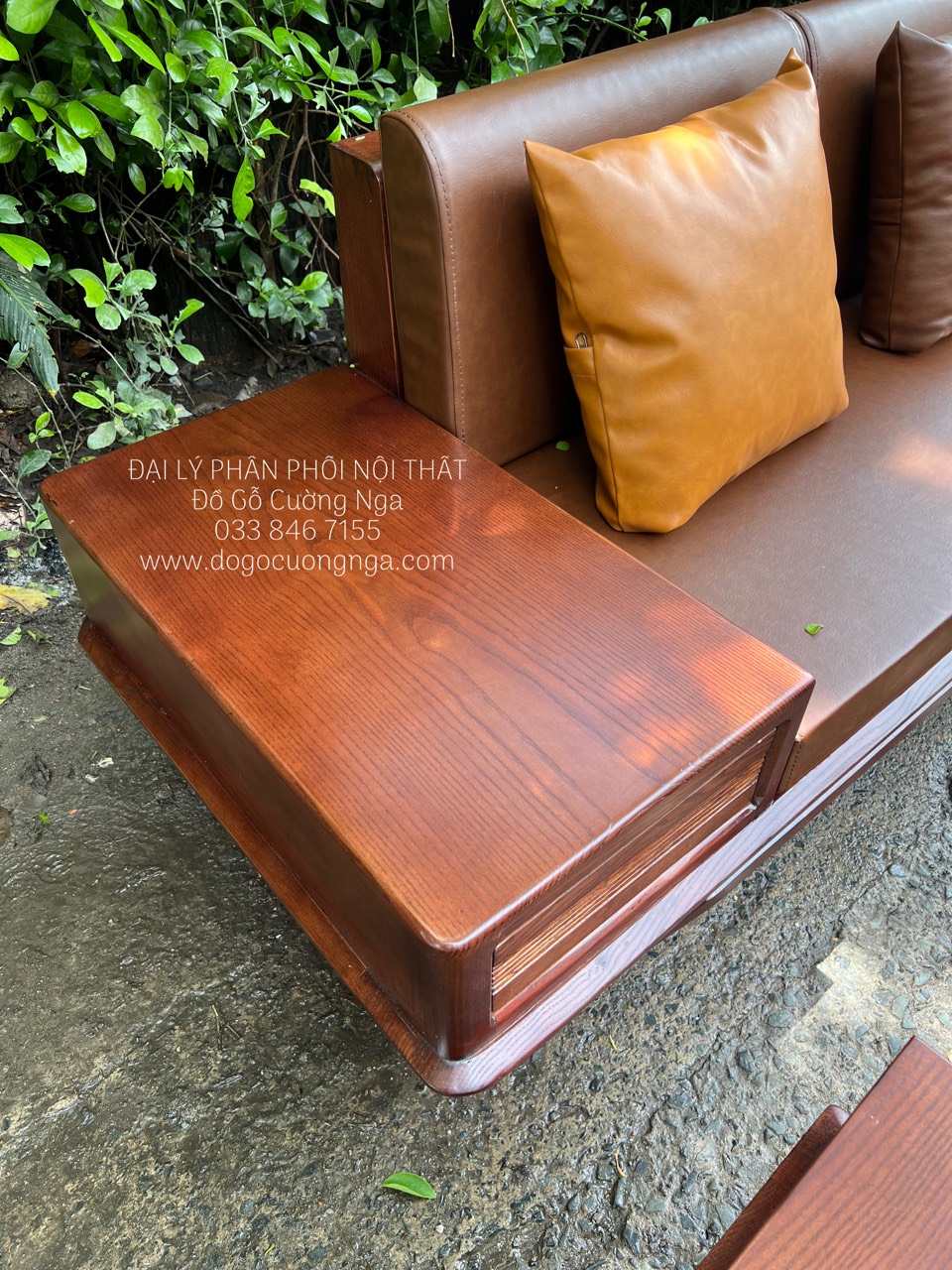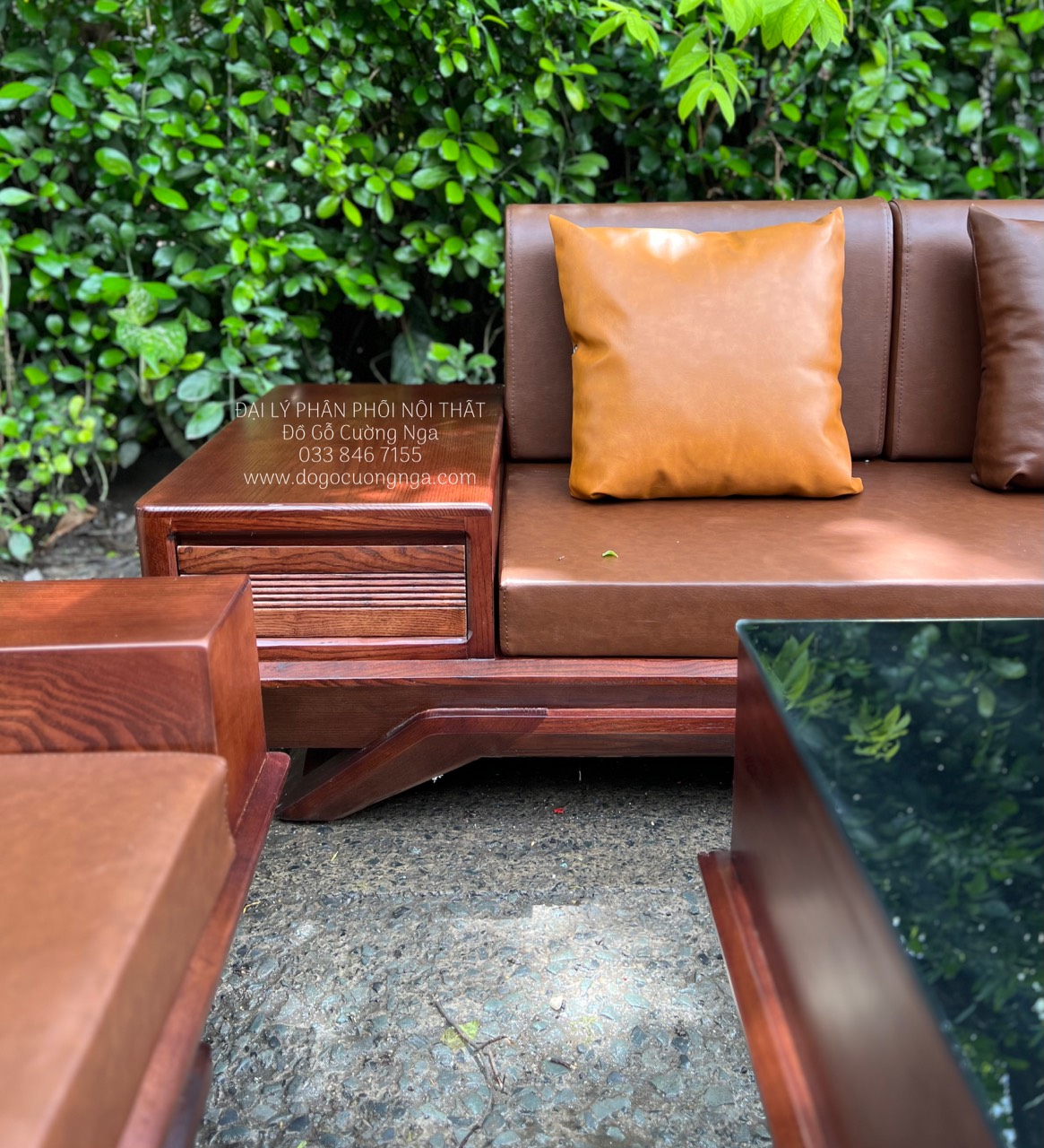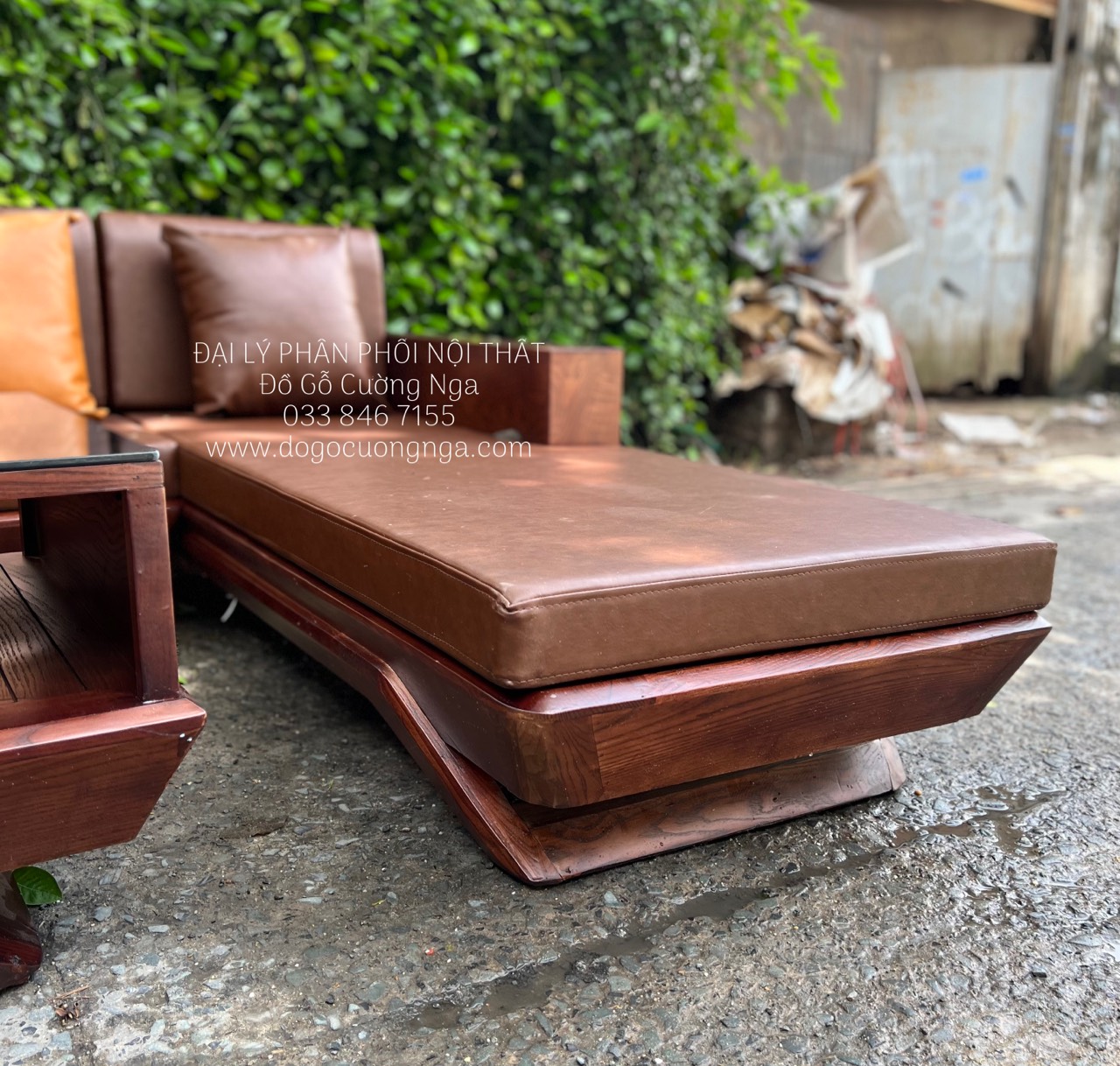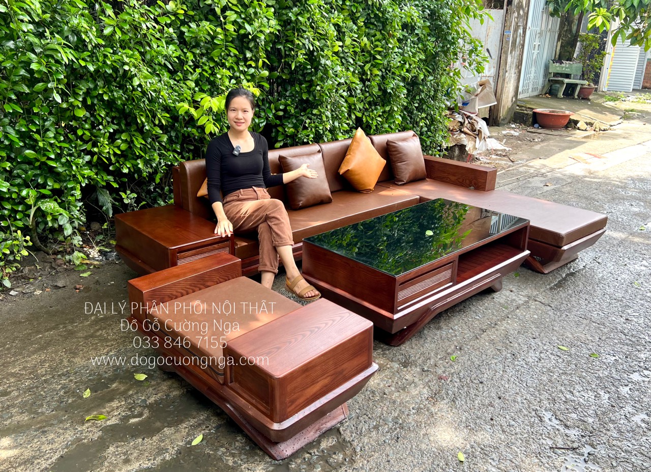 Bộ Bàn Ghế Sofa Gỗ Sồi Nga Màu Óc Chó Góc L 2m8x1m8 Hiện Đại