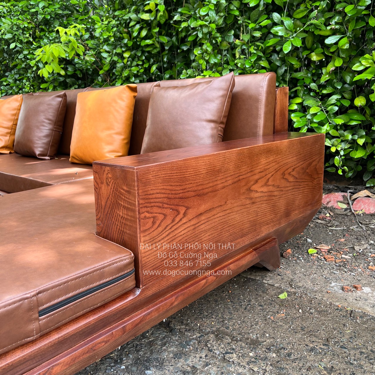 Chi tiết ghế sofa gỗ sồi nga góc L hiện đại