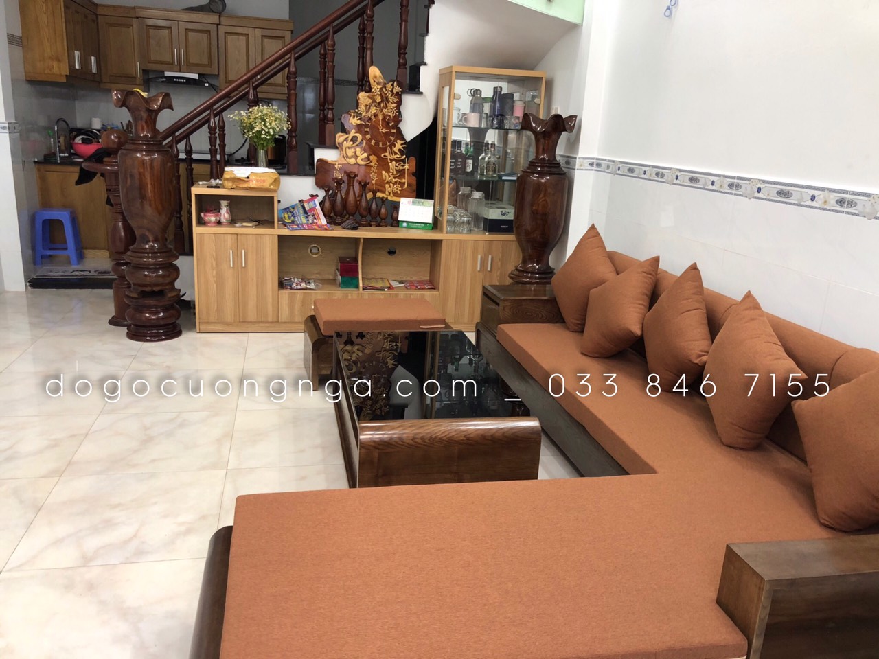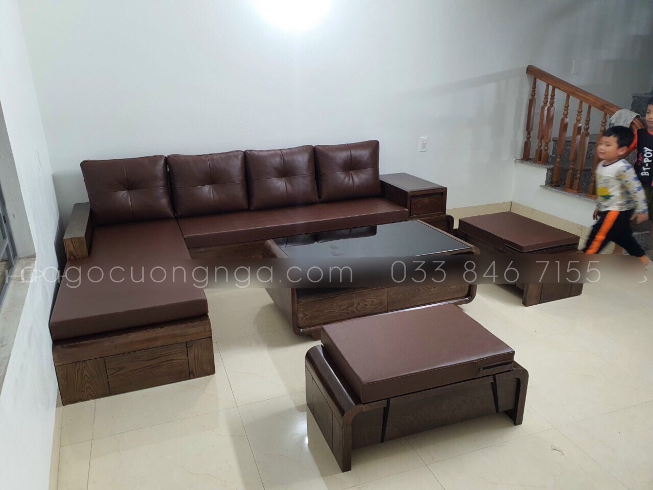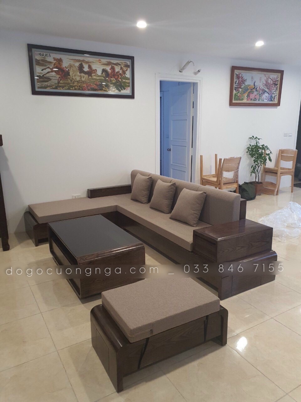 Video Thực Tế Sofa Góc L Gỗ Sồi Nga Chân Cuốn