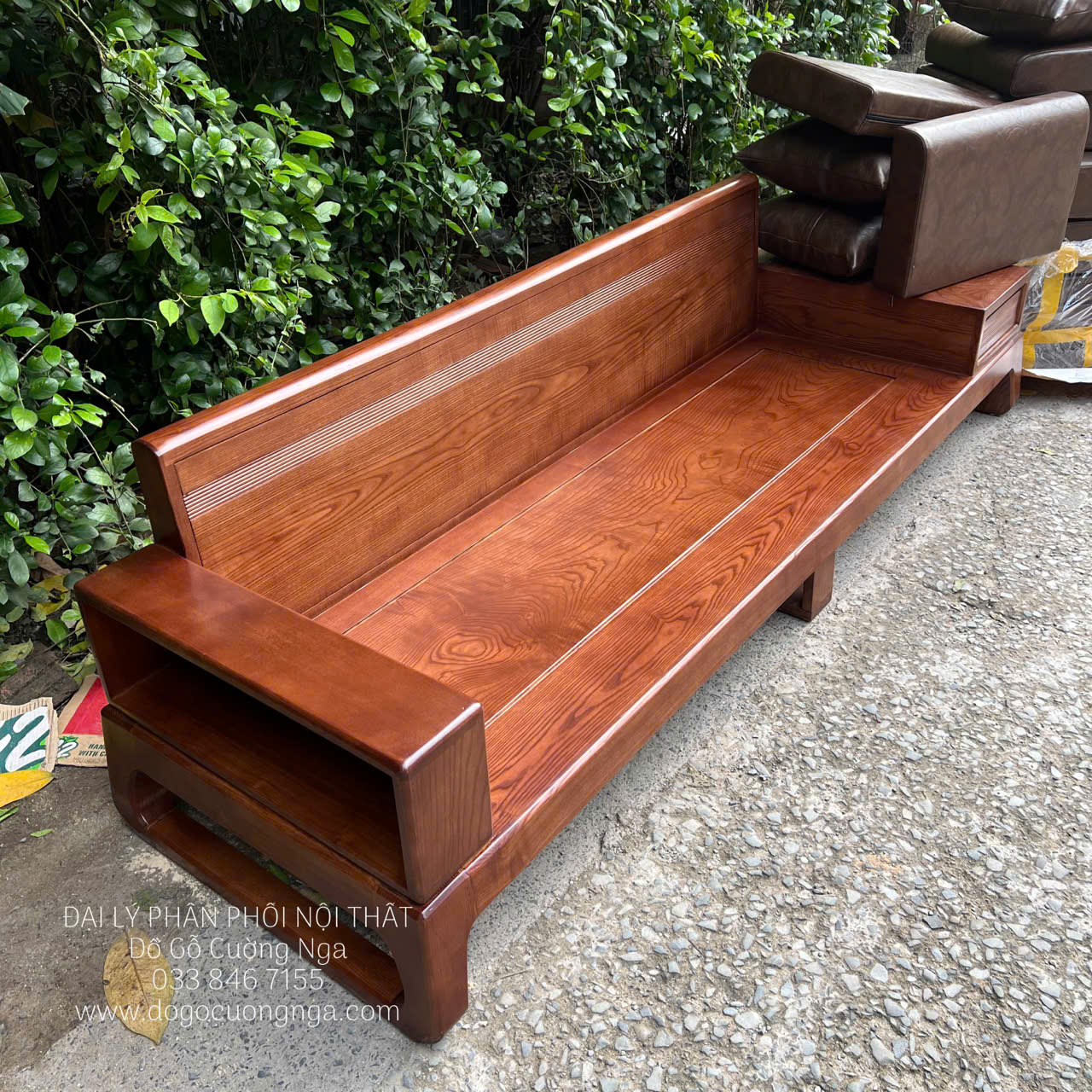 Bộ Sofa Gỗ Sồi Nga Góc L Chân Thuyền 2m8x1m9 Màu Óc Chó Sang Trọng