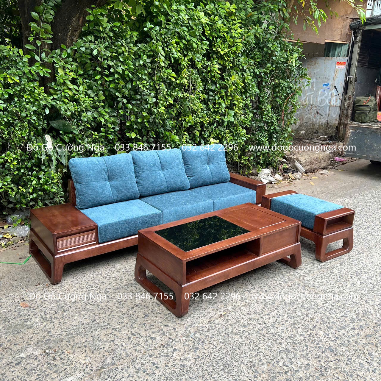 Bộ Bàn Ghế Sofa Văng Gỗ Sồi 3 Chi Tiết Nệm Vải Bố Hiện Đại