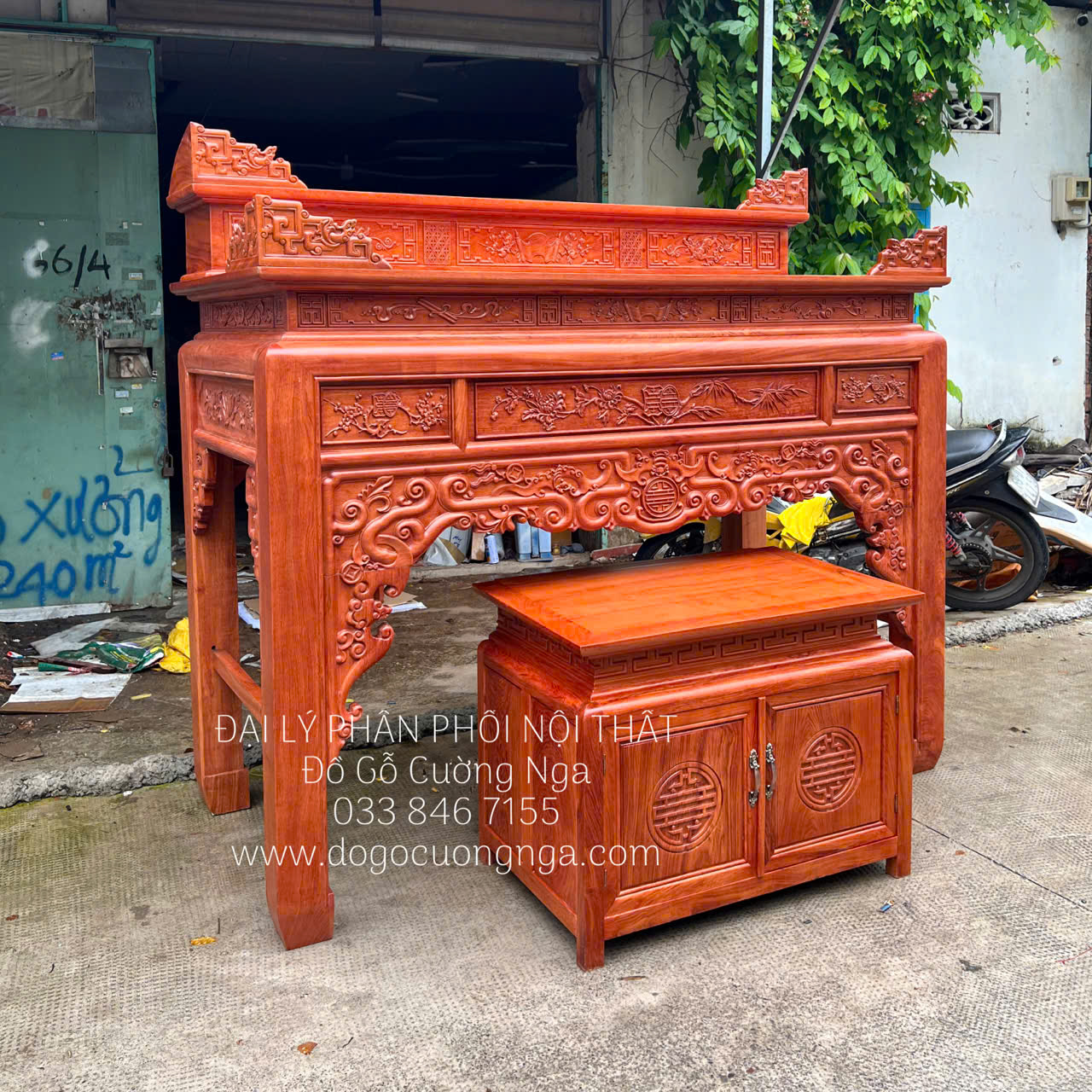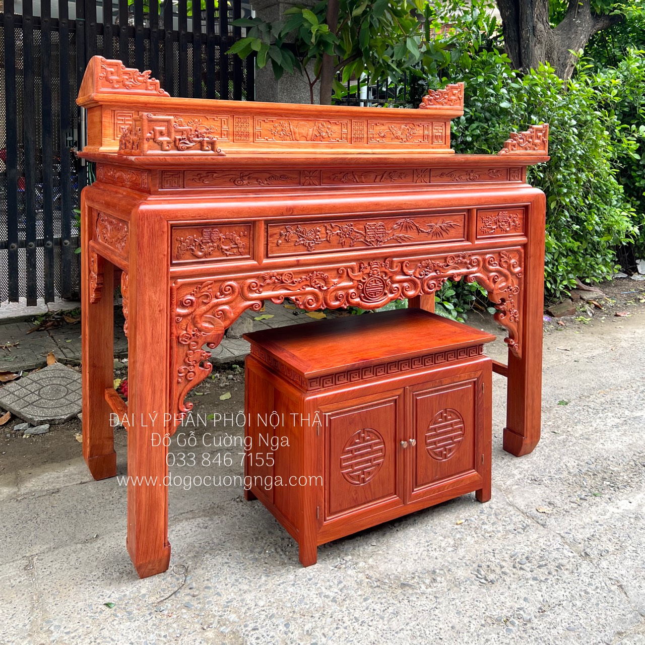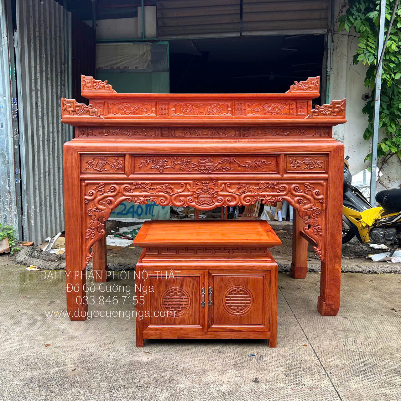 Bàn thờ gỗ hương đá 1m75 2 tầng cao cấp