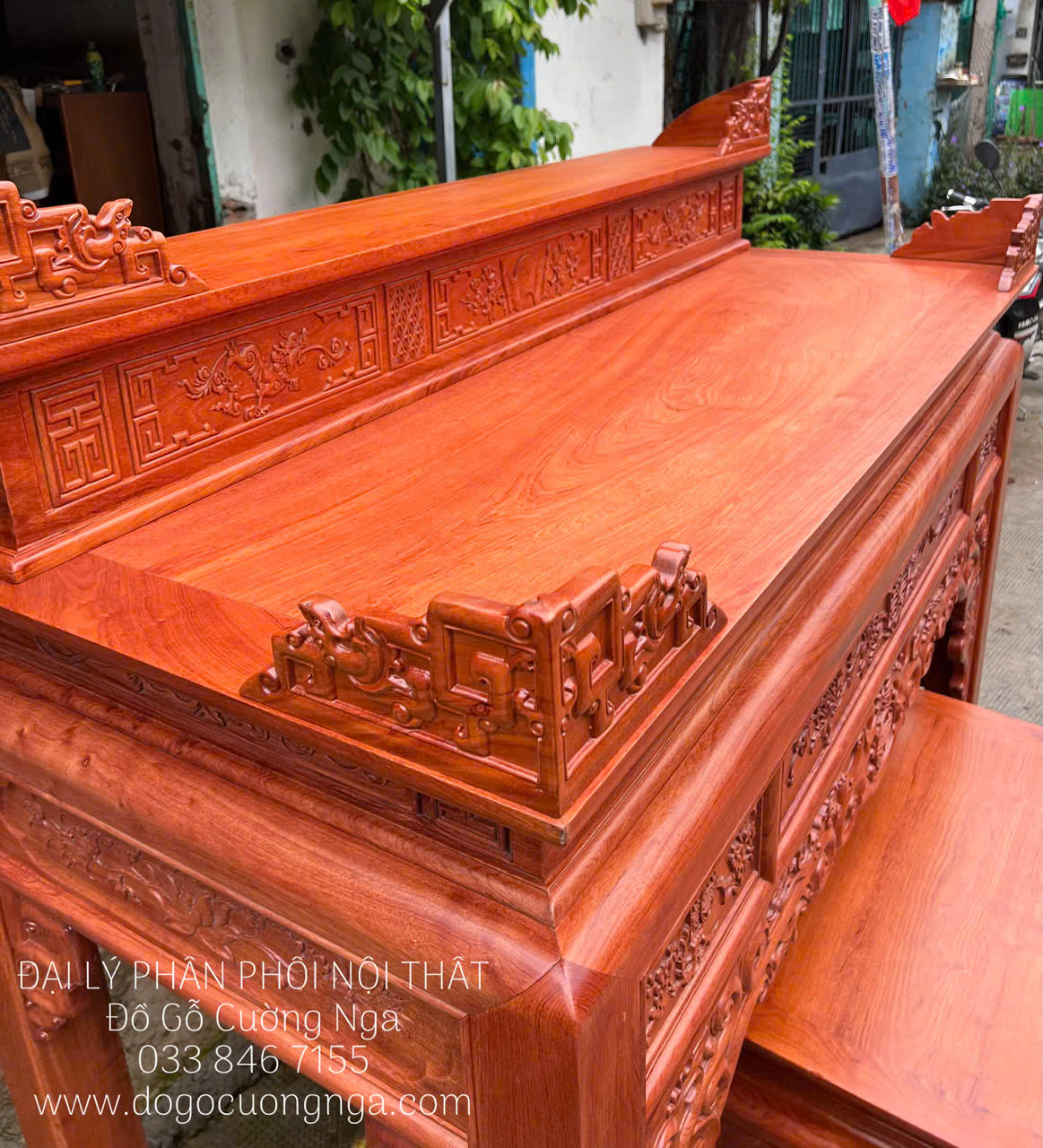 Chất Liệu Cao Cấp: Gỗ hương đá nổi tiếng với độ bền cao, khả năng chống mối mọt và cong vênh. Vân gỗ tự nhiên đẹp mắt và màu sắc ấm áp tạo nên vẻ đẹp sang trọng và ấm cúng cho không gian thờ cúng.