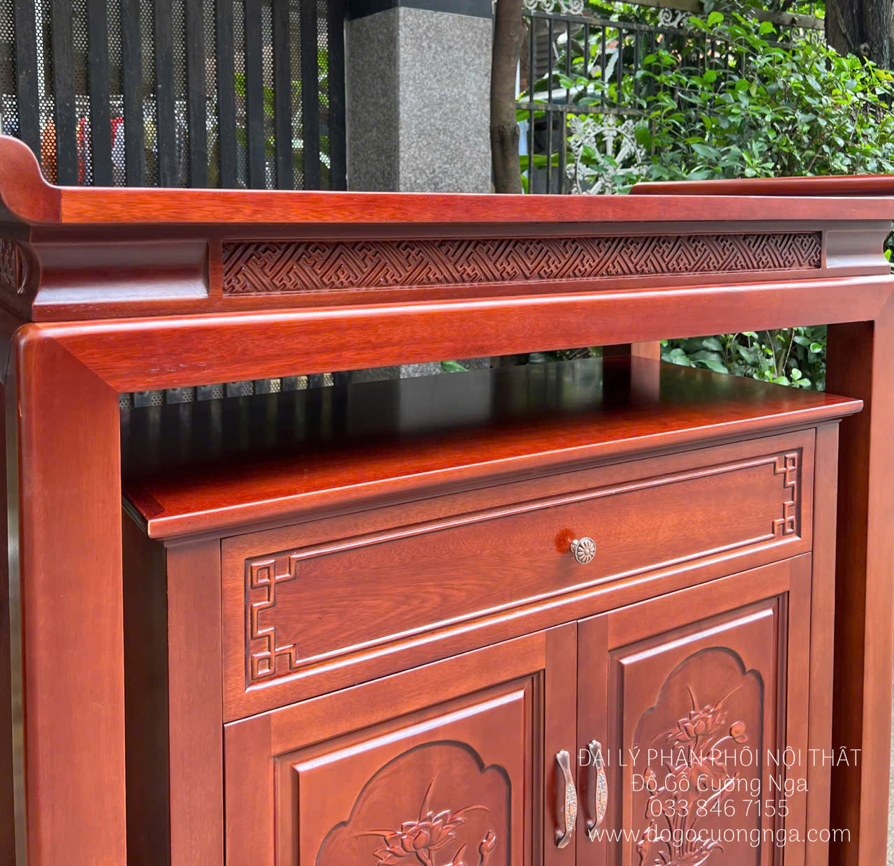 Bàn Thờ Gỗ Xoan Đào Tự Nhiên Thiết Kế Chắc Chắn